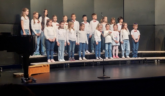 Nastop učencev na Reviji otroških in mladinskih pevskih zborov v...