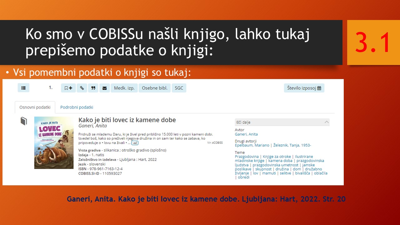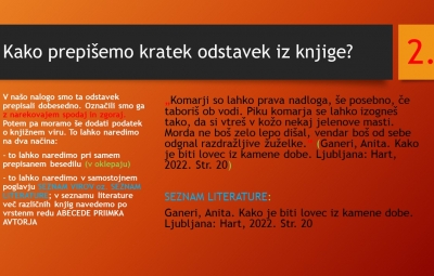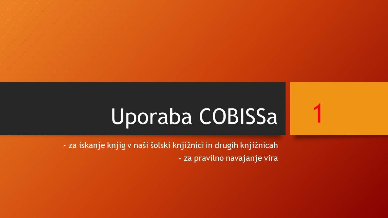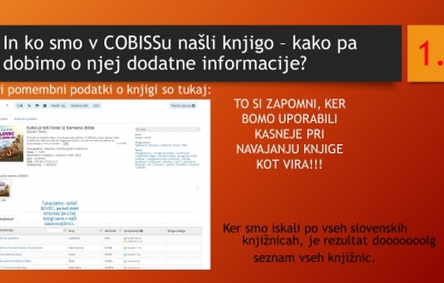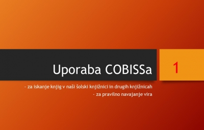 V četrtek, 5.10., so imeli učenci 7.a razreda dve pedagoški uri KIZ - Knjižnično informacijsko znanje v sodelovanju z zgodovino, kjer smo se učili uporabljati COBISS ter navajati spletne in knjižne vire. Spodaj so prosojnice predavanja v FOTOGALERIJI.