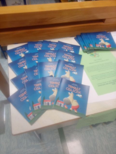 Pri zal. Hieroglif, ki izdaja revijo Zmajček, so nam podarili večjo količino knjižic TRMASTI OSLIČEK, zgodbo je napisala Urša Krempl in ilustriral Jure Kralj (oba avtorja so učenci 1. triletja preteklo šolsko leto spoznali ob zaključku BRALNE ZNAČKE), te knjige bodo danes ob obisku šolske knjižnice lahko v dar dobili učenci (glej fotogalerijo).