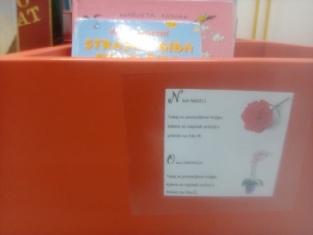 Poličke s črko M bo okraševala MARJETICA, poličke s črko N pa NAGELJ, in za črko O bo ORHIDEJA.