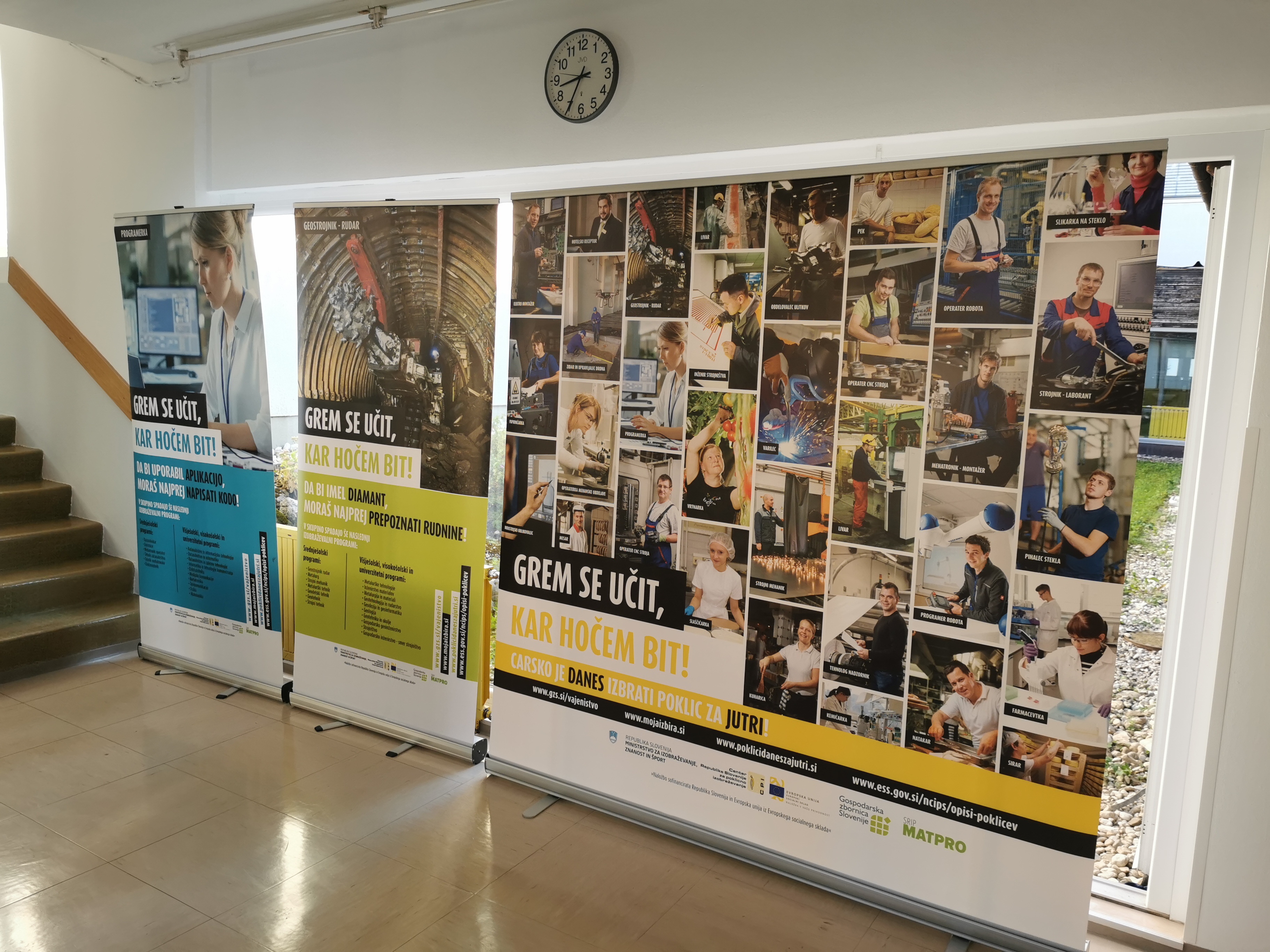 Gospodarska zbornica Slovenije je v letu 2019 pripravila Potujočo razstavo poklicev prihodnosti. Namen razstave je pomoč pri kariernem odločanju mladih. Potujoča razstava potuje od ene osnovne šole do druge in »budi« pozornost osnovnošolcev, da čimprej začenjajo razmišljati in se zanimati za različne poklice. Moto Potujoče razstave je »Grem se učit, kar hočem bit«. Z razstavo želimo mlade spodbuditi, da spoznajo čim več poklicev, da se bodo lažje odločili za nadaljnje šolanje po svojih željah in potencialih.