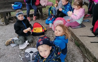 Kot se za prave Cicibane Planince spodobi, so se v naravi tudi poigrali, si privoščili popotno malico in se z veselim korakom in pesmijo odpravili nazaj proti vrtcu.