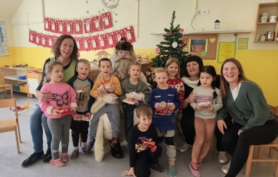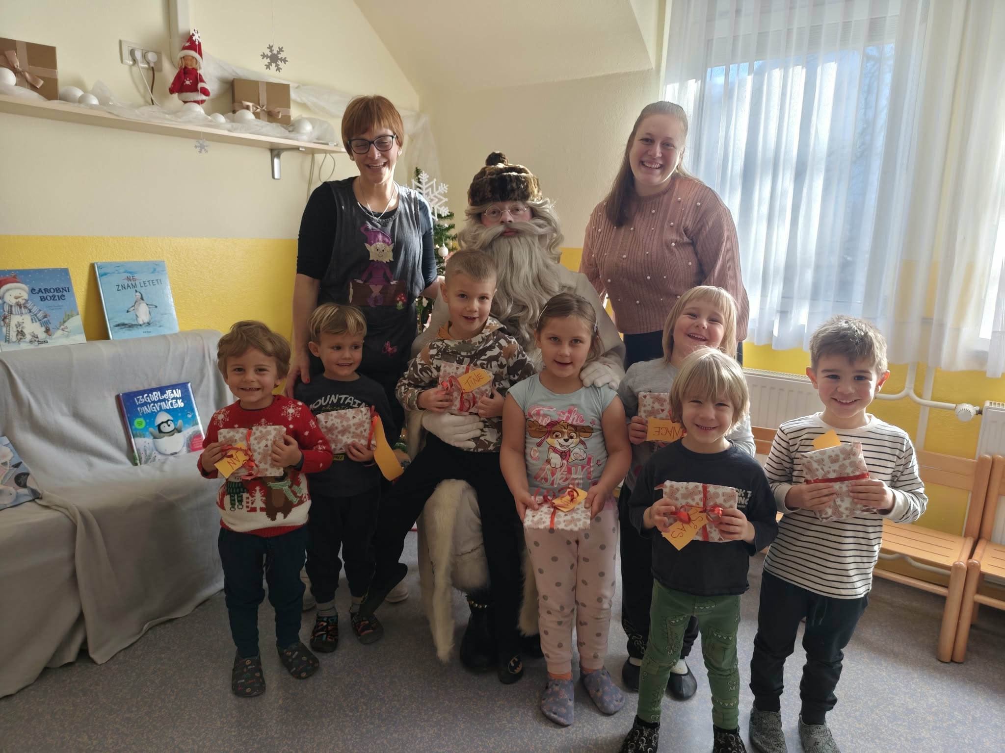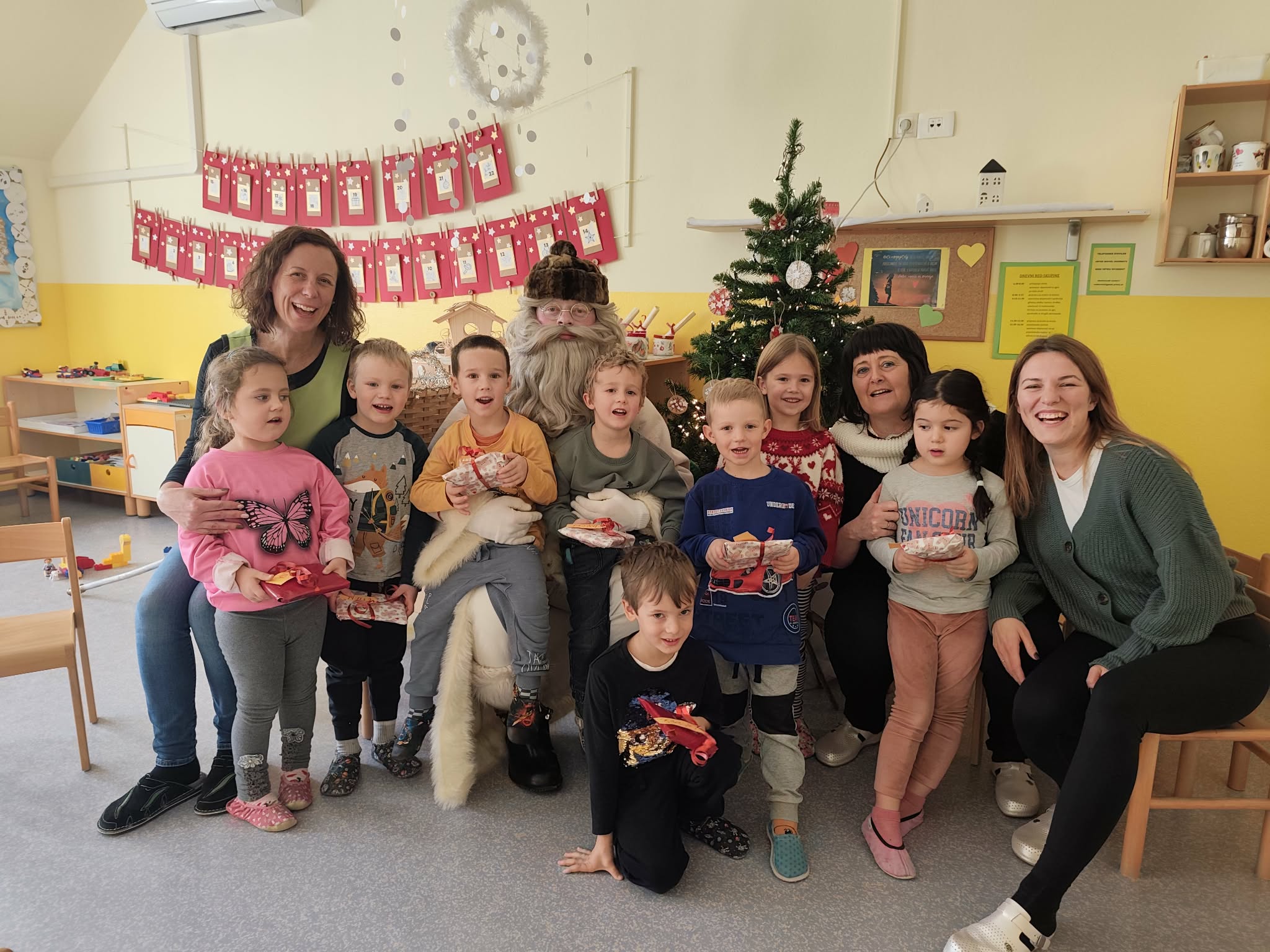 Za konec je Dedek Mraz otroke obdaroval z darili ter jim zaželel veliko zdravja, sreče in igrivih dni v prihajajočem letu. Dogodek smo zaključili s skupnim fotografiranjem, ki bo lep spomin na prijetno praznično druženje.