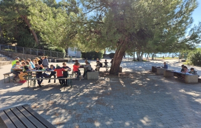 Danes smo poleg plavalnih uric likovno ustvarjali ob morju, se podali v lov za zakladom, ko pa je padel mrak smo odšli na pohod z lučkami. Prijetno utrujeni od pestrega dne in z mislimi na približajoči se odhod domov, smo se odpravili na zaslužen počitek.