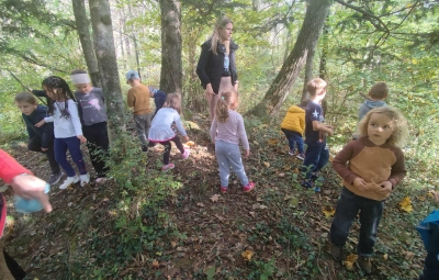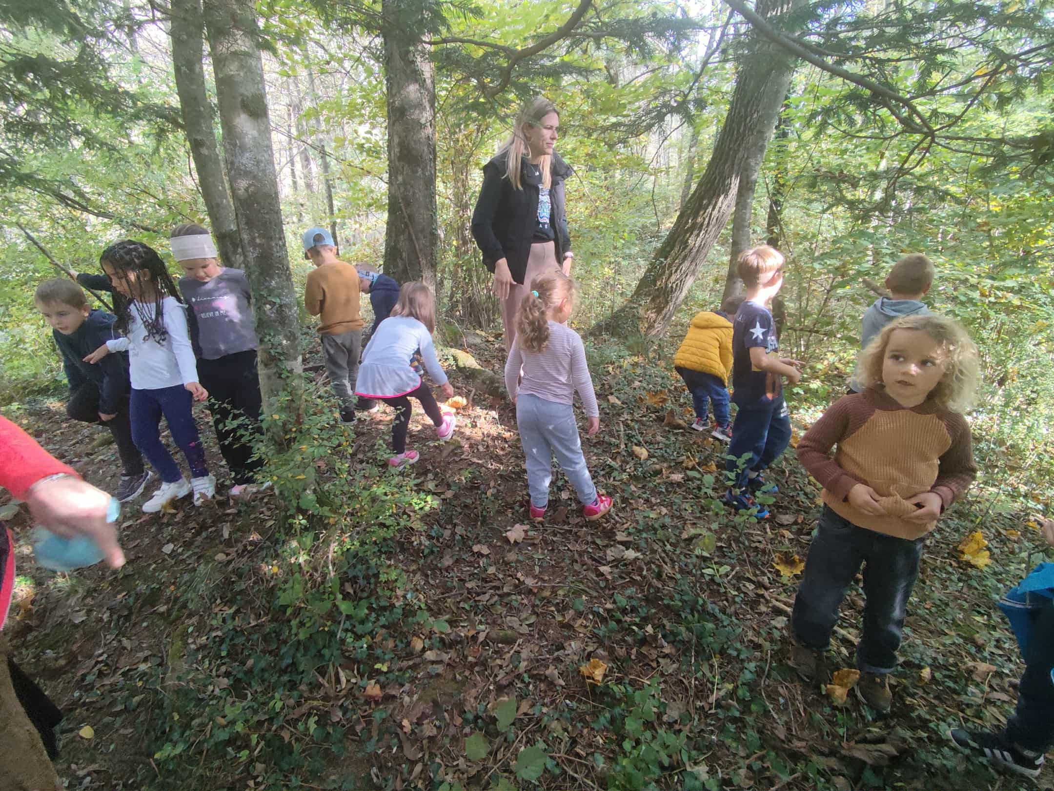 Včeraj smo imeli prav posebno druženje – predšolska skupina Ptički in učenci 1. razreda smo skupaj preživeli dopoldne v gozdu. Najprej smo se razgibali z različnimi igrami, nato pa smo se razdelili v dve skupini.