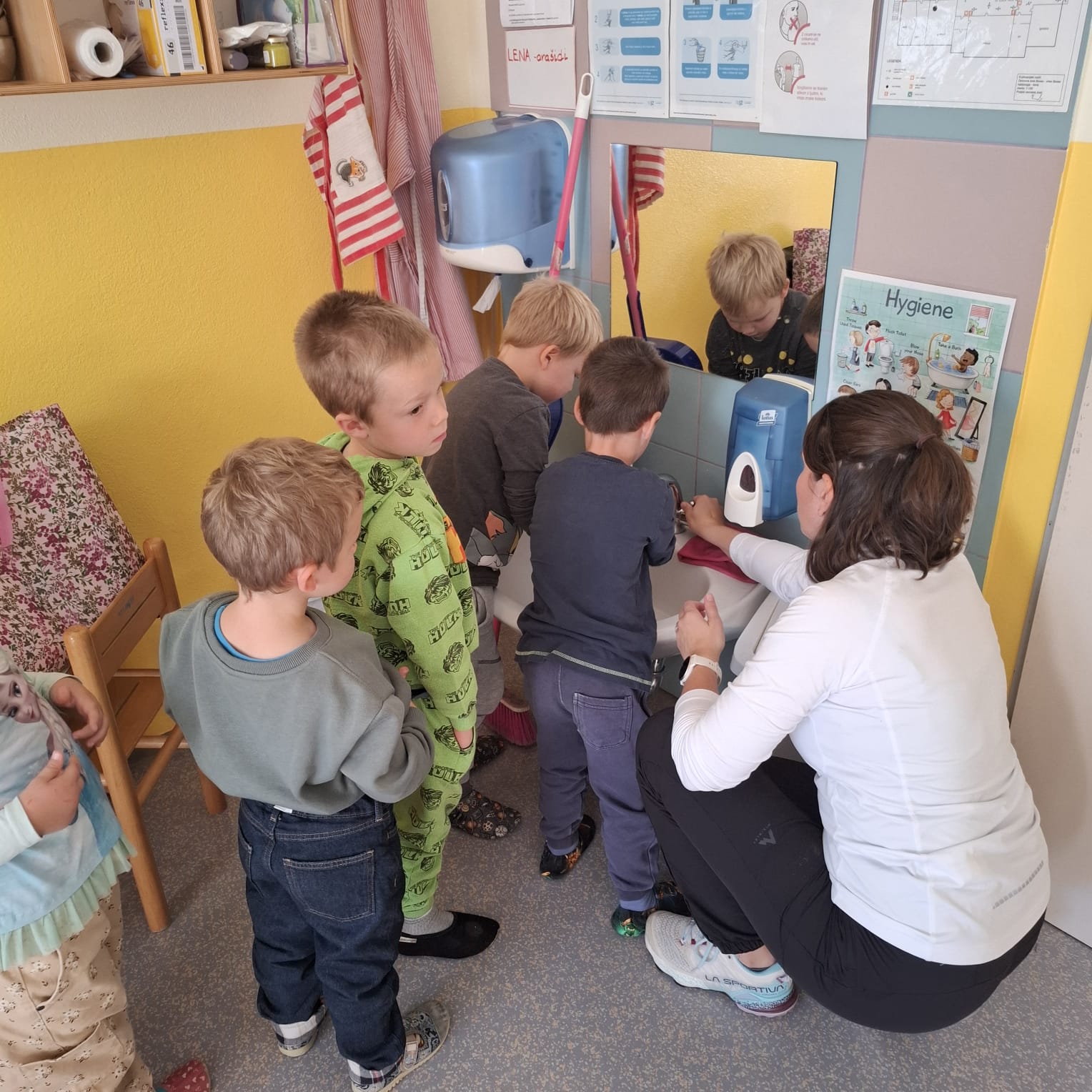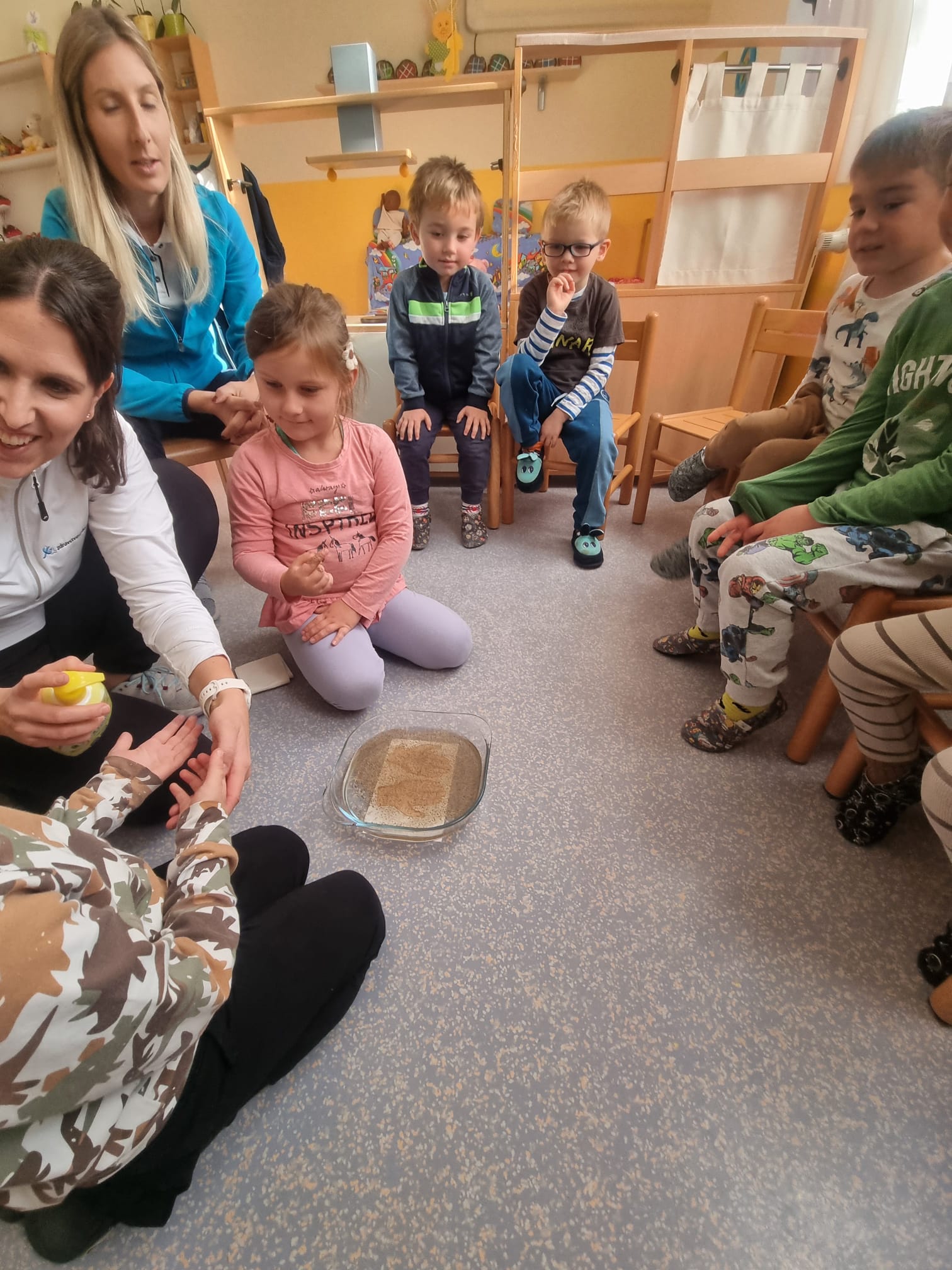 Povedali smo, kaj mora narediti, da se bo pozdravil ter ga skupaj dali spat. Veliko smo slišali o preventivi za zdravje, predvsem o higieni rok: predstavili ter približali sta nam bacile, bakterije, oziroma škratke, nas poučili o dobrih in slabih škratkih ter prikazali poizkus, kako se škratki bojijo mila.