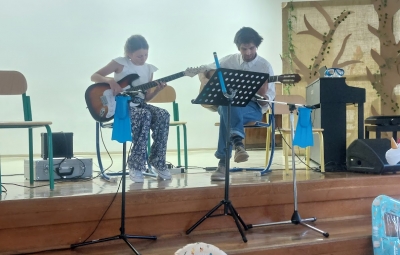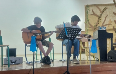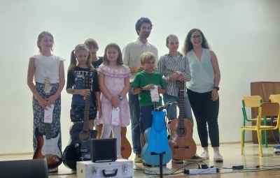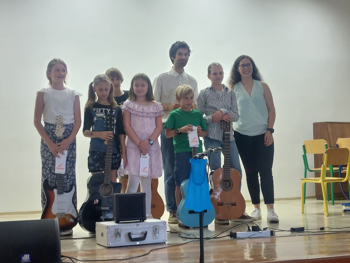 V petek, 6. 6. 2025 je na OŠ Bovec potekal zaključni nastop učencev Glasbene šole Bučar. Na kitari so pod mentorstvom učitelja Miha Medveška nastopili učenke in učenci Danaja Berginc, Aleks Komac, Luka Trunk, Nastja Mihelič in Kristina Bremec, na klavirju pa učenka Lucija Černuta pod mentorstvom učiteljice Mimi Arcet. Učencem in mentorjema hvala za lep ter simpatičen nastop.