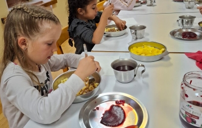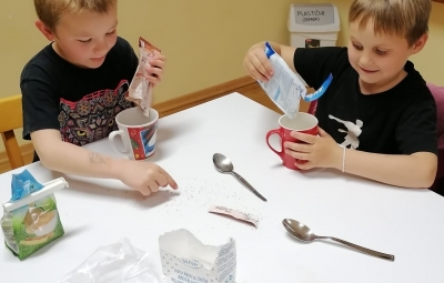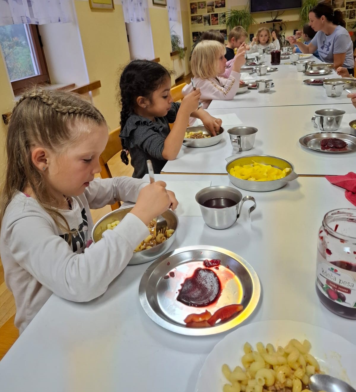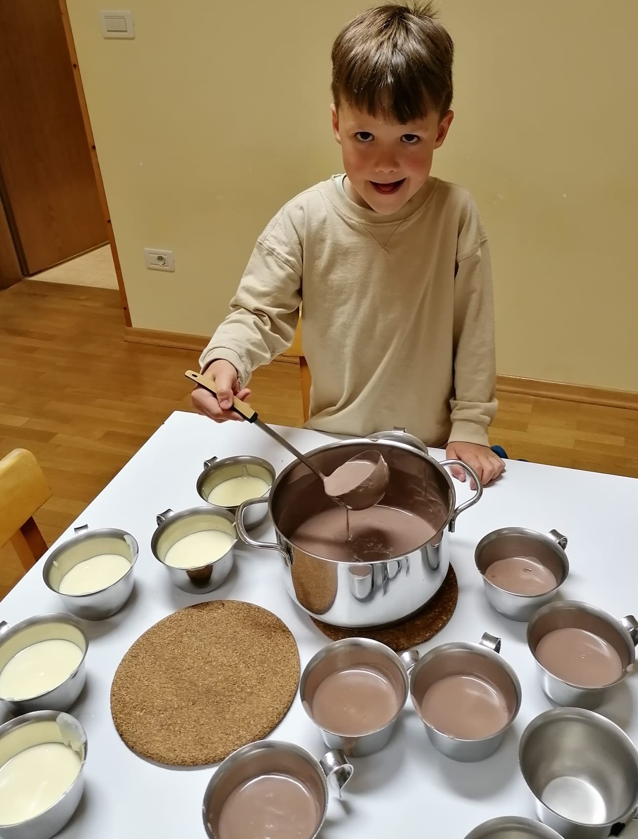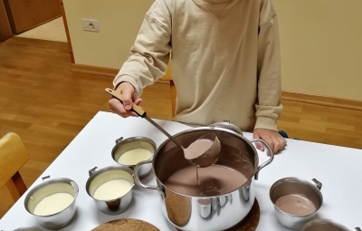 S posebnim veseljem in ponosom pa so otroci sodelovali pri pripravi večerje in pomivanju po njej. Skuhali so testenine in puding in trdili, da boljšega še niso jedli!