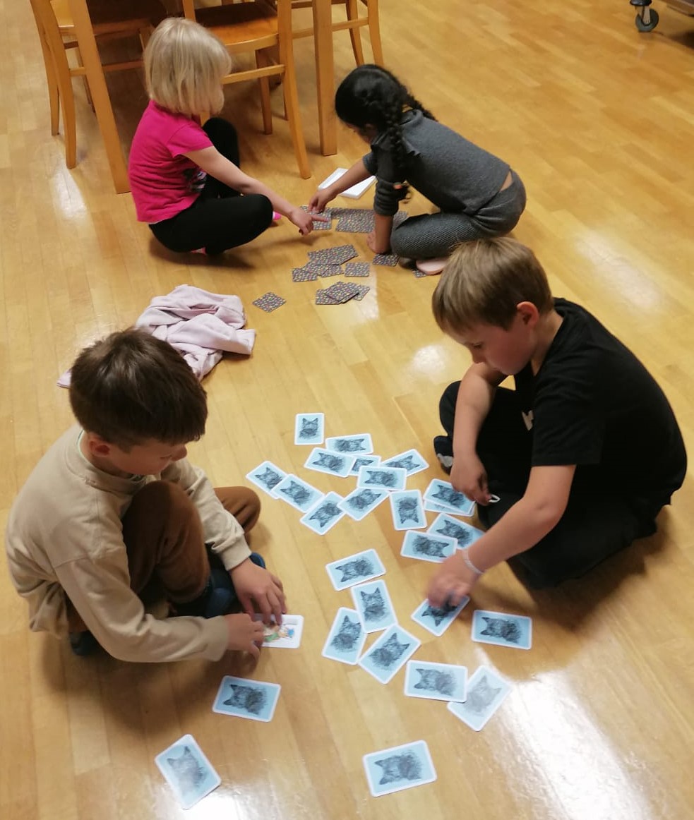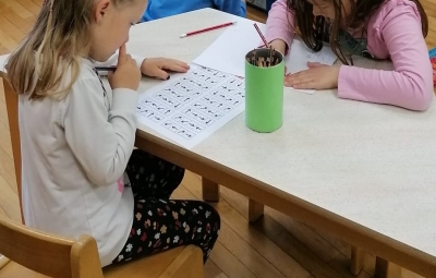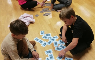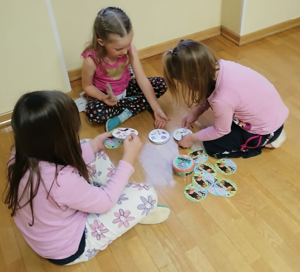 Danes jih kljub dežju čaka zabavno dopoldne, saj sta jima vzgojiteljici Renata in Tanja pripravili gozdno tombolo ter igro z gozdnimi plodovi.