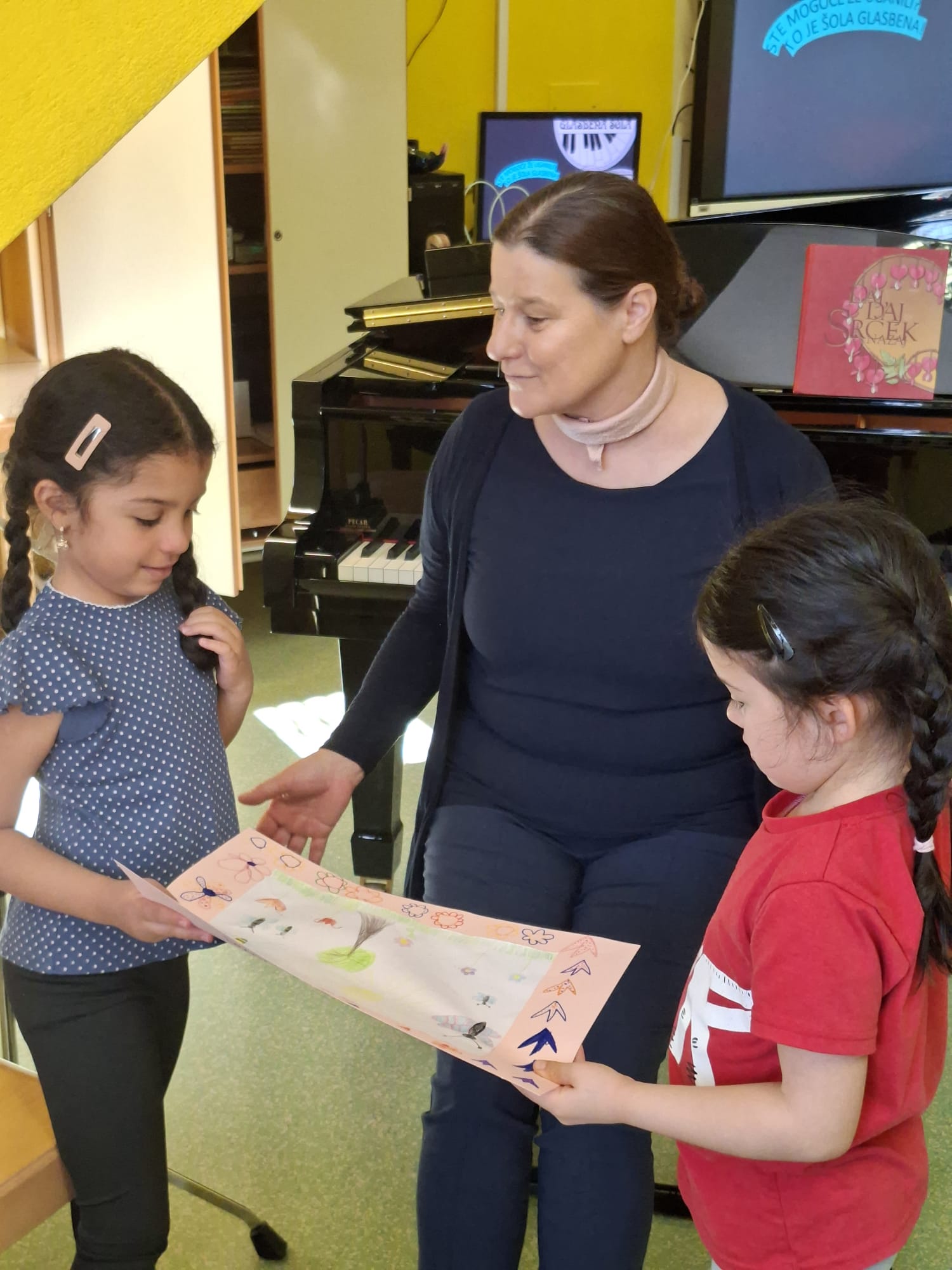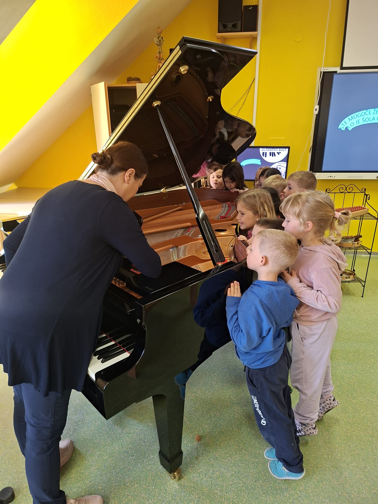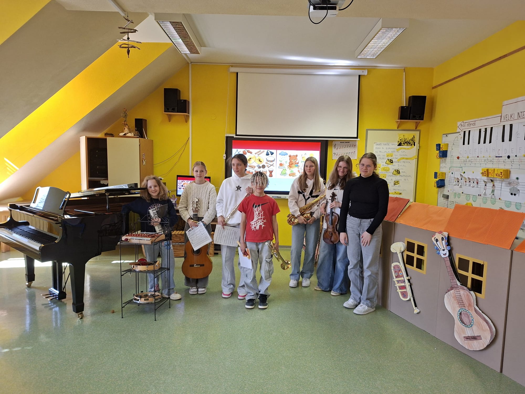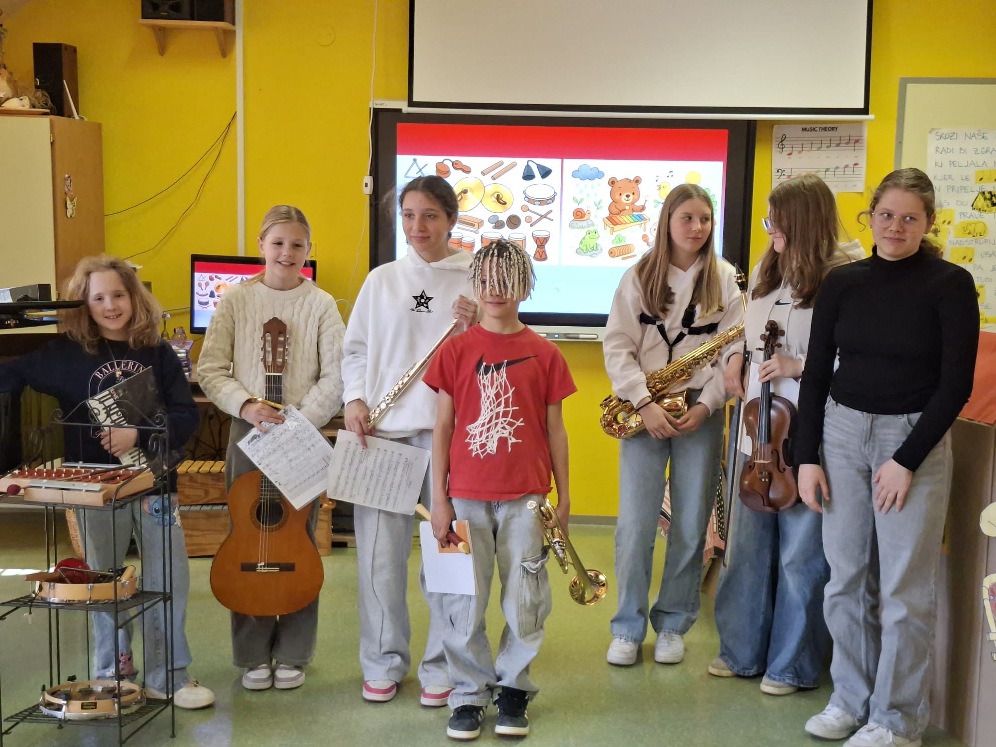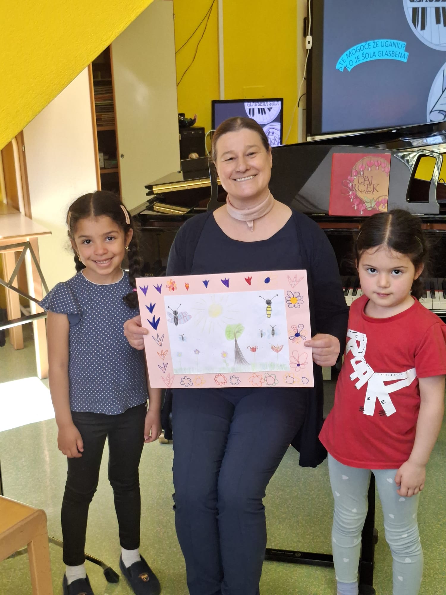 Imeli smo se zelo lepo, najlepša hvala učiteljici Katji in vsem učencem, ki so si vzeli čas za nas in nam veliko pokazali in katerega tudi navdušili za kasnejšo vključitev v glasbeno šolo.