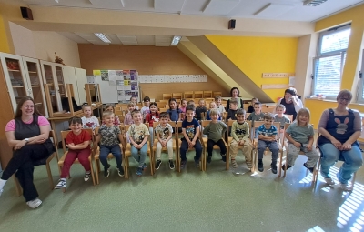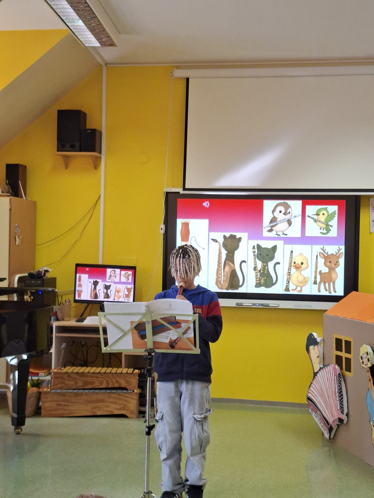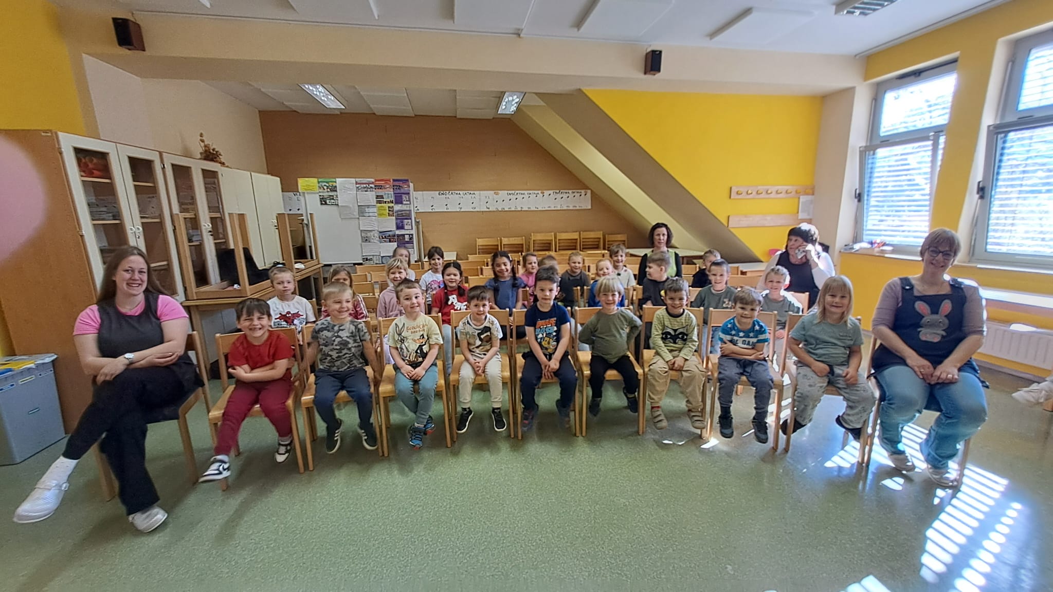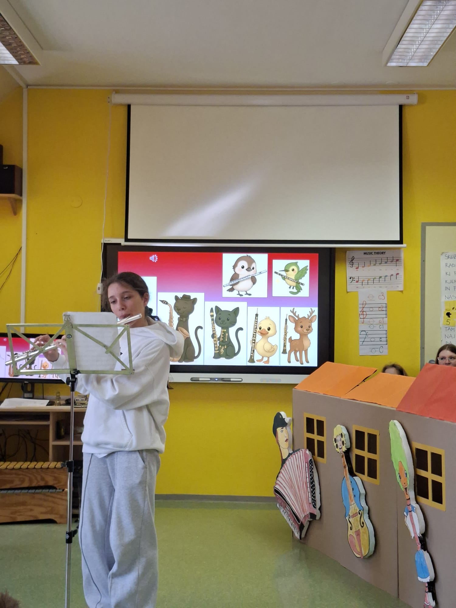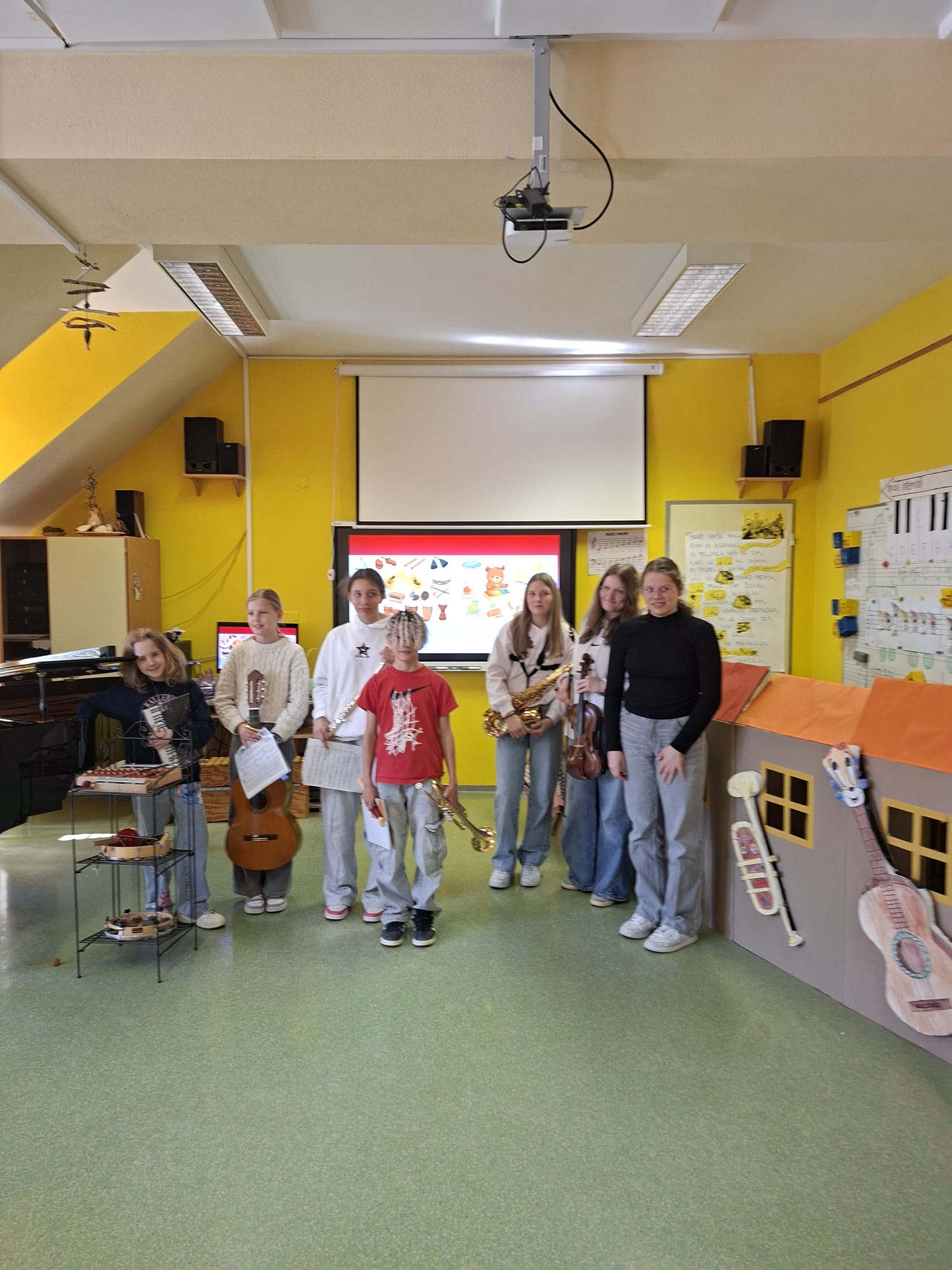 Imeli smo se zelo lepo, najlepša hvala učiteljici Katji in vsem učencem, ki so si vzeli čas za nas in nam veliko pokazali in katerega tudi navdušili za kasnejšo vključitev v glasbeno šolo.