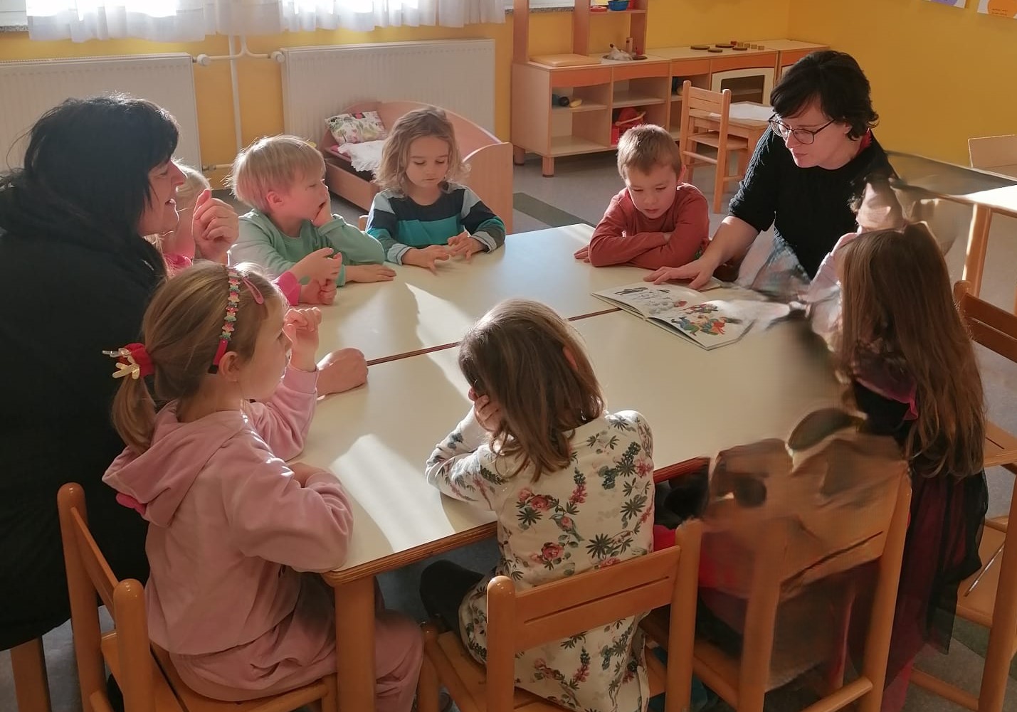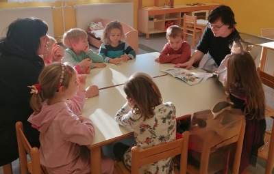 Prebrala jim je pravljico Snežaki v vrtcu, ki so jo zbrano poslušali.