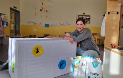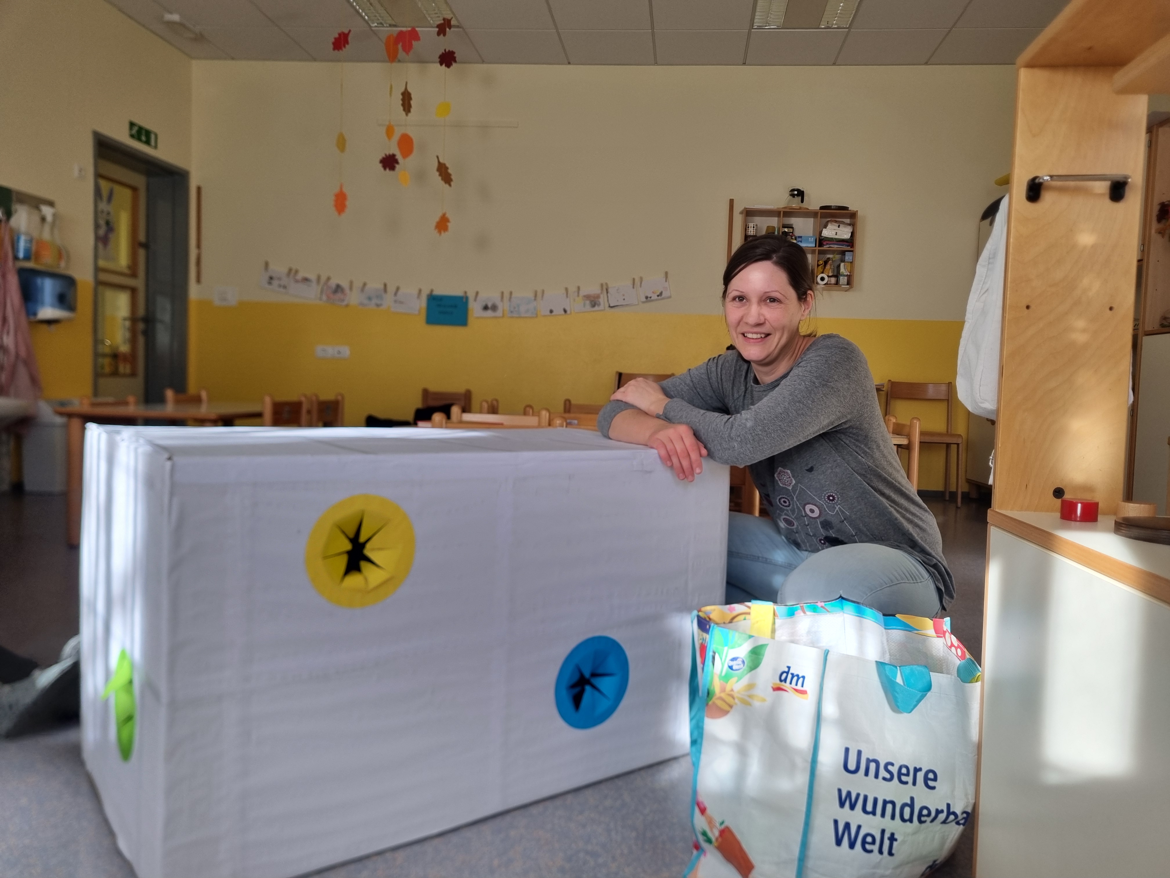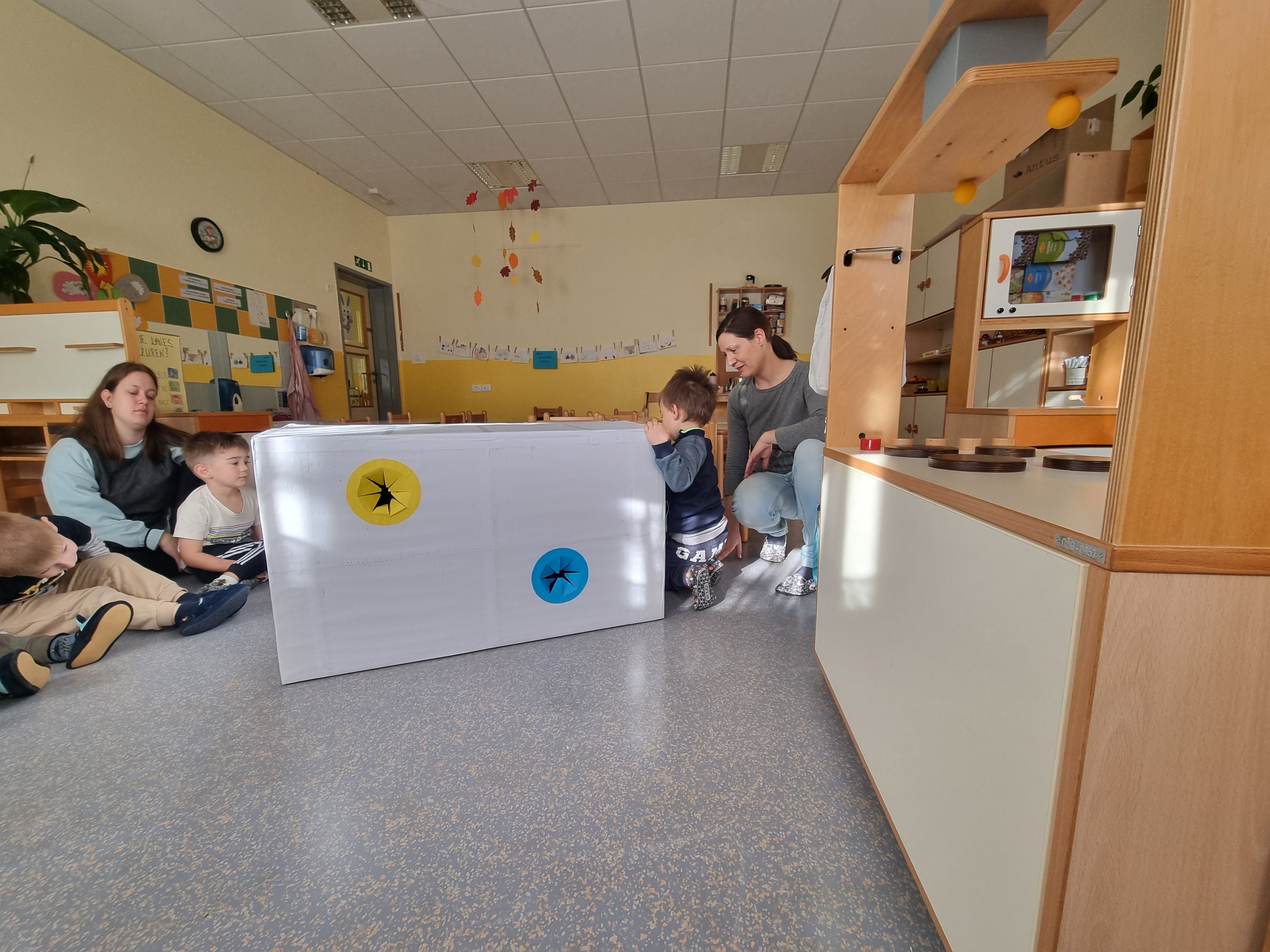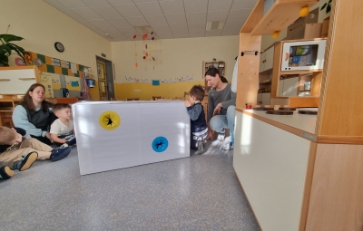Tudi otroke iz skupine "Zajčki" je obiskala knjižničarka Marjanca Vangerlj iz mestne knjižnice Cirila Kosmača v Bovcu.