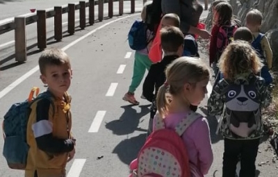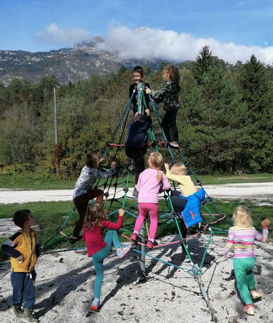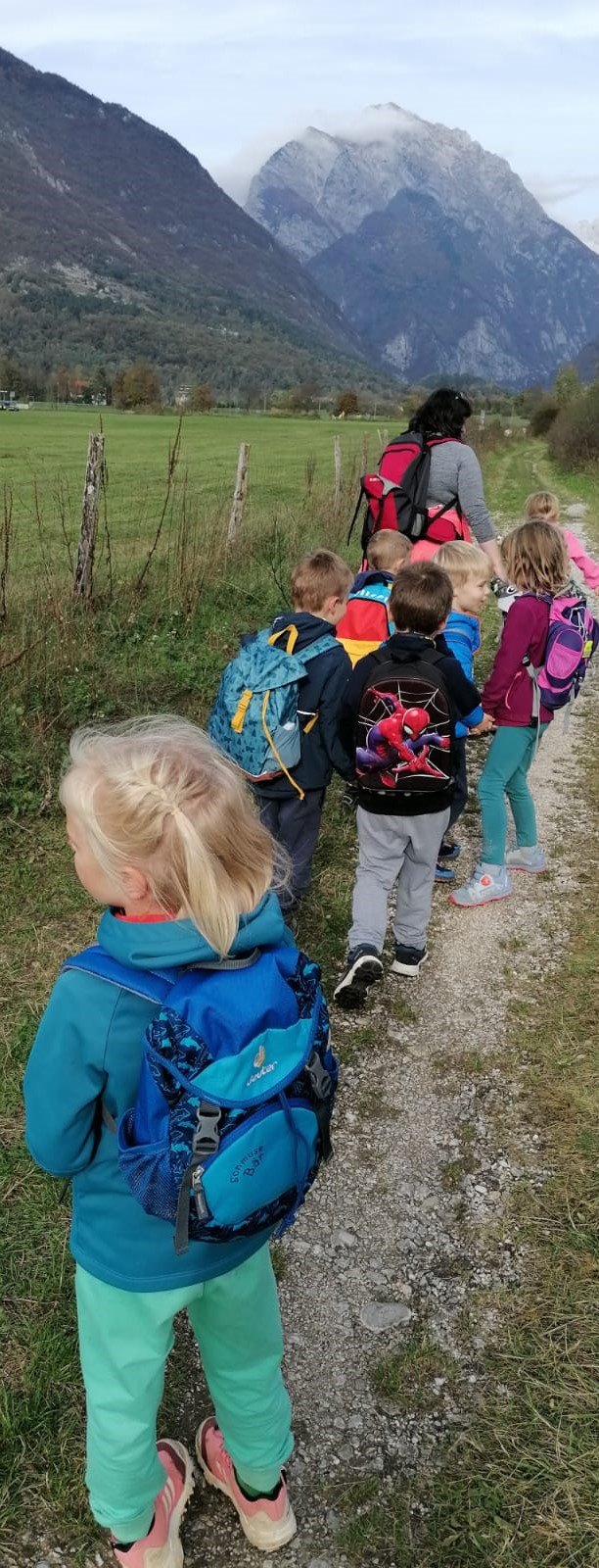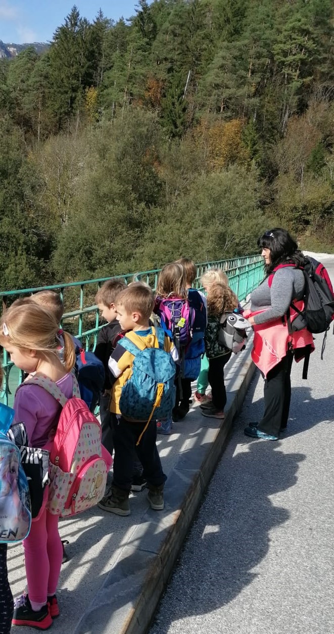 V sredo, 16. 10. 2024, smo se po kosilu odpravili na 1. jesenski pohod CICIBAN PLANINEC. Šli smo v vas Čezsoča in prečkali most, s katerega smo opazovali našo prelepo Sočo. Na igrišču v Čezsoči smo se ustavili, malo tekli, plezali in se gugali. Odšli smo nazaj proti Bovcu po makadamski cesti. Na poti smo nabirali storže, jesensko listje in kamenčke zanimivih oblik.