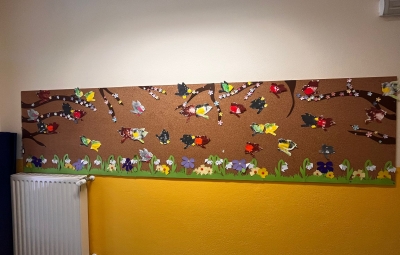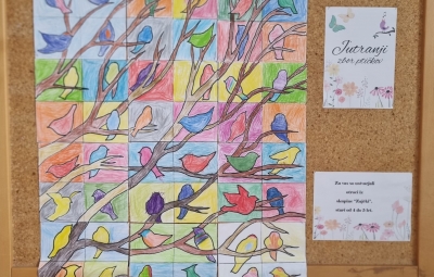 Naše pomladne ptičke iz »jutranjega zbora« smo razstavili tudi v avli mestne knjižnice, zdaj pa svoje izdelke razstavljajo otroci iz skupine »Medvedki«.