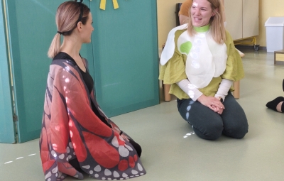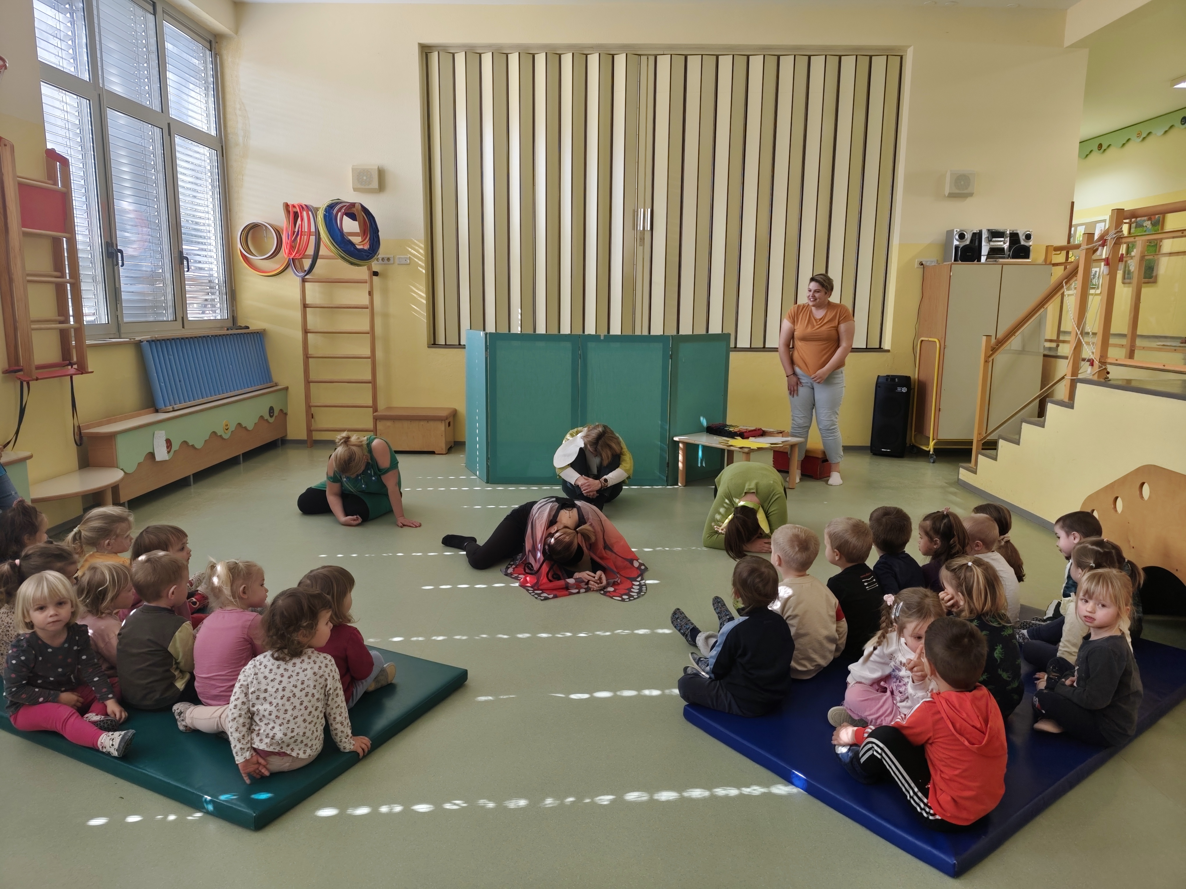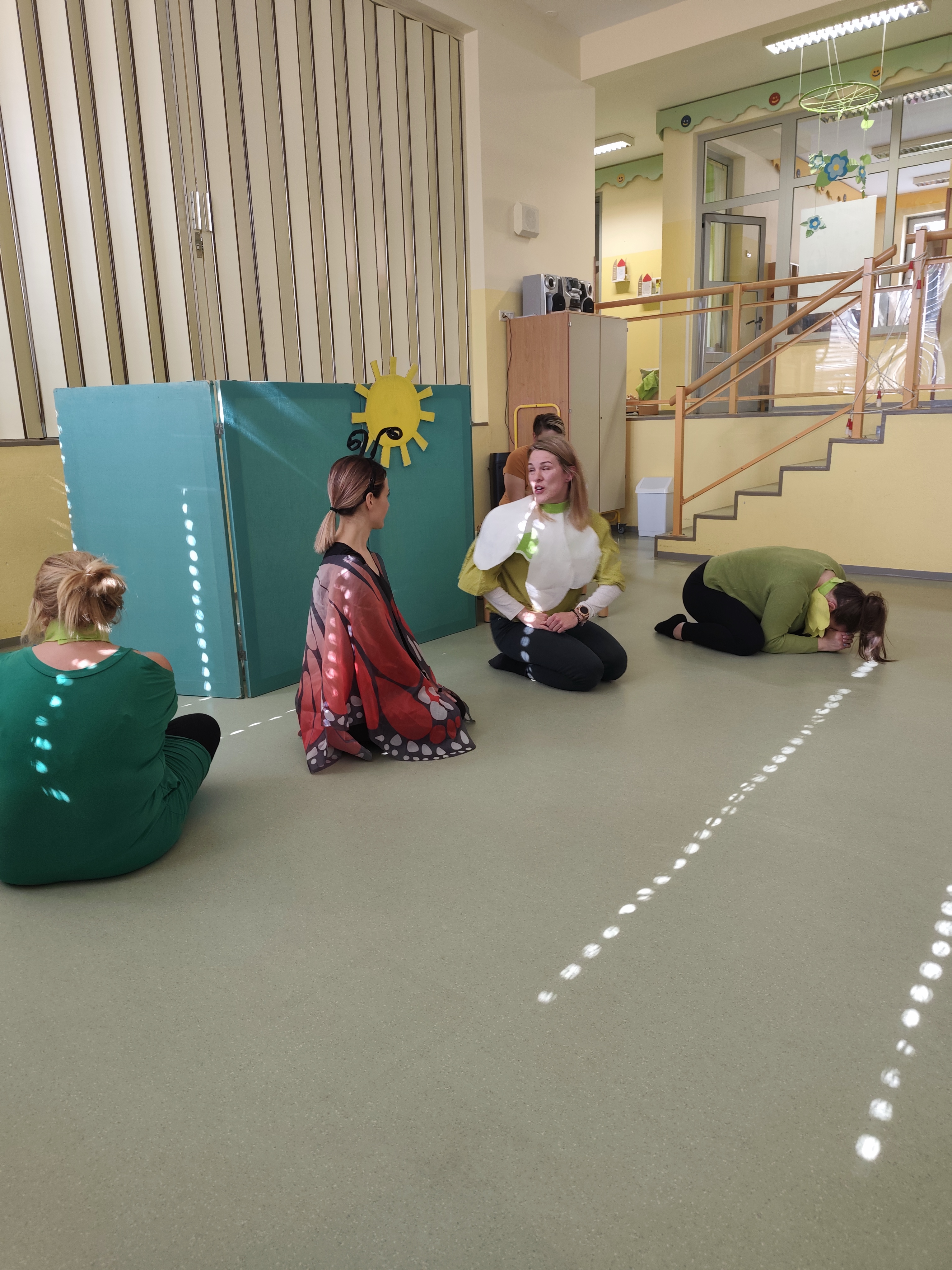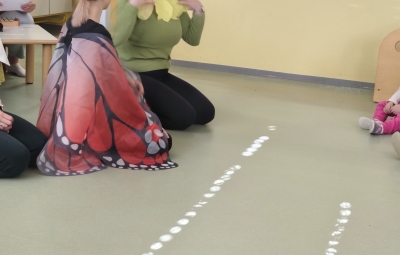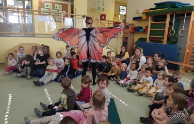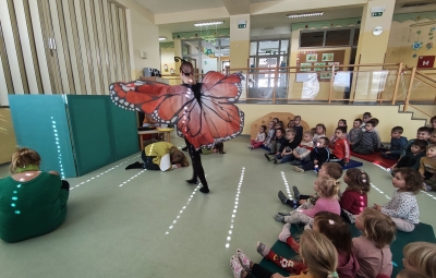 Na prvi pomladni dan je v vrtcu zavladalo prav posebno vzdušje, saj so vzgojiteljice za otroke pripravile spomladansko obarvano gledališko predstavo z naslovom Metuljček išče pomlad. Ko so se otroci vrtca zbrali, so v prijetno okrašenem prostoru, vzgojiteljice stopile v vloge pravljičnih likov ter otroke popeljale v zgodbo o zaspanem travniku, ki ga je po dolgi zimi prebudil nežni metulj. S svojim lahkotnim plesom je najprej zbudil zvonček, ki je sramežljivo pokukal iz zemlje, nato še trobentico, ki je pogumno razprla svoje rumene cvetove, in nazadnje še nežno spominčico, ki je travnik obarvala v modro. Otroci so z navdušenjem spremljali dogajanje, prisluhnili zgodbi o metulju, ter vsaki odpeti pesmi. Vsem otrokom je metulj še dodatno pričaral nasmeh na obraz, ko je poletel med njih in jih pobožal z nežnimi krili. Ob koncu smo še skupaj zapeli in tako obeležili prvi pomladni dan, v duhu ustvarjalnosti, igre in povezanosti z naravo.