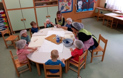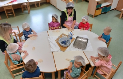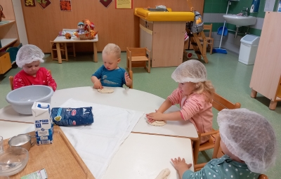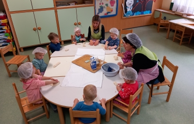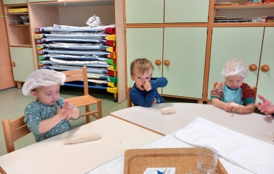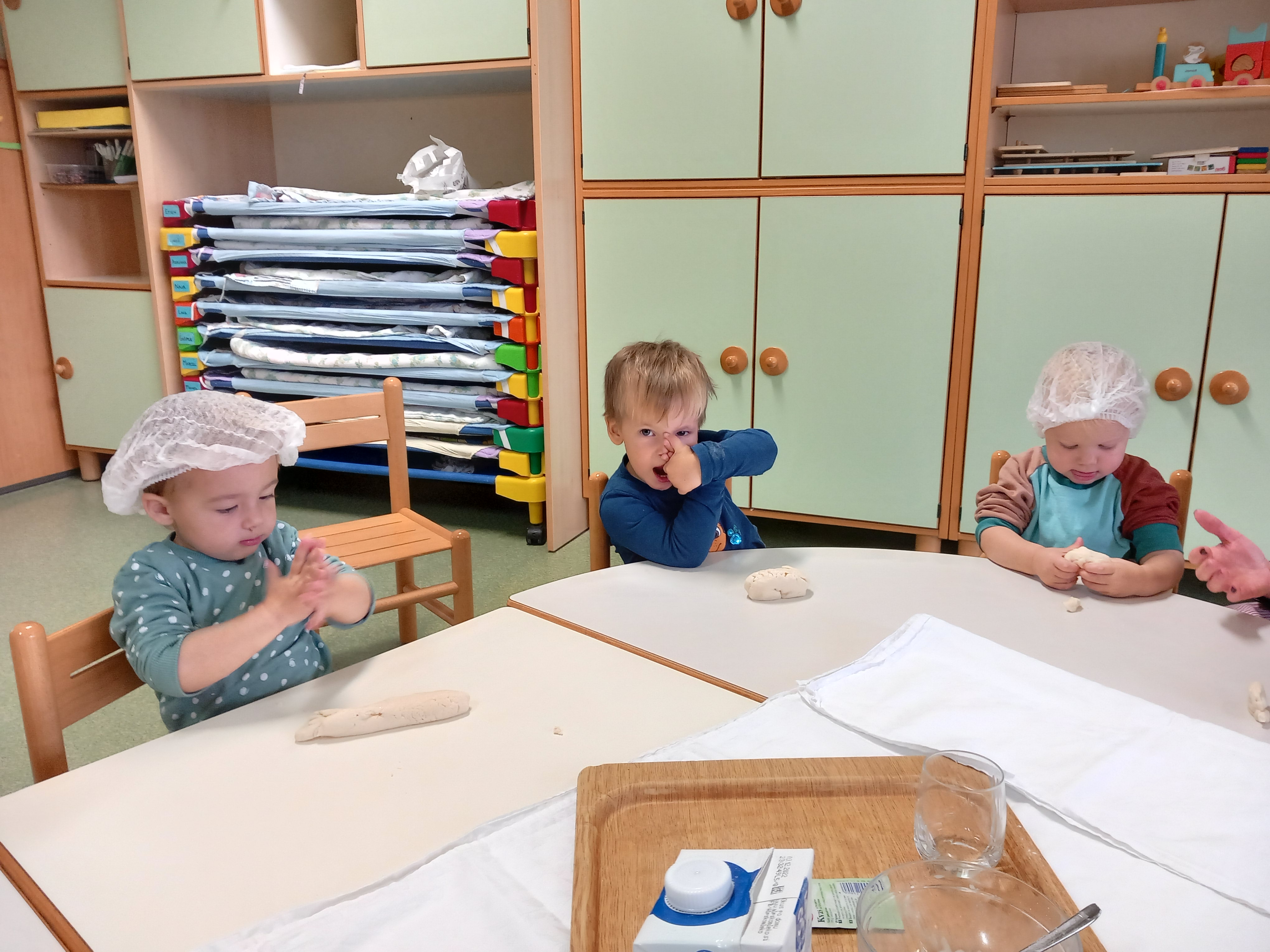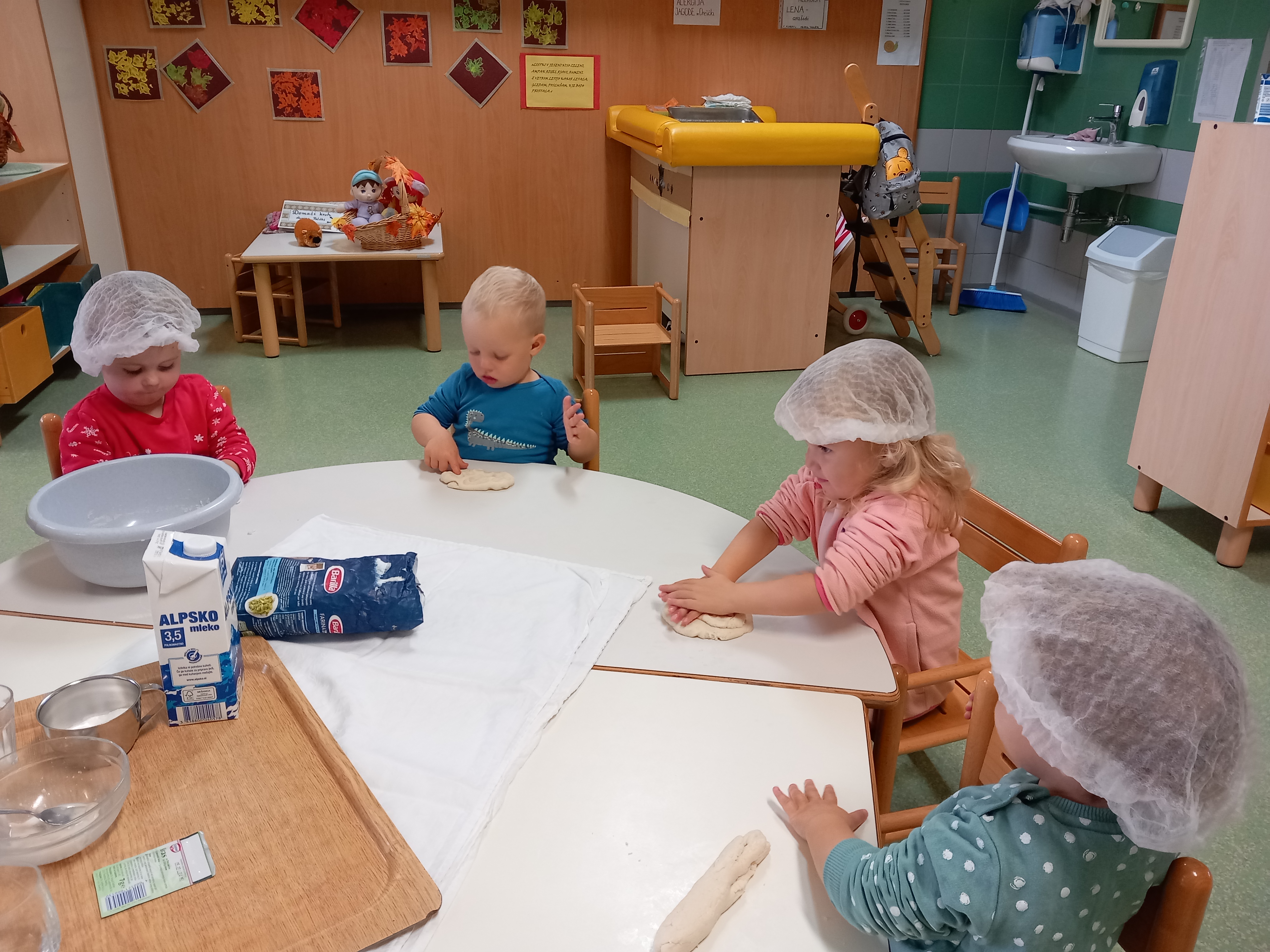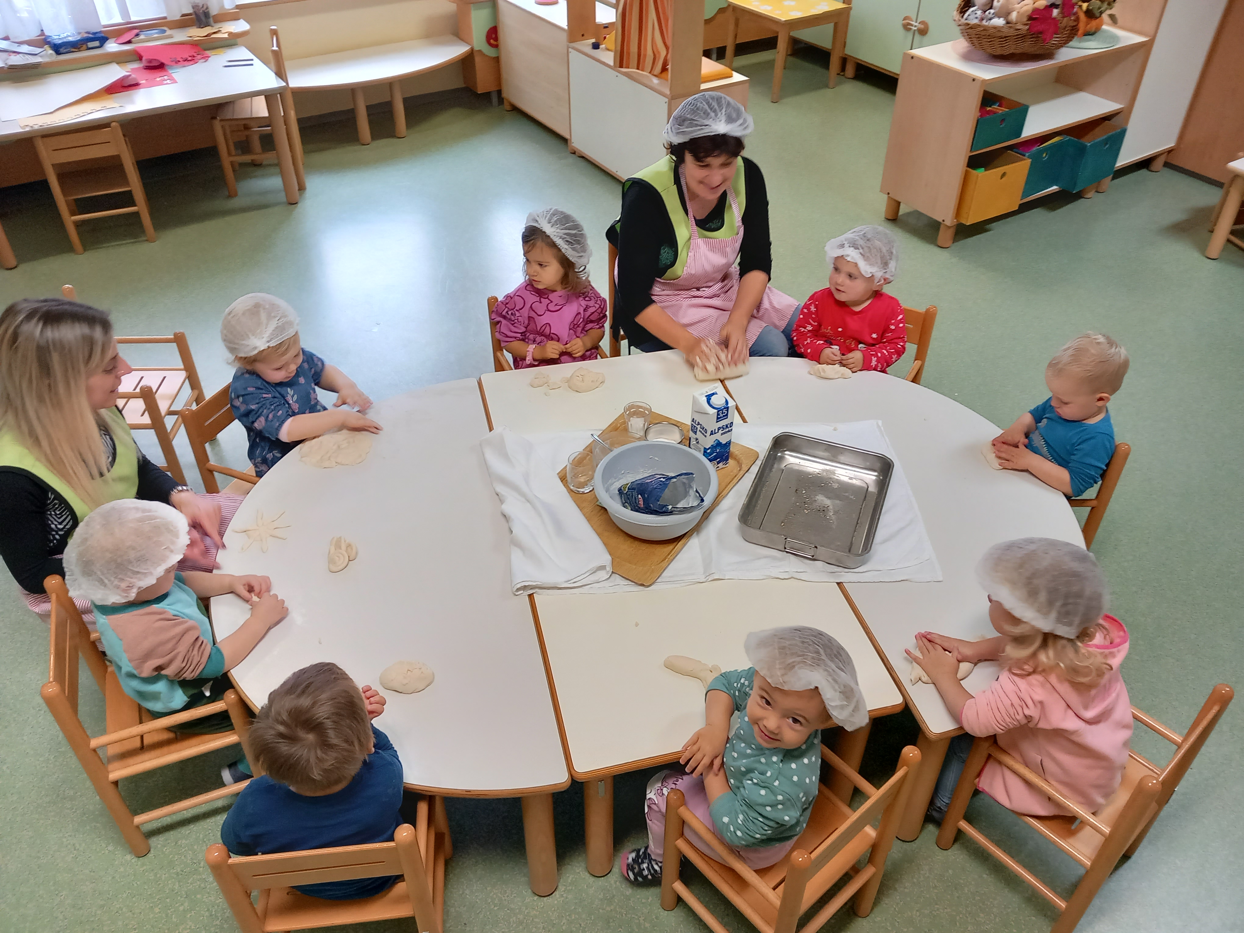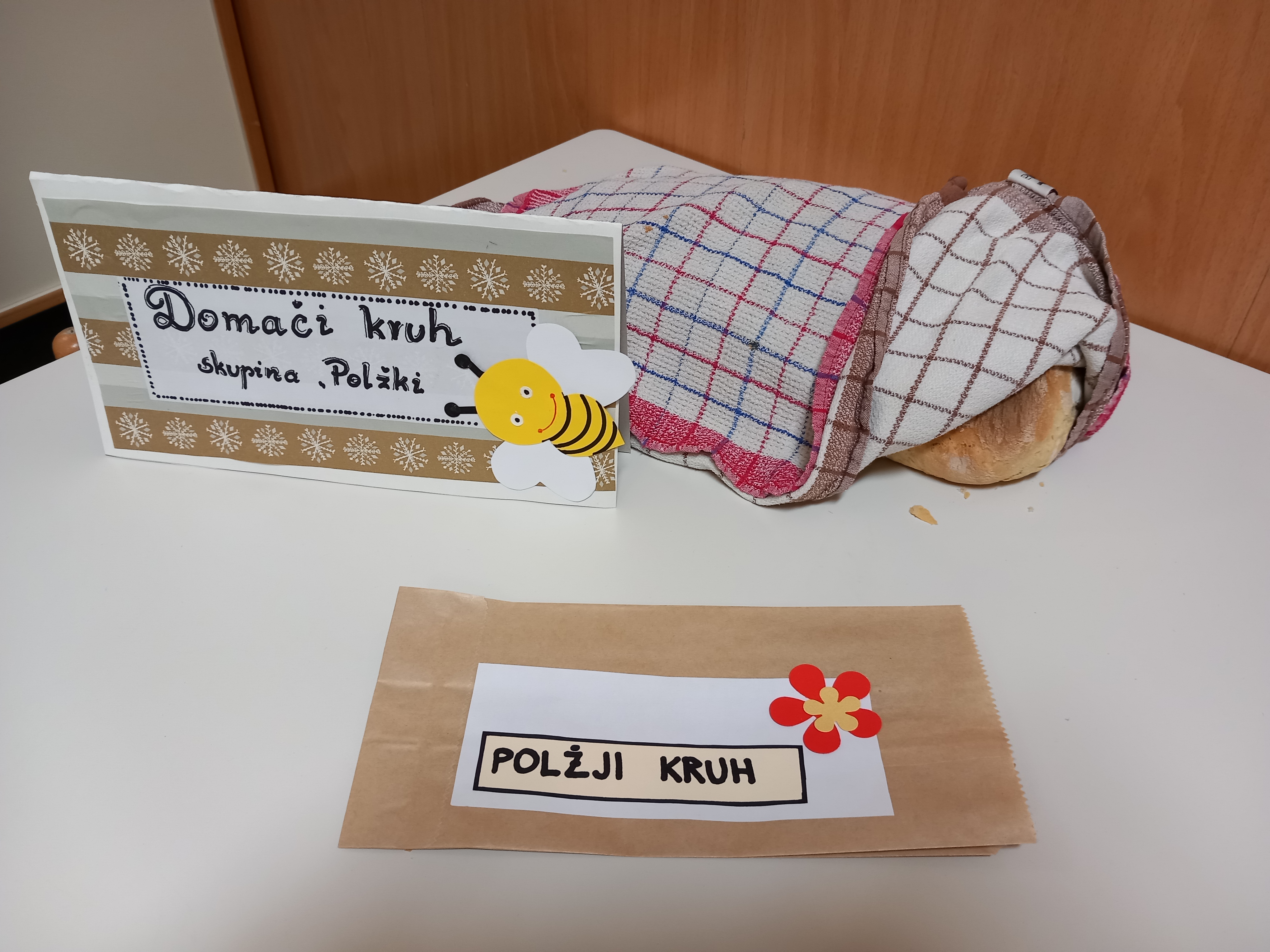 V torek, 15. novembra, je po vrtčevskih hodnikih lepo dišalo. Polžki so spoznali katere sestavine potrebujemo, da spečemo kruh. Sestavine so poimenovali in jih zamesili v testo. Testo so gnetli, valjali in oblikovali. Polžki so spoznali, da testo v njihovih rokah postane mehko in toplo in se naučili novih besed, kot je kvas. V tem času se je hlebec spekel, vonj po kruhu pa je dražil nosove. Ponosno je vsak svoj košček kruha odnesel domov.
