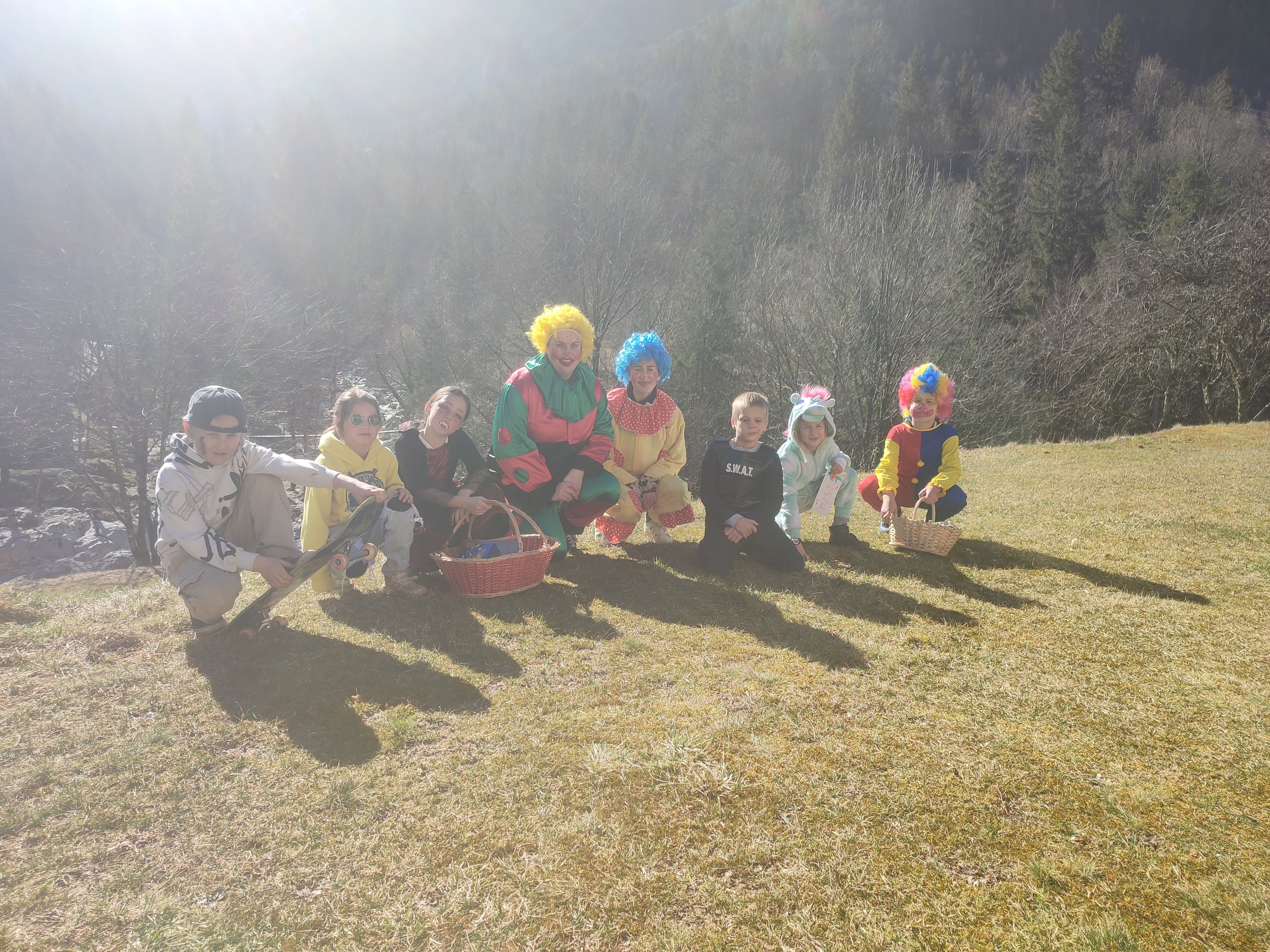 Z učenci Podružnične šole Soča smo na pustni torek imeli pustni sprevod po vasi Soča. Obiskali smo prebivalce okoliških hiš, ki so se našega obiska močno razveselili. Zavzeto smo preganjali zimo, zato so nas domačini razveselili z raznimi dobrotami. Posladkali in si novih moči nabrali smo se z domačimi štravbami in pustnimi miškami. Zelo smo uživali!
