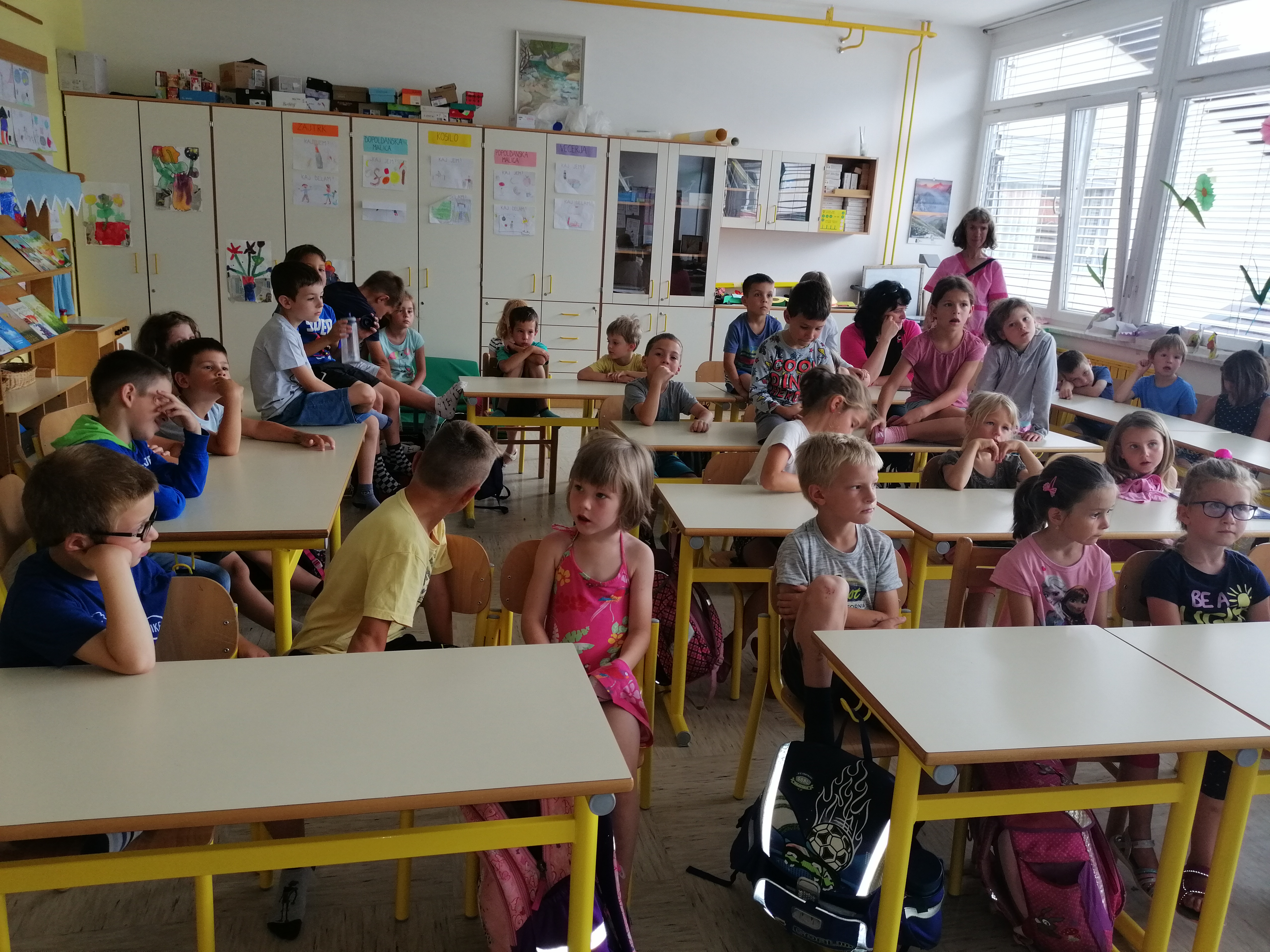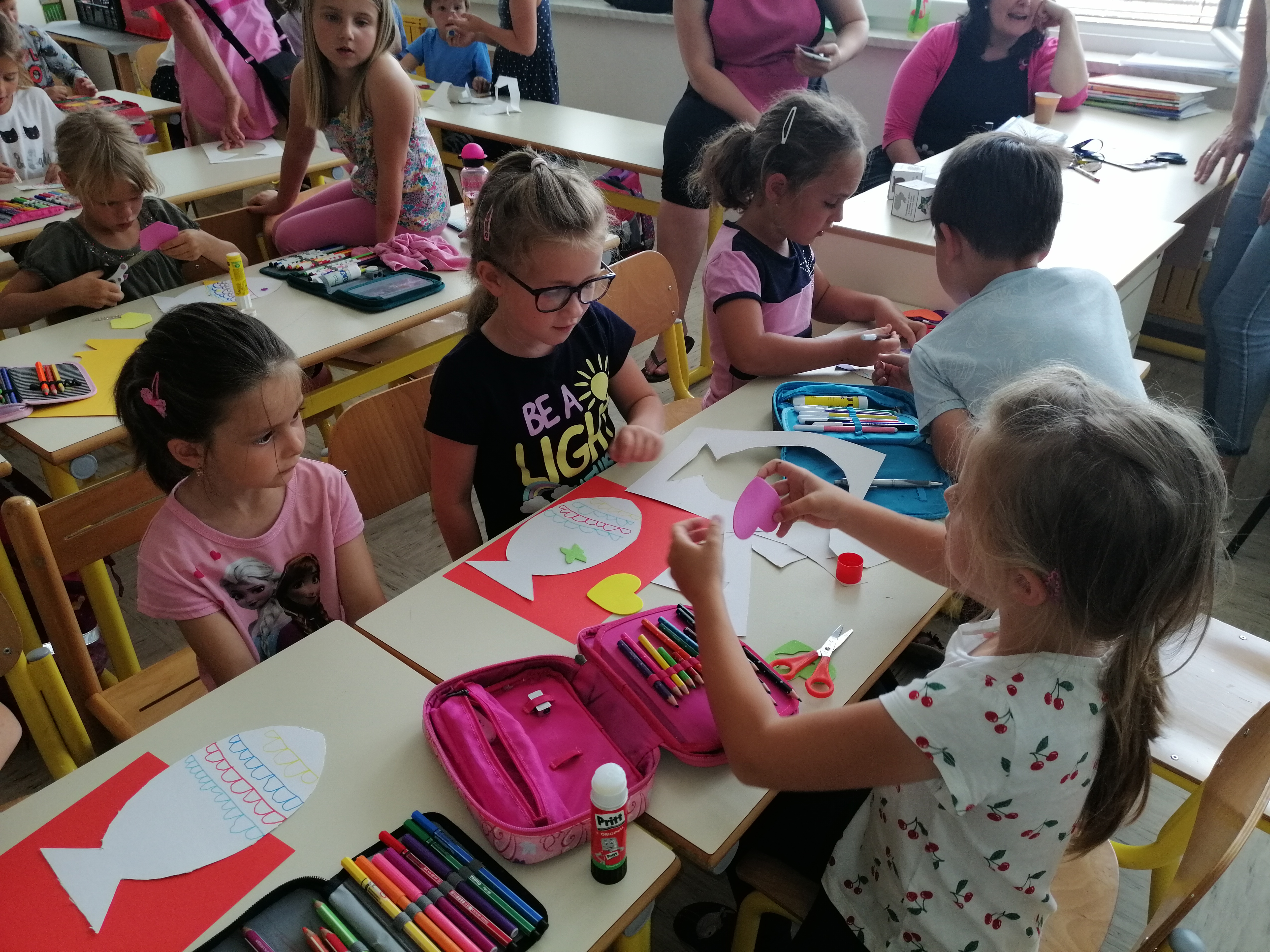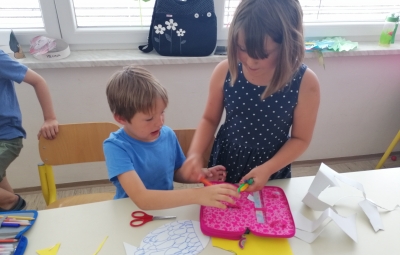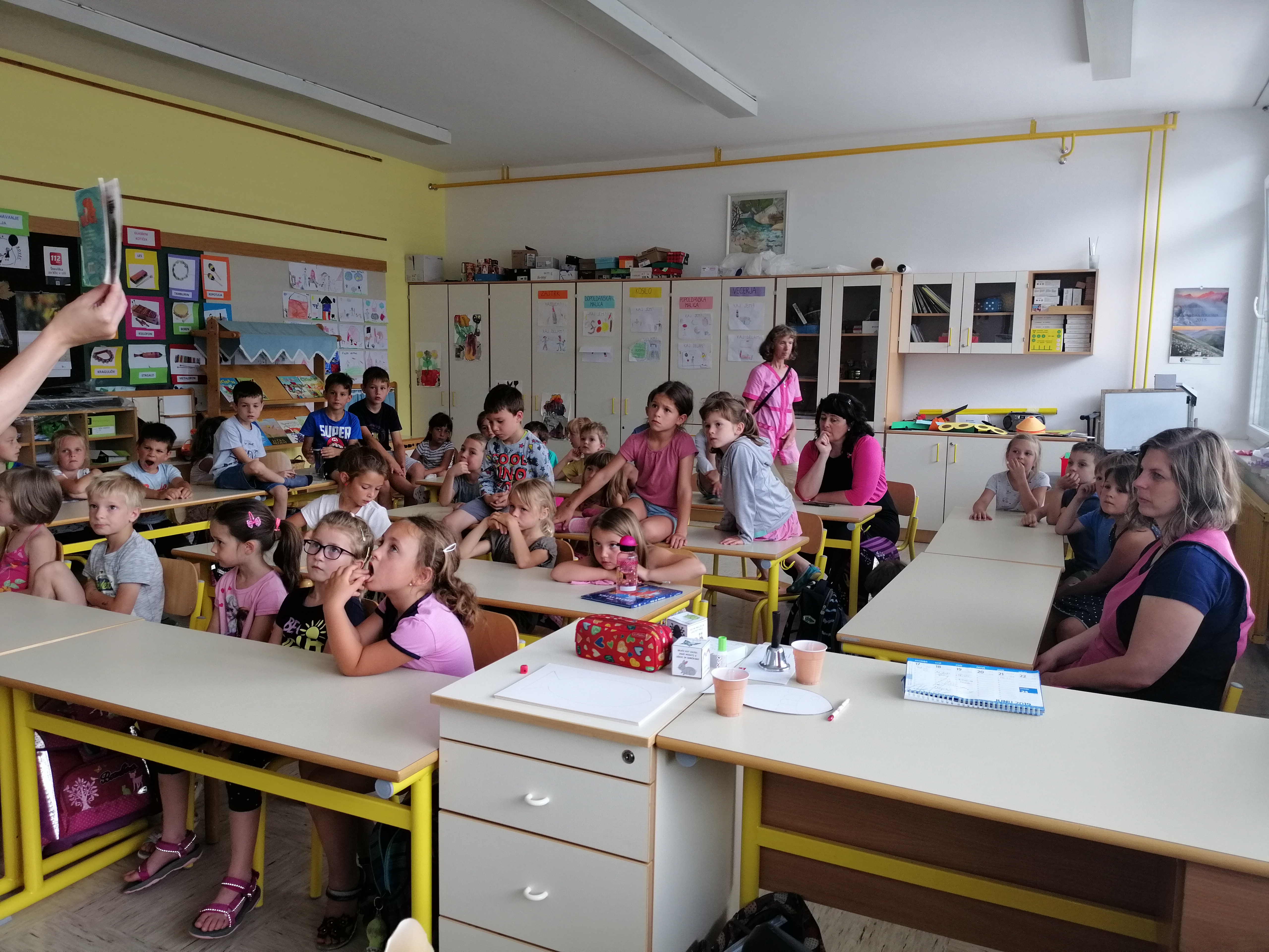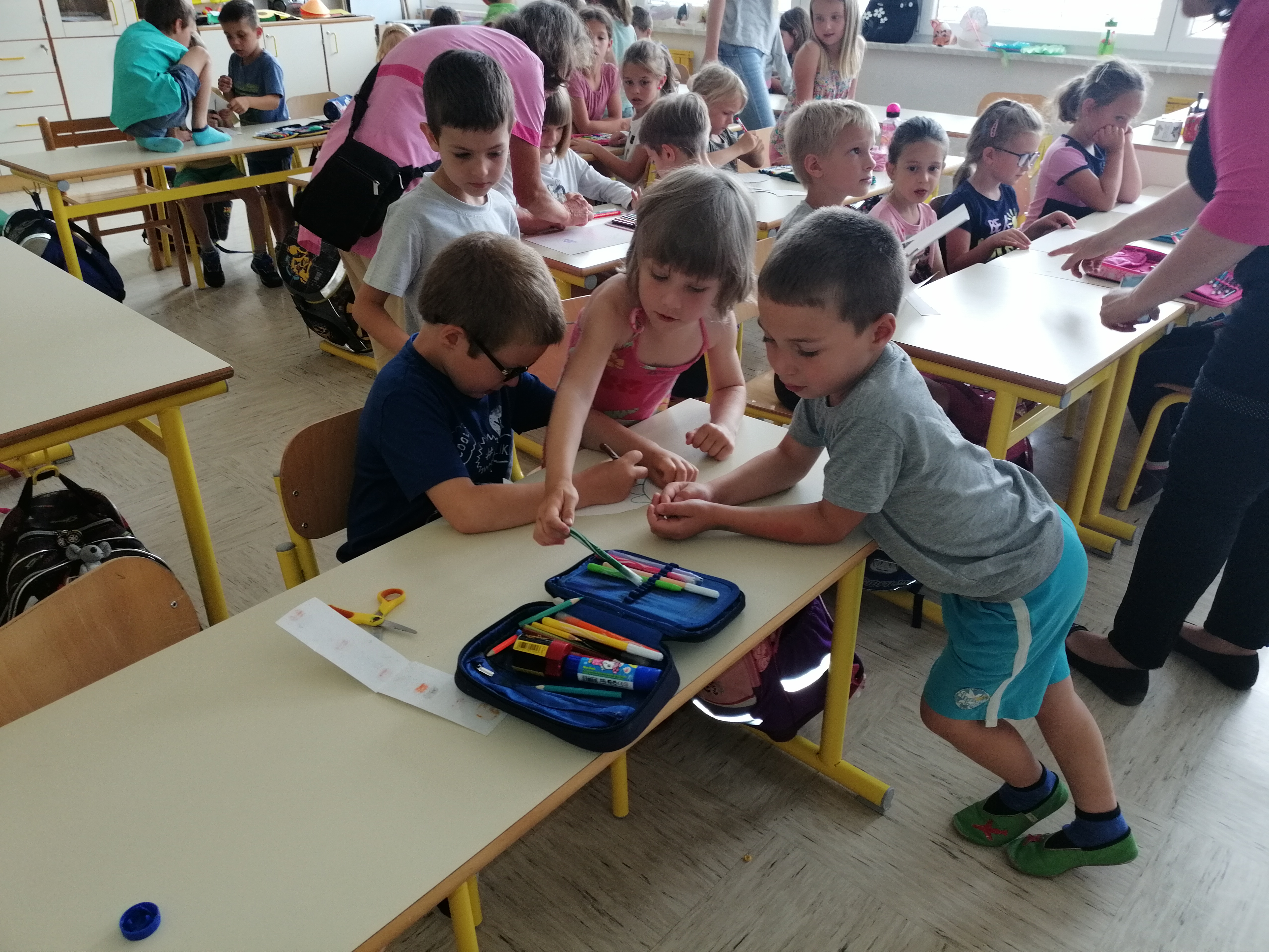 Danes, v sredo, 19. 6. so nas v 1. A obiskali otroci iz vrtca, iz skupine škratki. Pokazali smo jim, kaj smo letos počeli, kaj smo se novega naučili. Skupaj smo prebrali pravljico Reševanje malega Nema in izdelali ribice. Vsak škratek je imel ob sebi za pomoč dva naša učenca. Bilo je zanimivo in zabavno. Upamo, da smo jim prikazali kanček dobrega vzdušja v šoli, da bodo v jeseni z veseljem zakorakali v 1. razred.