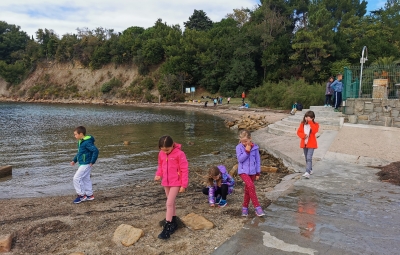 Učenci 2. razreda in Podružnične šole Soča smo srečno prispeli na Debeli rtič. Po nastanitvi smo se polni navdušenja odpravili plavat. Po kosilu smo se sprehodili do morja, raziskovali obalo in nabrali nekaj školjk. Čaka nas še popoldanski del plavalnega tečaja. Imamo se lepo.