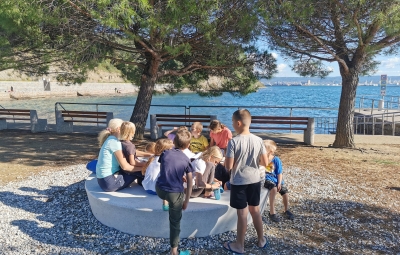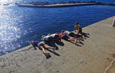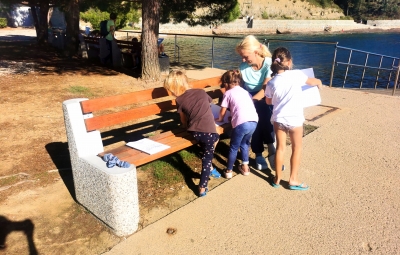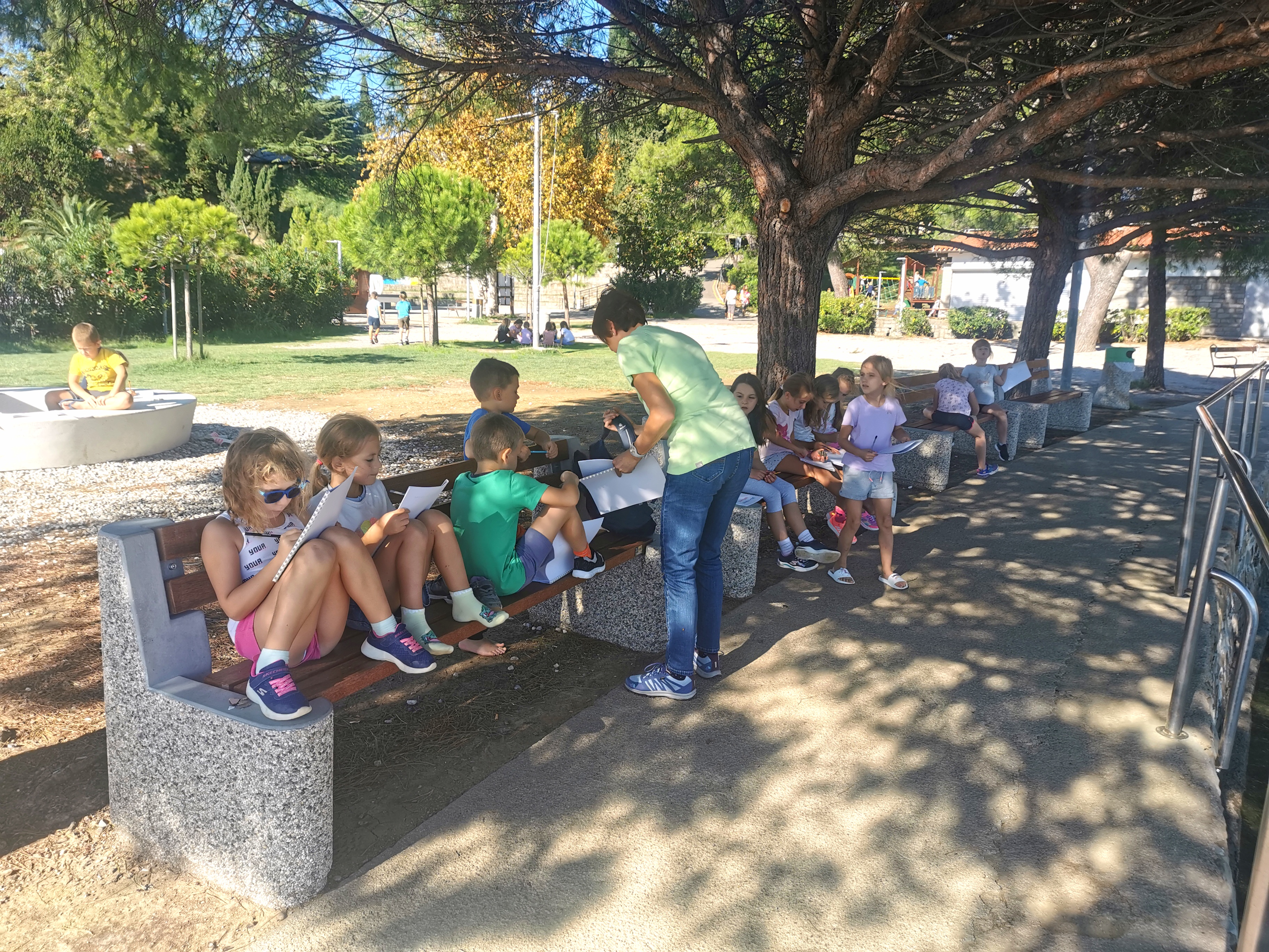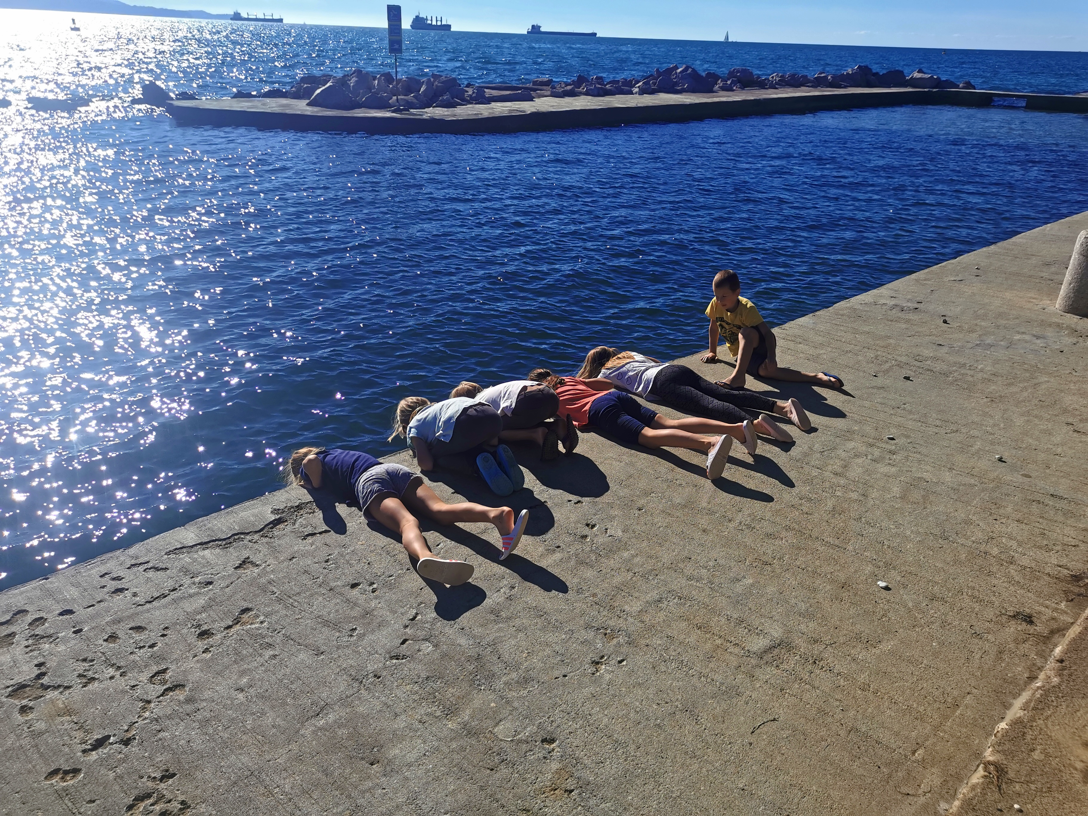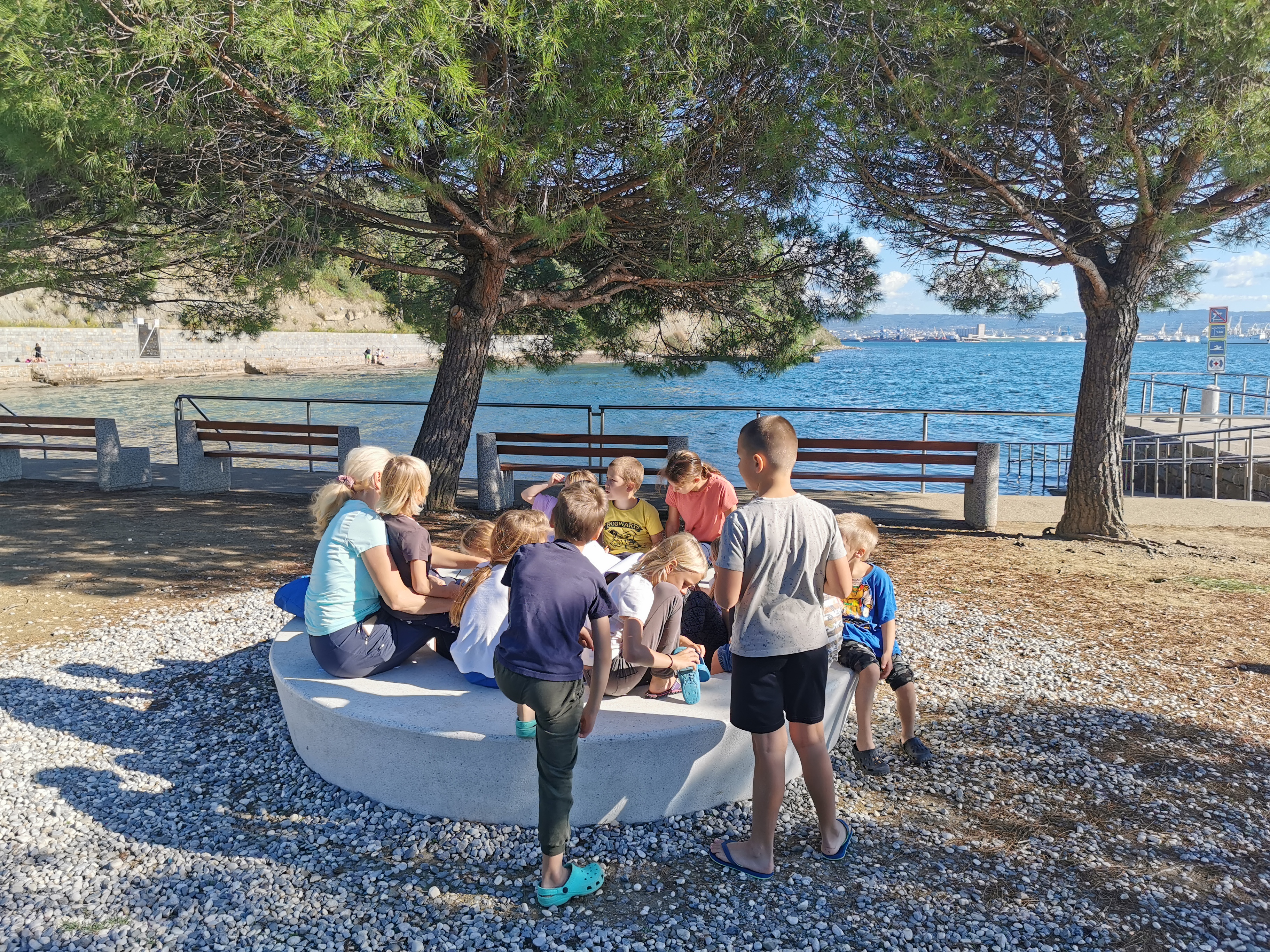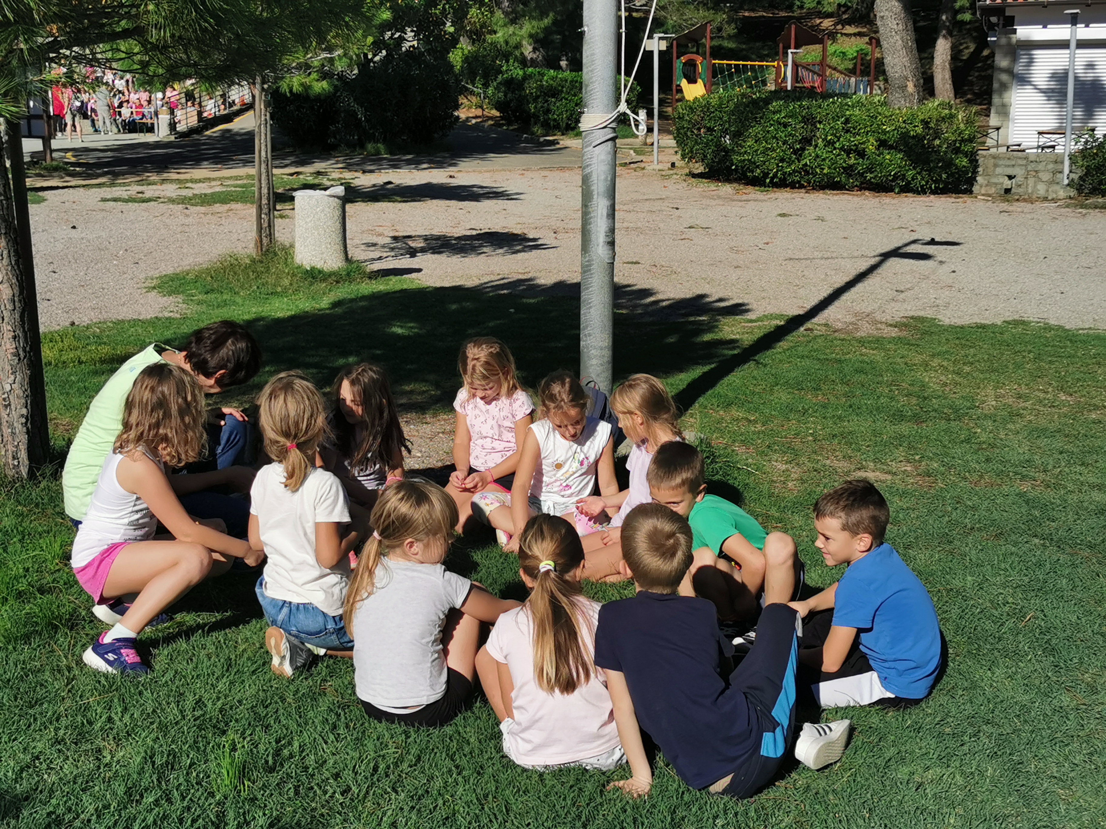 Polni navdušenja smo ob prihodu odložili prtljago in odkorakali na bazen. Popoldne smo raziskovali življenje ob morju. Prijetno utrujeni smo se po večerji podali na pohod z lučkami.