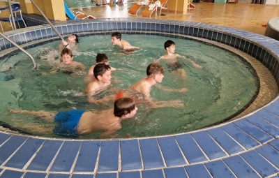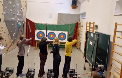 V četrtek smo kljub slabemu vremenu preživeli čudovit dan. Ogreli smo se v topli vodi v termah, se urili v lokostrelstvu ter večer zaključili z zabavnim druženjem. Učenci obeh šol so pokazali svoje talente in skupaj zaplesali ob živahnih ritmih.