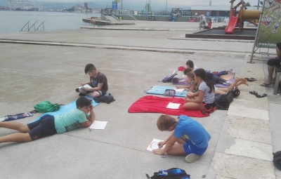 Spodaj pa še nekaj utrinkov iz prejšnjih dni, malo jutranjega razgibavanja, bazena, učenja ob obali in večernega sprehoda do Kopra.