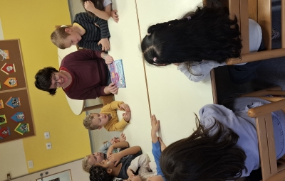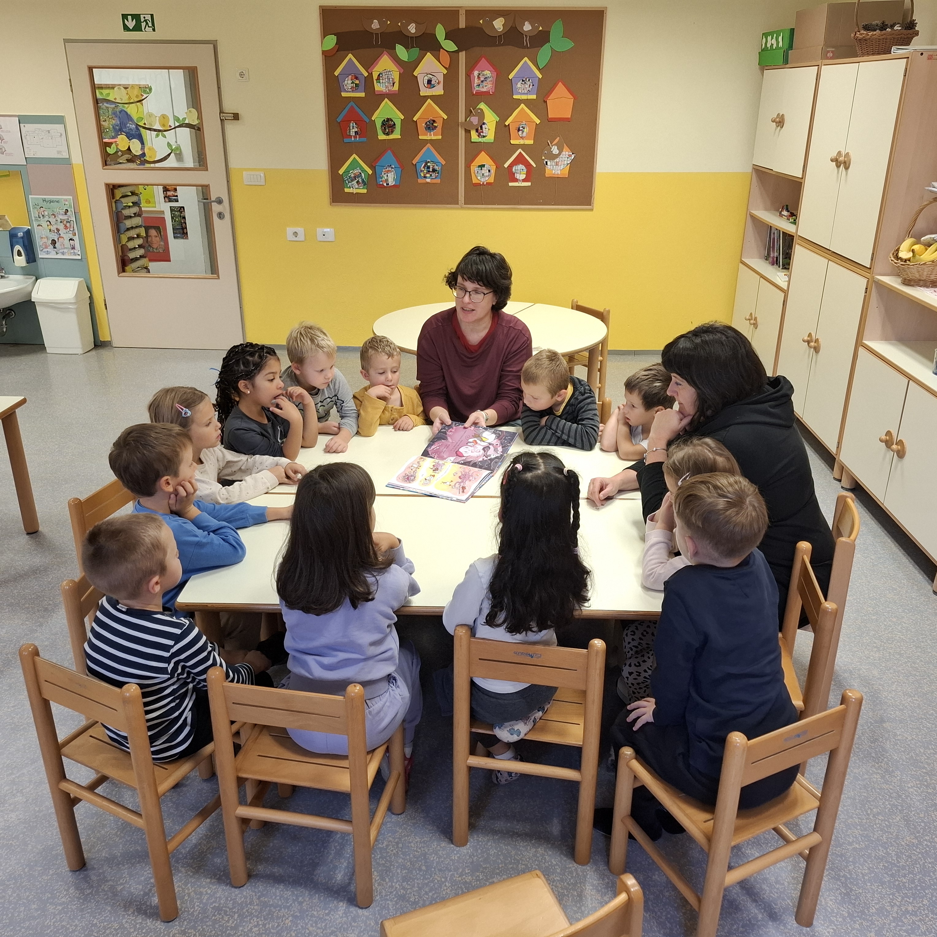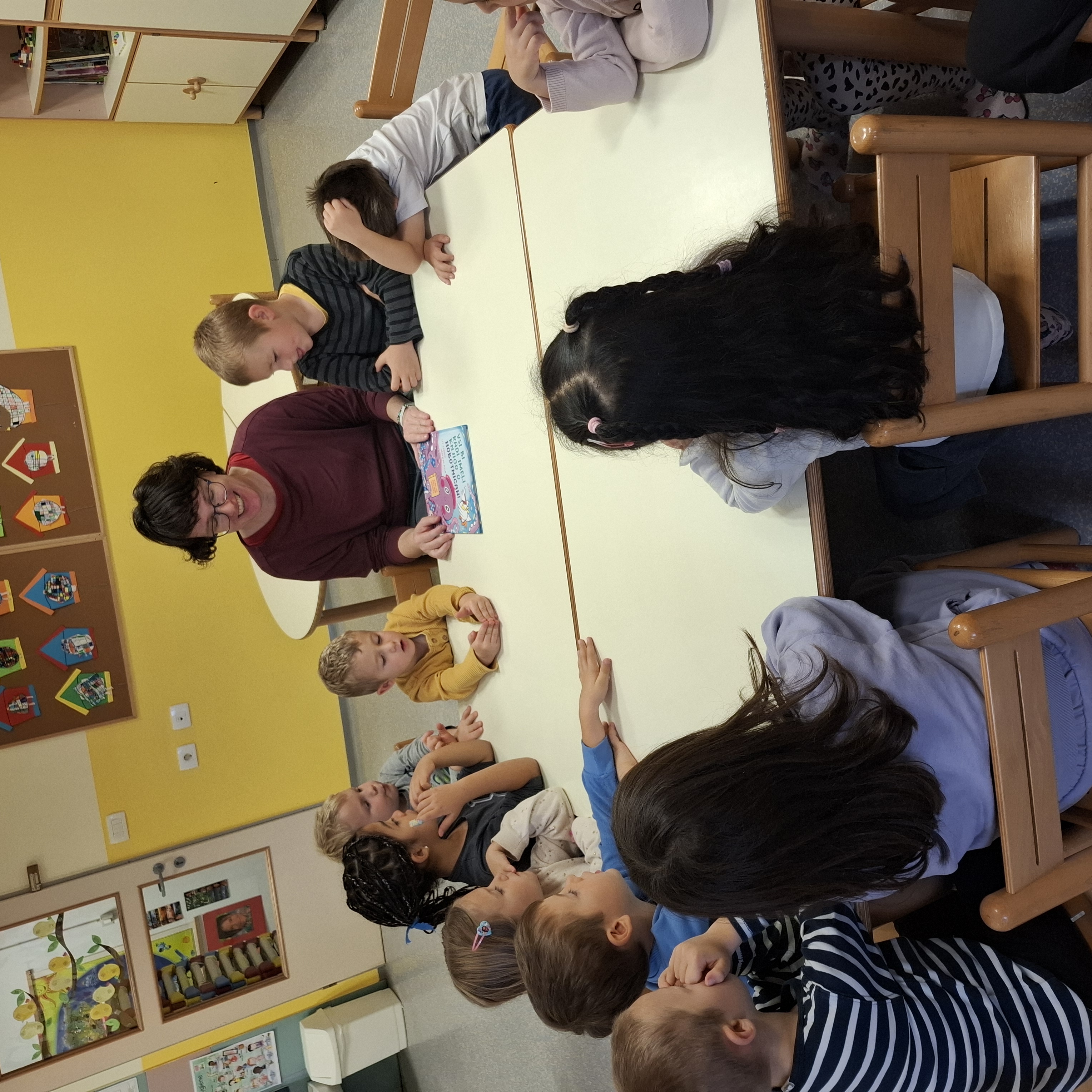 Knjižničarka Urški se lepo zahvaljujemo za obiski v skupini Ptički. Kmalu bomo tudi mi obiskovali šolsko knjižnico.