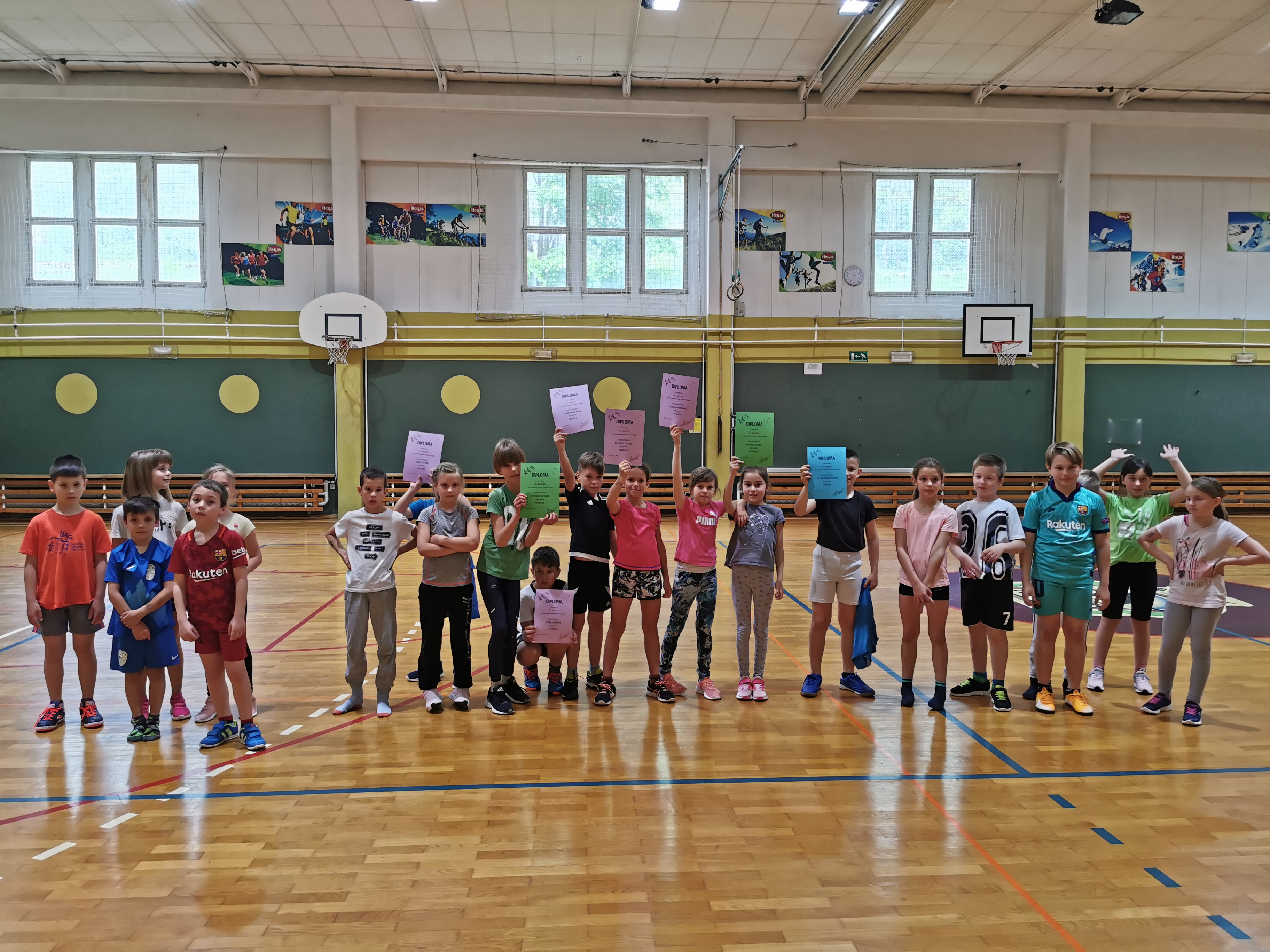 V preteklem tednu (od 10. do 13. 5. 2021) smo s posameznimi razredi (3., 6., 7., 8. in 9.) izvedli športne dneve na temo ŠPORTNE IGRE. Spremenljivo vreme nam ni pokvarilo načrtov, saj smo športne dneve izvajali v telovadnici. Učenci posameznih razredov so se po ekipah pomerili med seboj v različnih športnih igrah (med dvema ognjema, teeball, štafetne igre, odbojka, košarka ...). Najuspešnejše ekipe so bile nagrajene z diplomami. Nekaj utrinkov si oglejte spodaj.