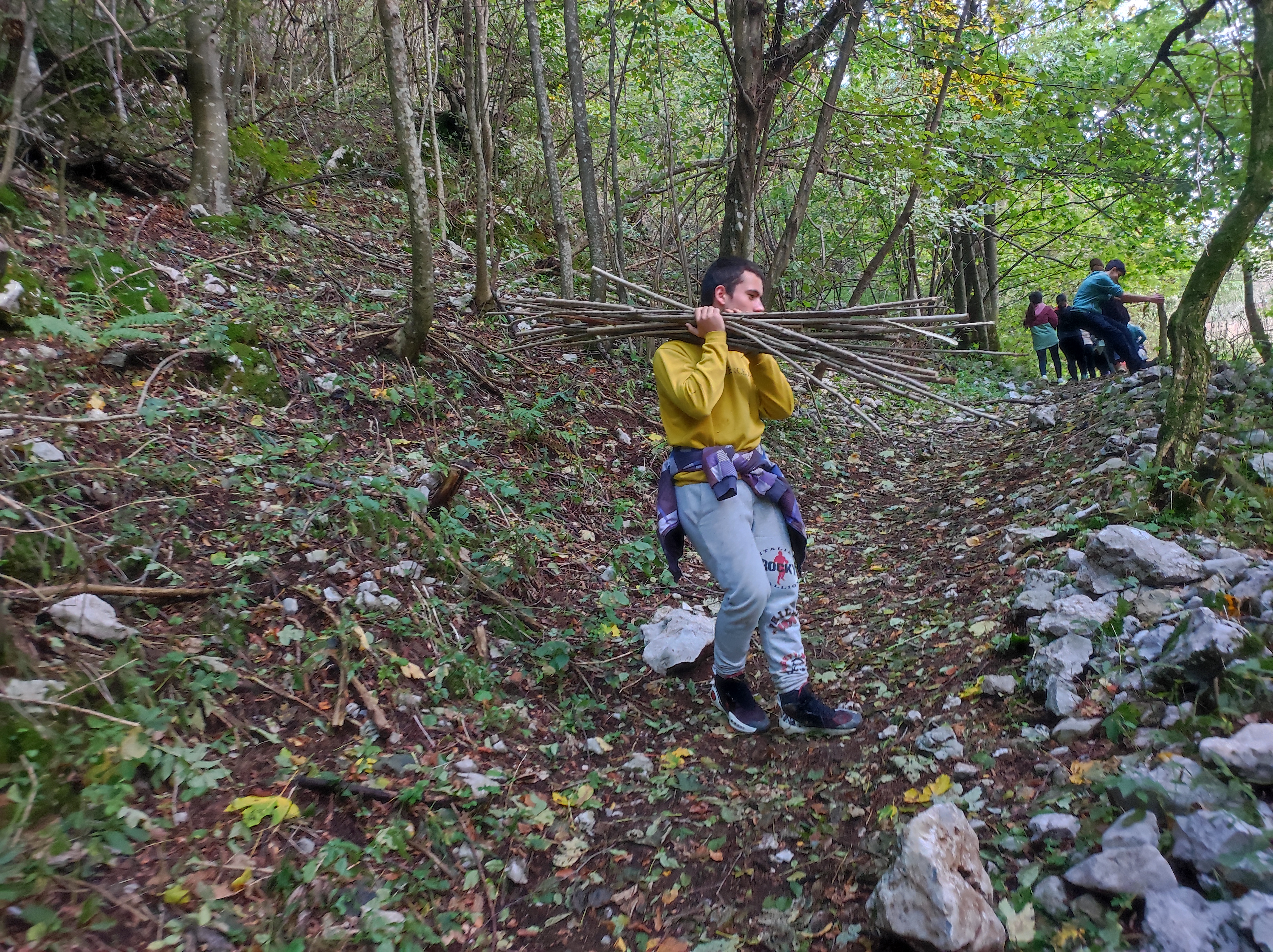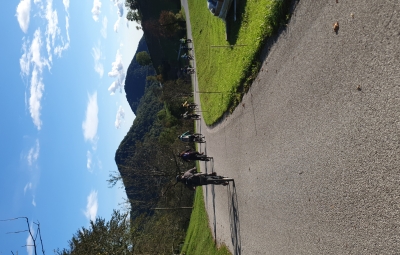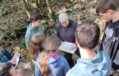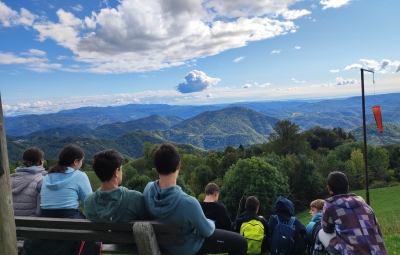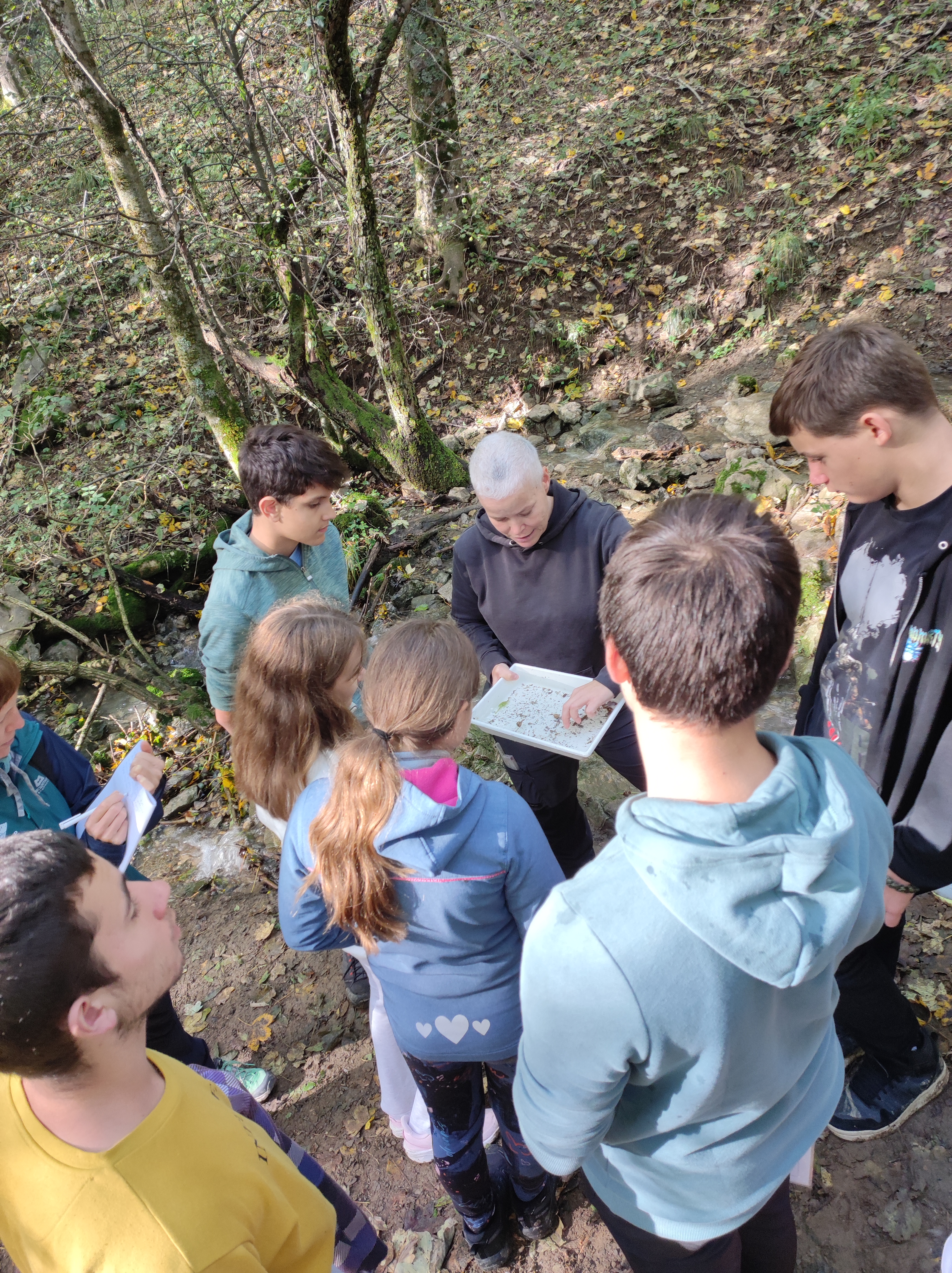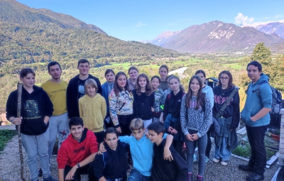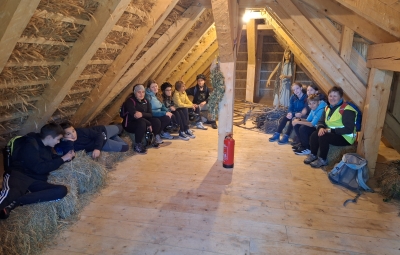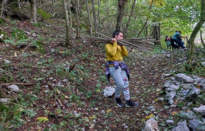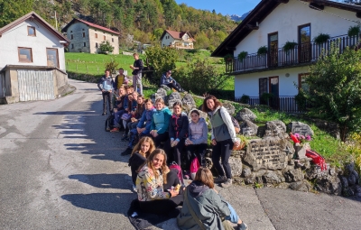 Po okusnem kosilu smo se z eno skupino odpejali z e-kolesi po Benečiji. Vodič nam je slikovito predstavil življenje in jezik beneških Slovencev, ob čemer smo začutili izjemno domoljubnost in liričnost tega narečja. Druga skupina je raziskovala potok in življenje v njem ter gozd, v katerem smo med drugim pripravili leskove palice, na katere smo kasneje ovili kruhovo testo.