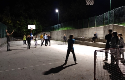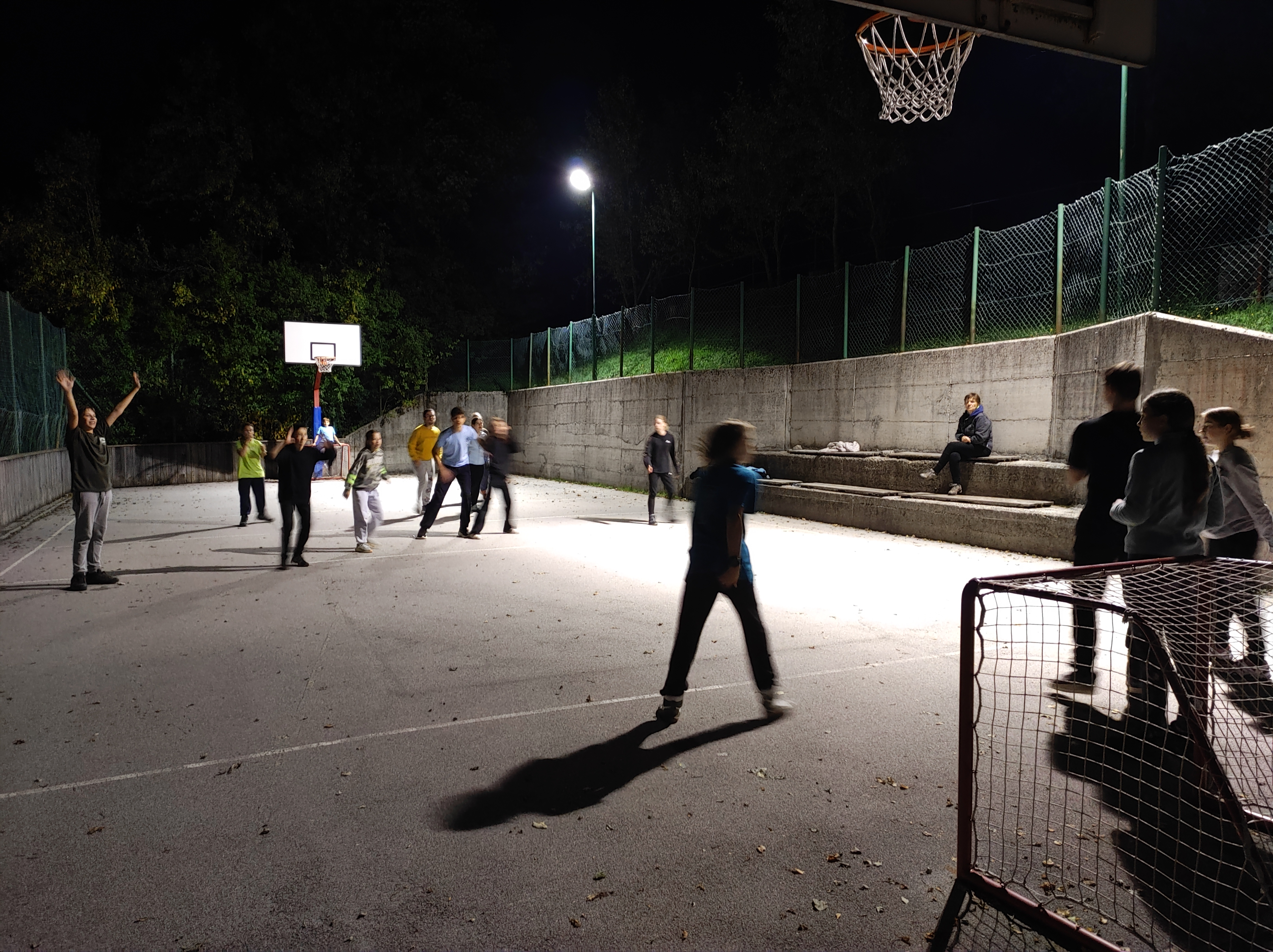Po večerji so učenci z mentorji pripravili testo za kruh, zeliščne namaze, zakurili ogenj in se pomerili v nočnem nogometu.