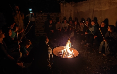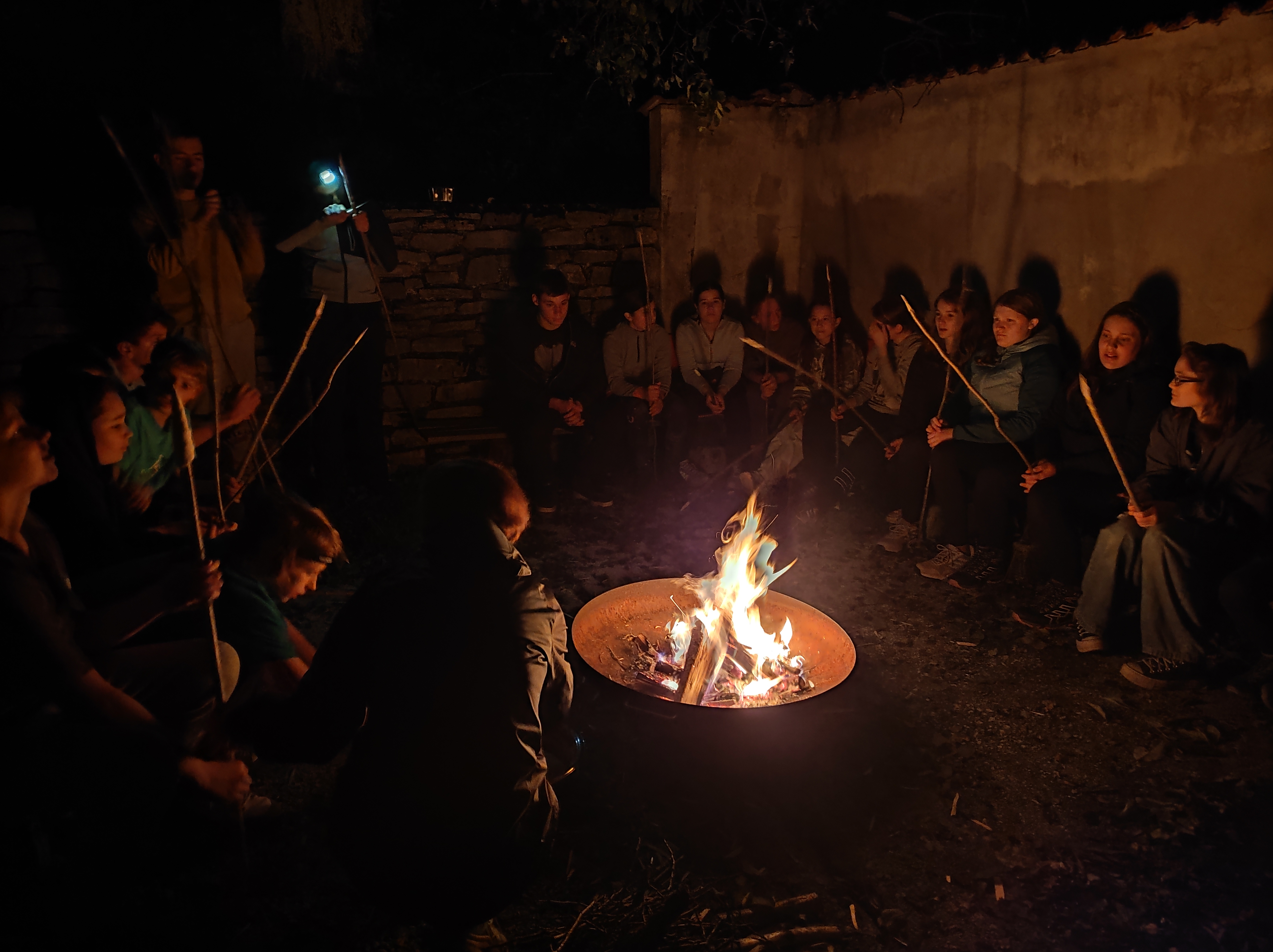 Ob ognju smo, kot se spodobi, pekli naš kruh, ga z užitkom pojedli z zeliščnim namazom in ob zvoku kitare glasno in iz srca prepevali slovenske narodne pesmi.