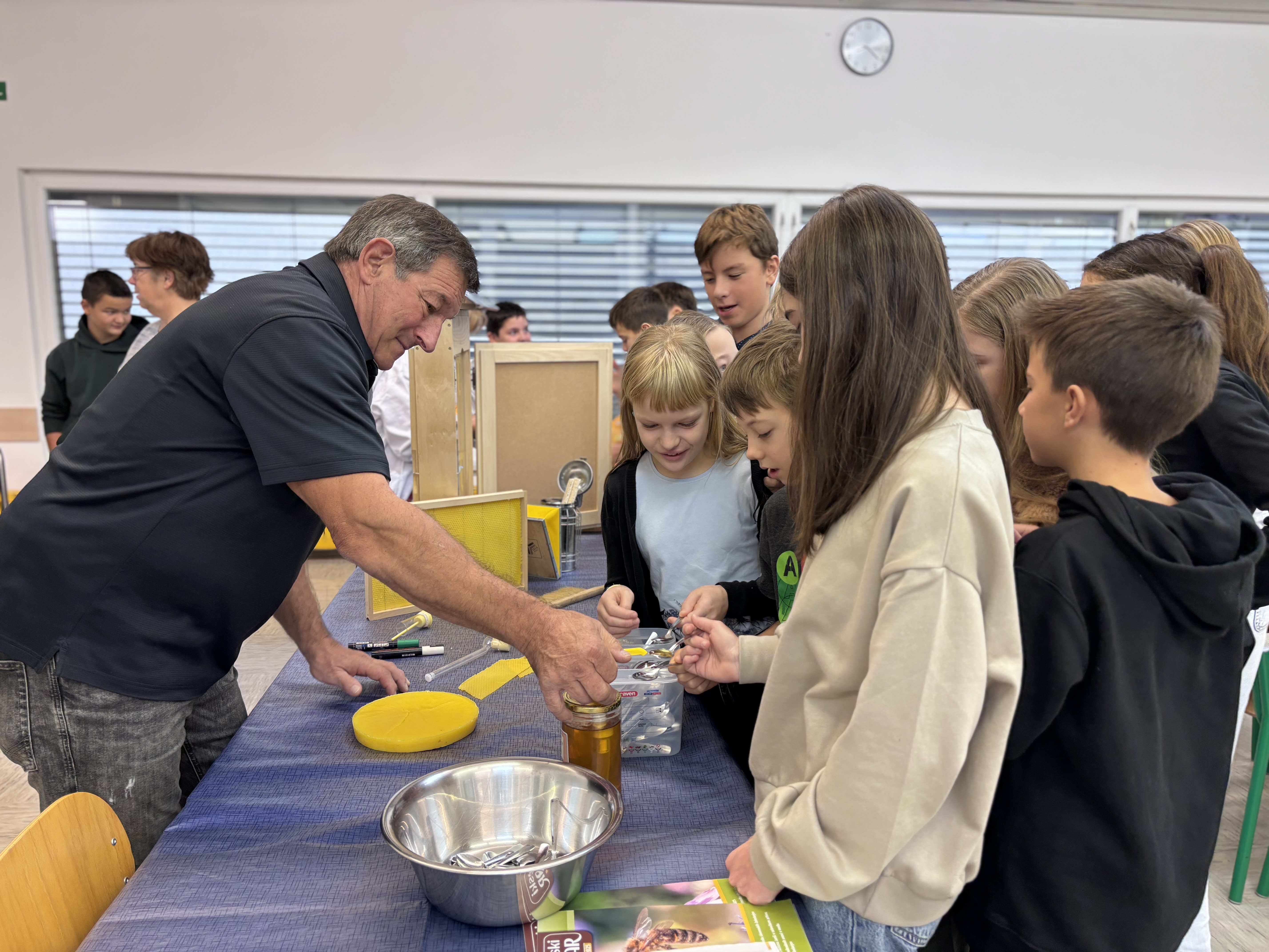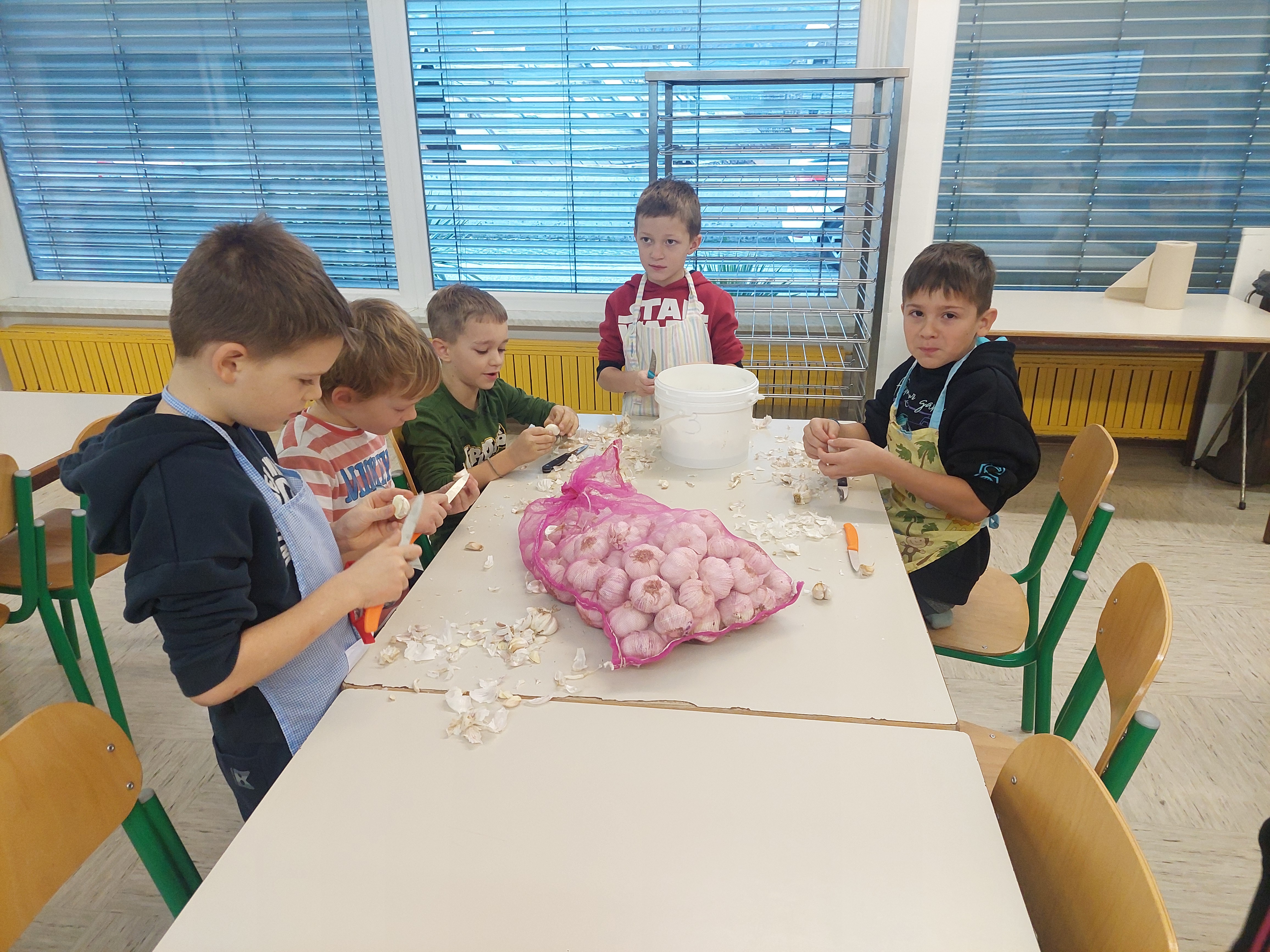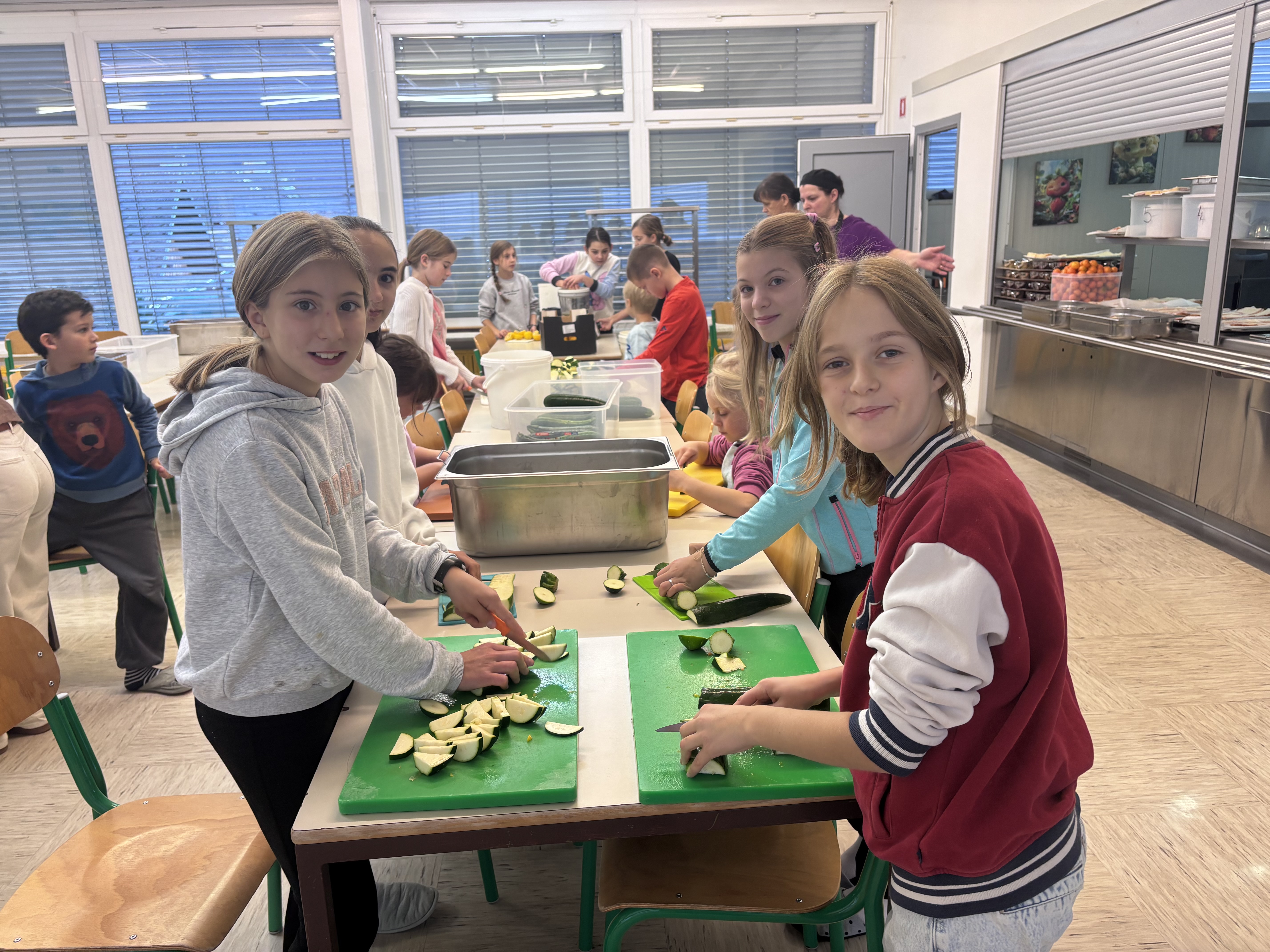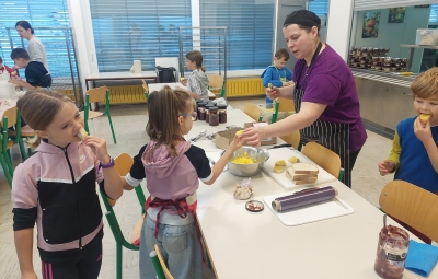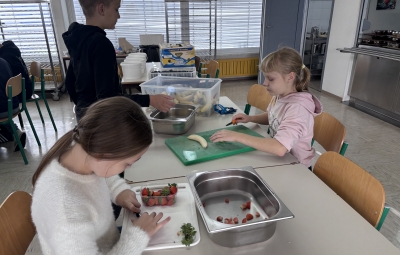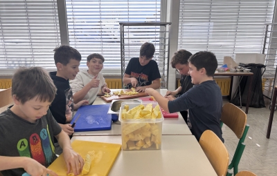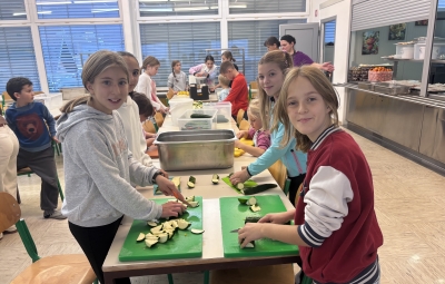Pretekli teden je na naši šoli potekal Teden kuhanja, pri katerem so vsi razredi sodelovali pri pripravi malice in kosila. Učenci so rezali zelenjavo, panirali sir, pekli jabolčno pito, pripravljali sadno kupo ter pomagali tudi pri mnogih drugih opravilih, ki sodijo v šolsko kuhinjo. Pri tem so pokazali veliko ustvarjalnosti in timskega sodelovanja. Obiskali so nas bovški čebelarji, ki so učencem predstavili delo s čebelami in pomen čebelarstva. Degustirali pa smo tudi izdelke iz Mlekarne Planika, kar je še dodatno popestrilo kulinarično dogajanje tedna.