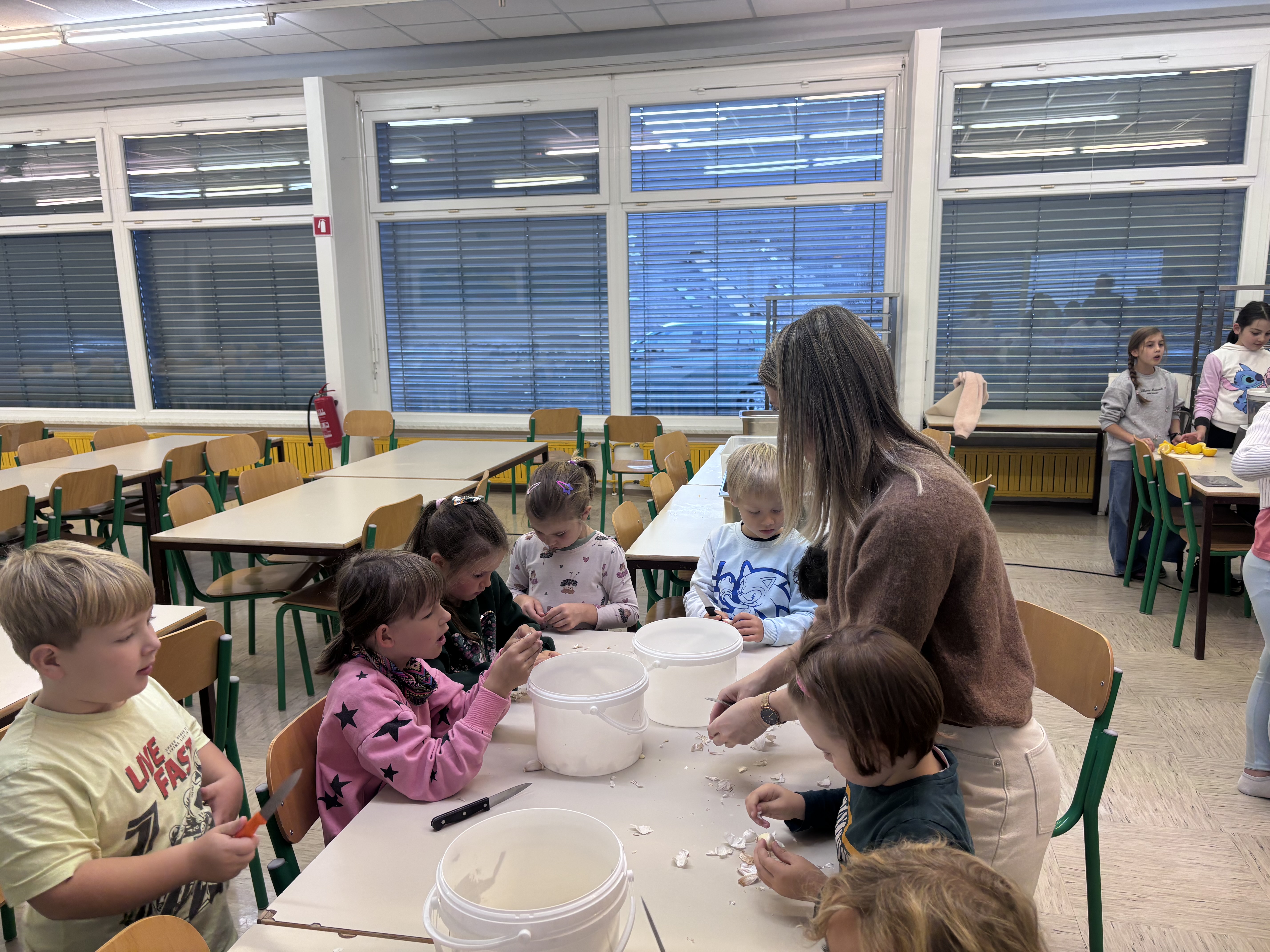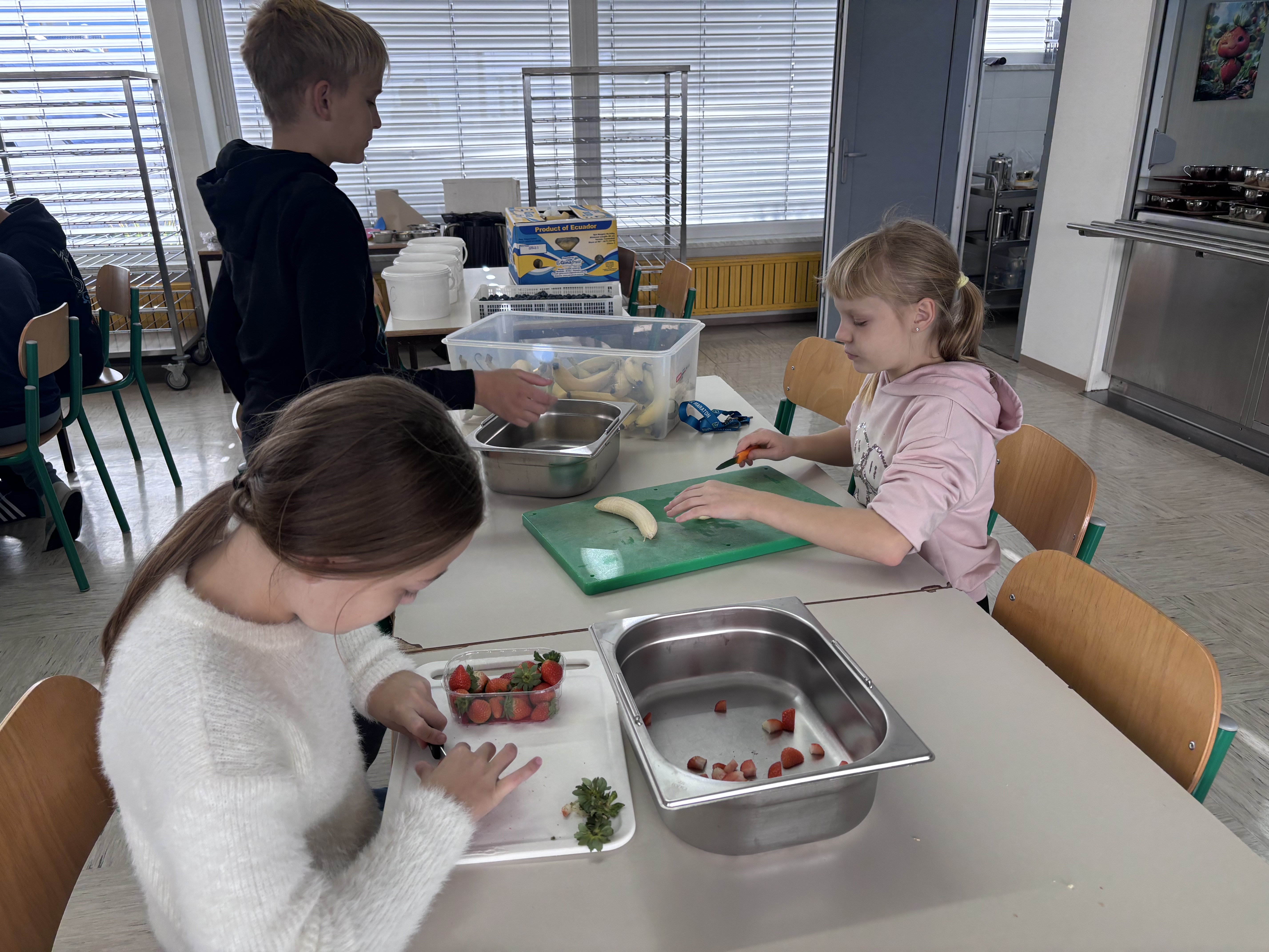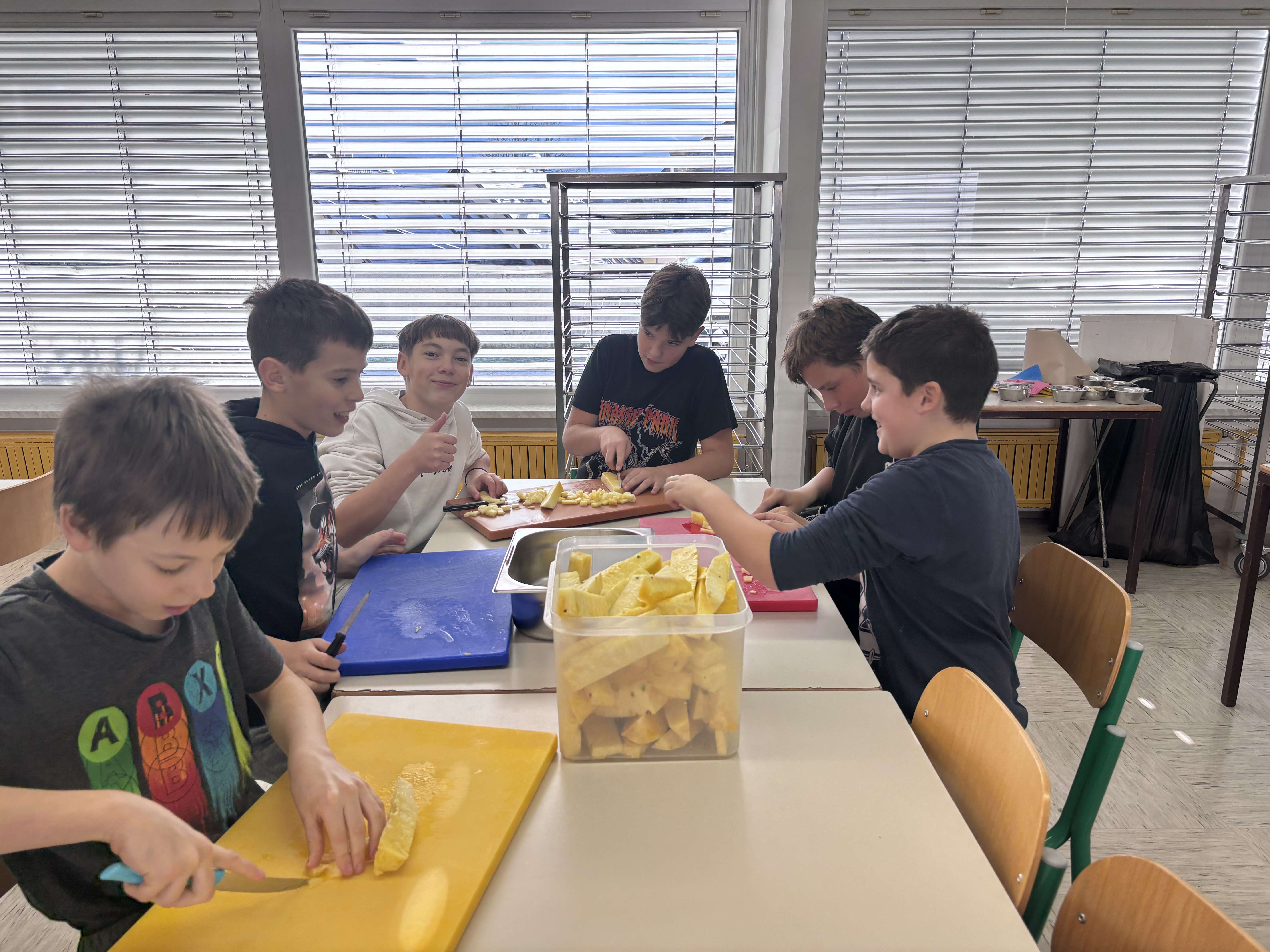 Pretekli teden je na naši šoli potekal Teden kuhanja, pri katerem so vsi razredi sodelovali pri pripravi malice in kosila. Učenci so rezali zelenjavo, panirali sir, pekli jabolčno pito, pripravljali sadno kupo ter pomagali tudi pri mnogih drugih opravilih, ki sodijo v šolsko kuhinjo. Pri tem so pokazali veliko ustvarjalnosti in timskega sodelovanja. Obiskali so nas bovški čebelarji, ki so učencem predstavili delo s čebelami in pomen čebelarstva. Degustirali pa smo tudi izdelke iz Mlekarne Planika, kar je še dodatno popestrilo kulinarično dogajanje tedna.