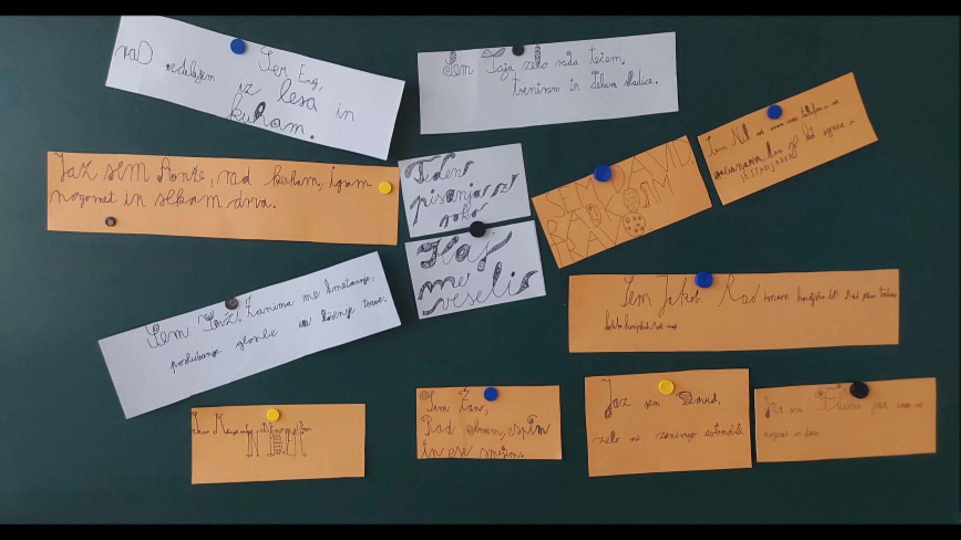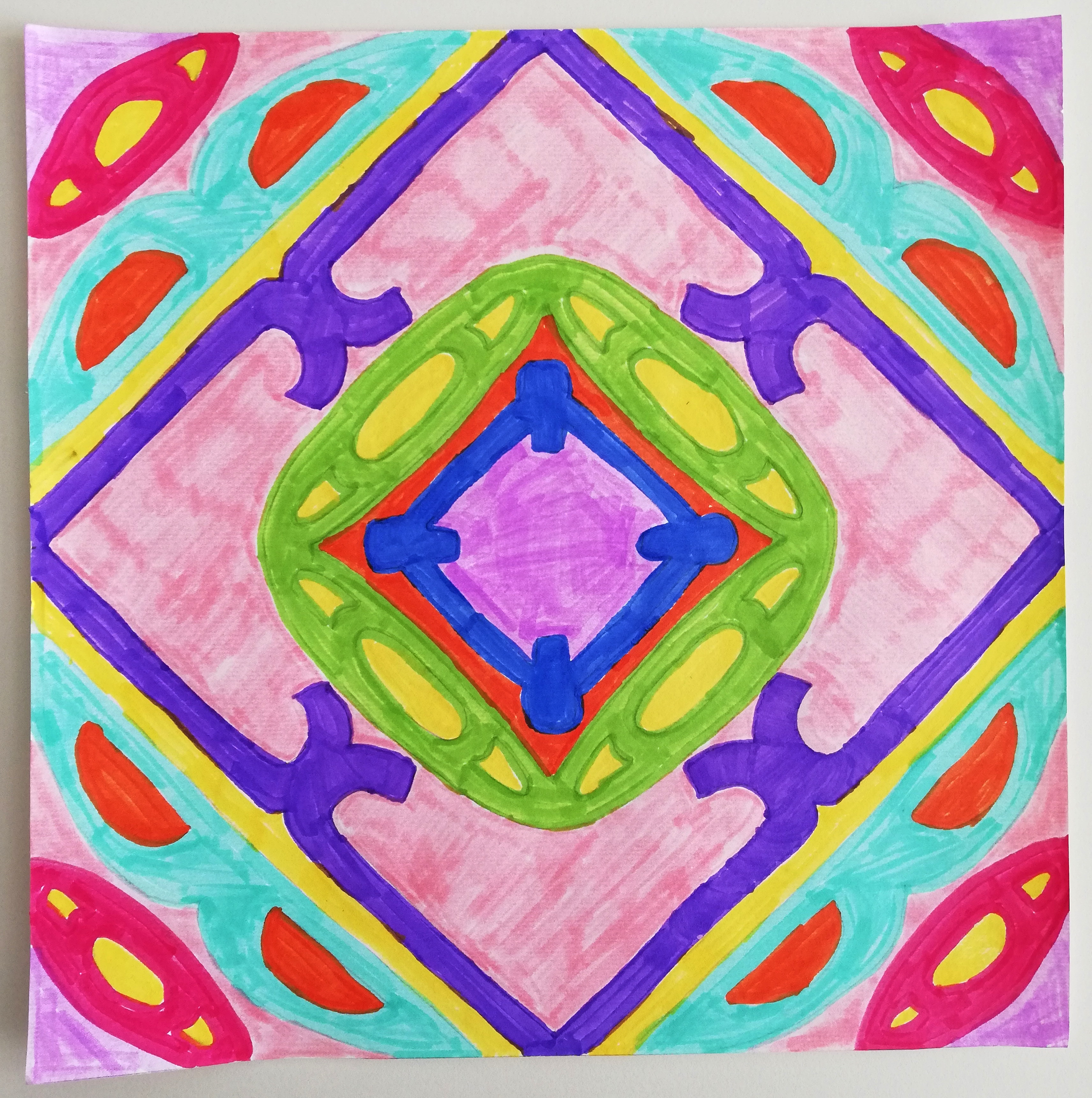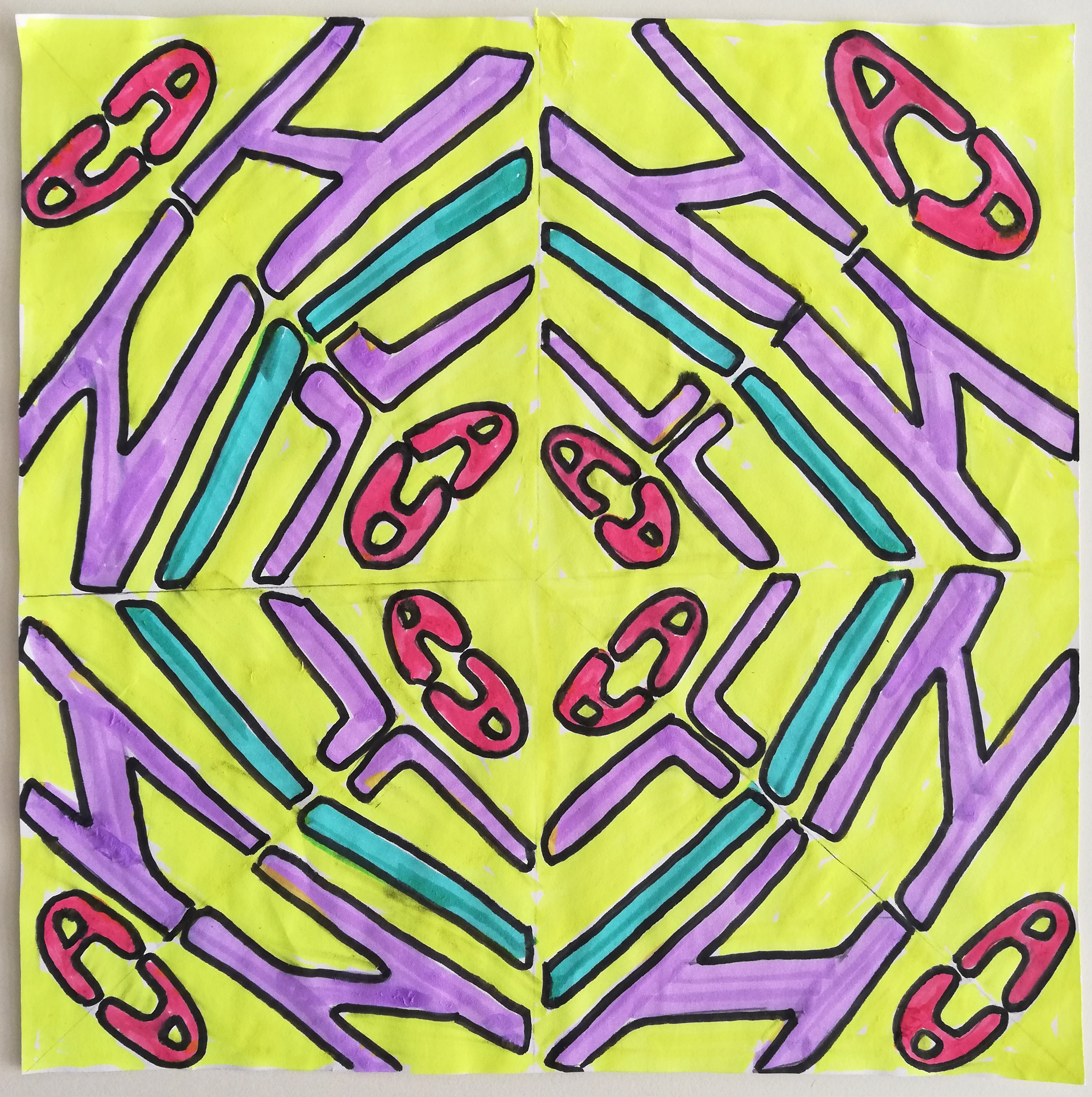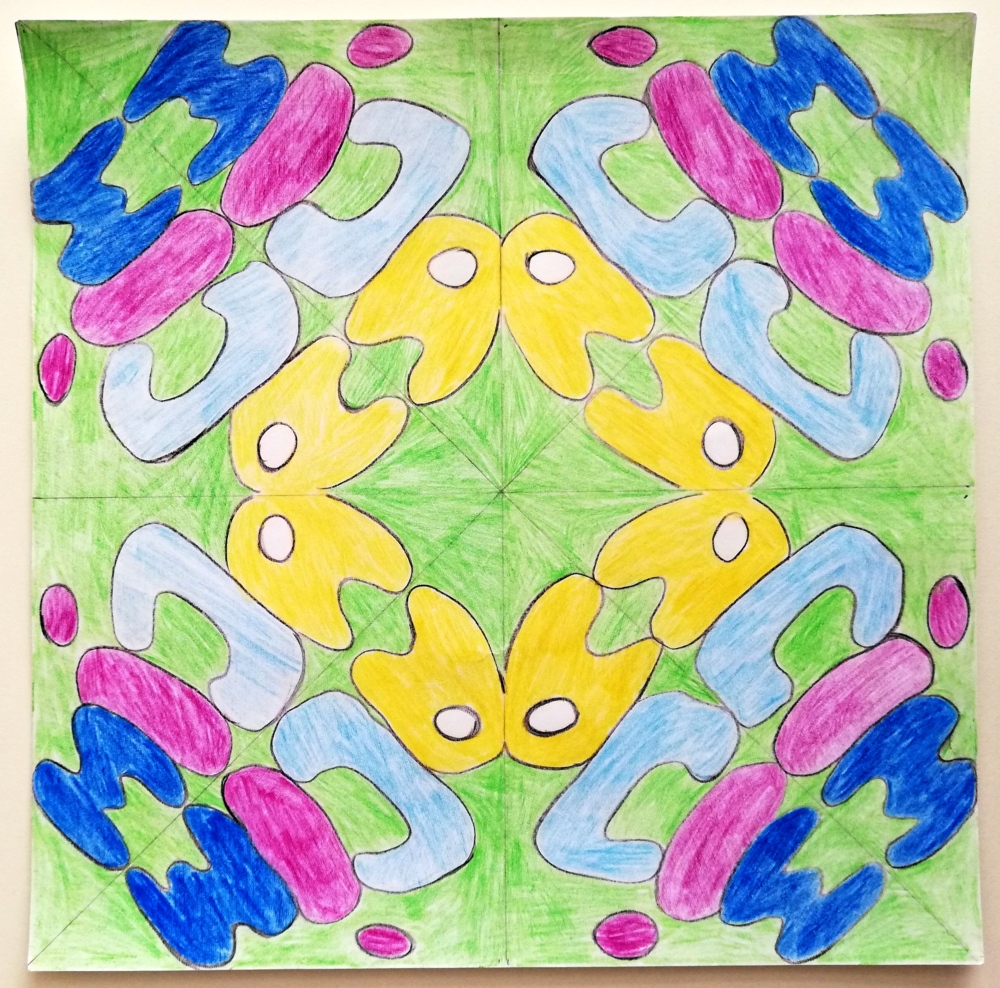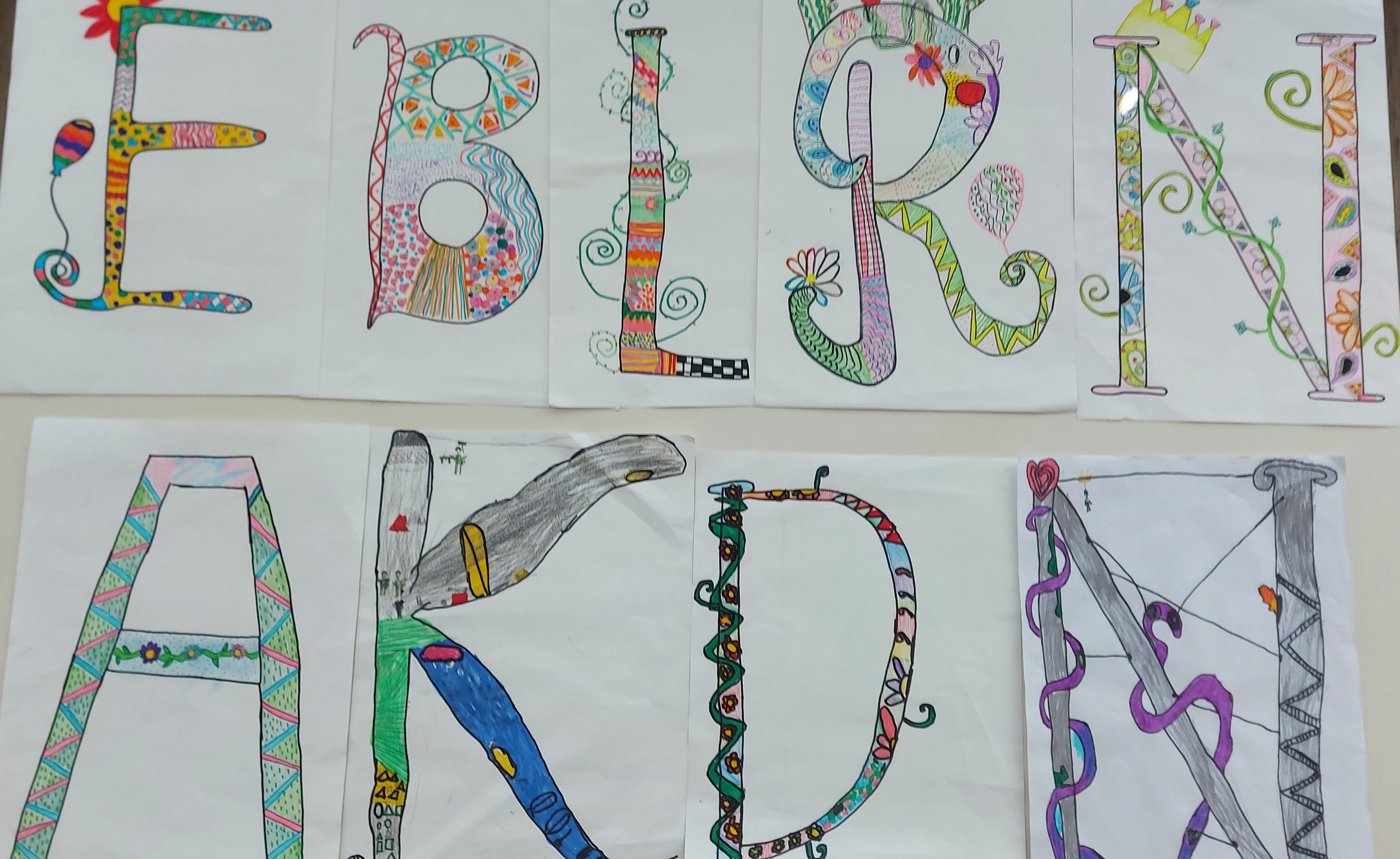 V 6. razredu so se pri neobveznem izbirnem predmetu ukvarjali s prostoročno pisavo v malo drugačni obliki. Učenke so napisale svoja imena in jih zrcalile po načelih radialne simetrije. Iz svojih imen so ustvarile čudovite vzorce, ki so jih obogatile z živimi barvami.