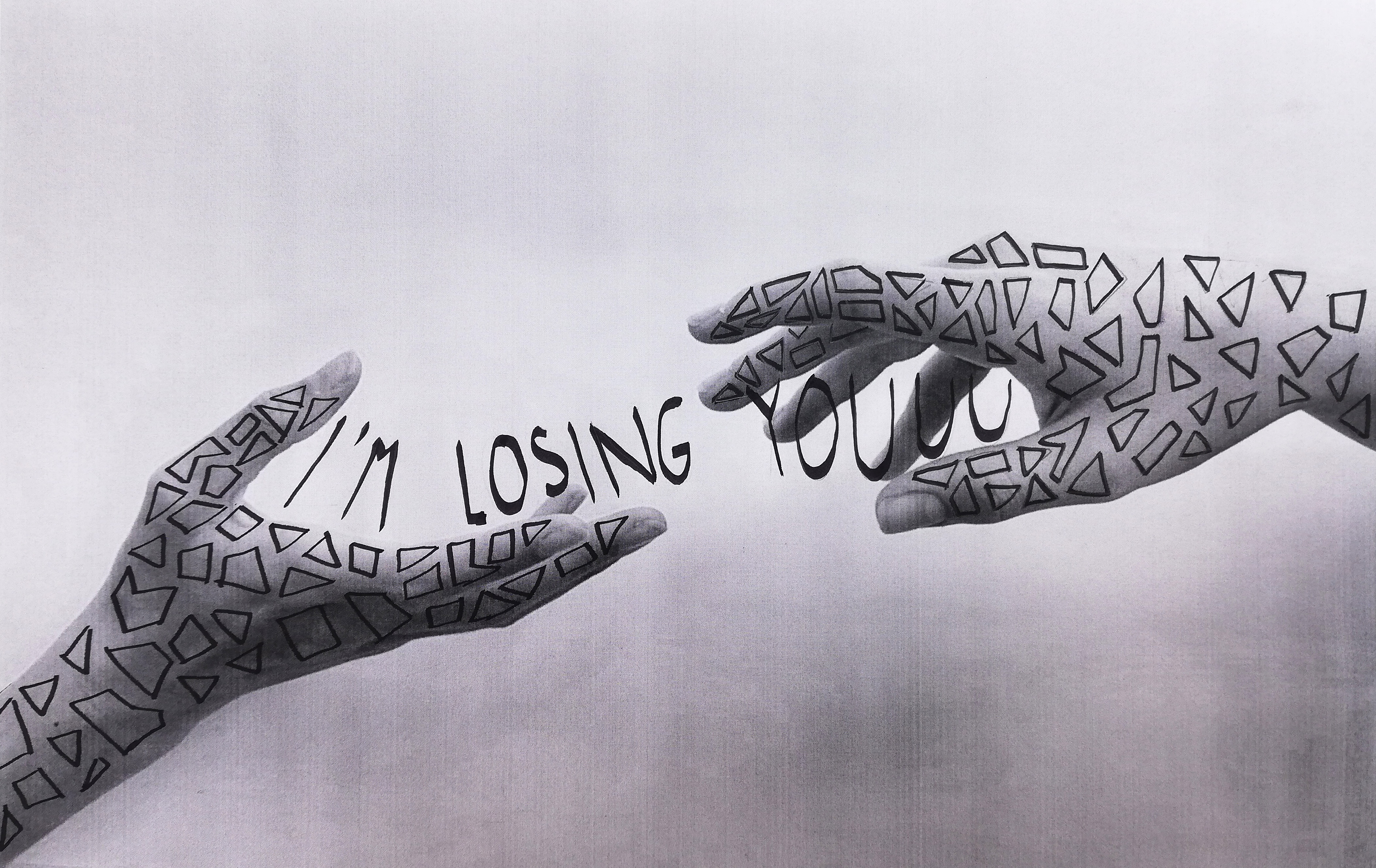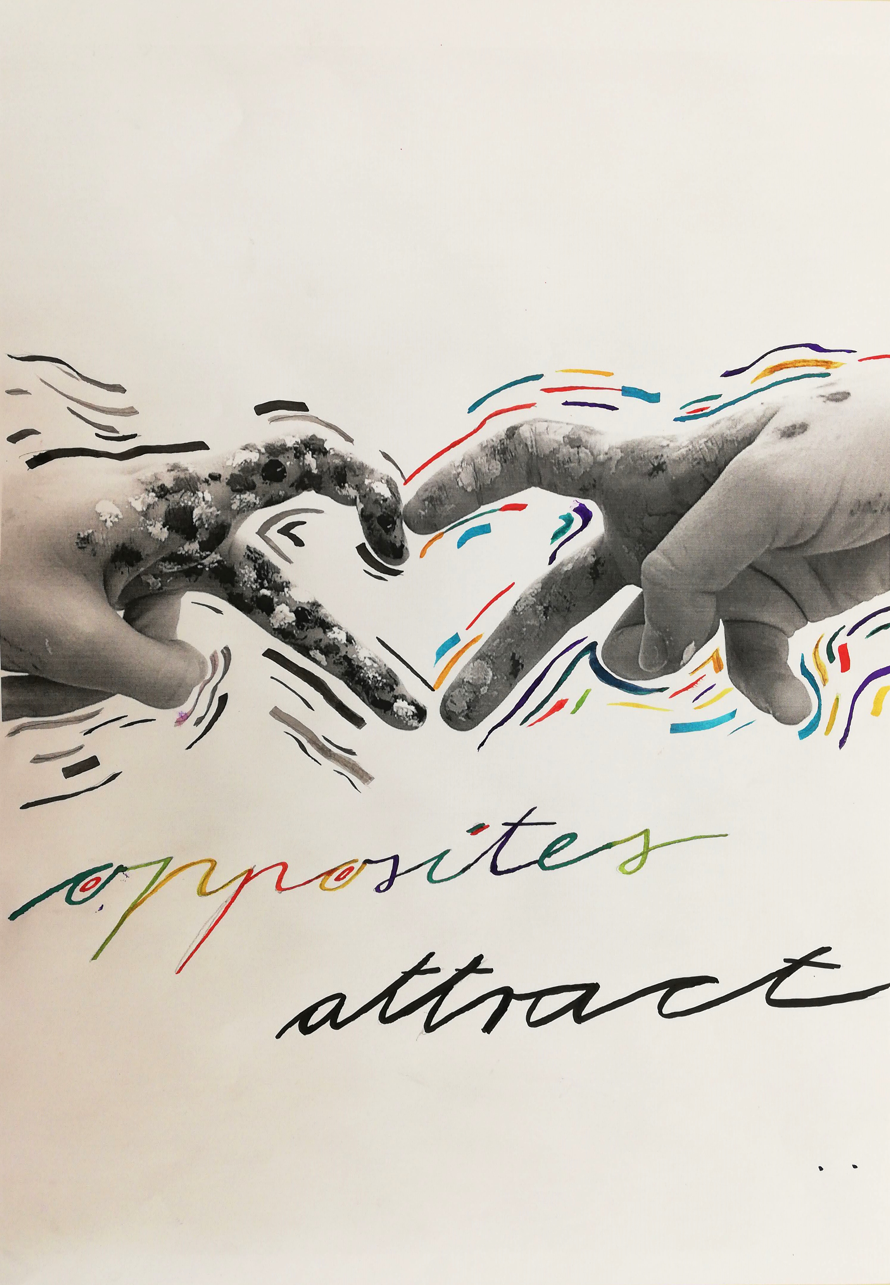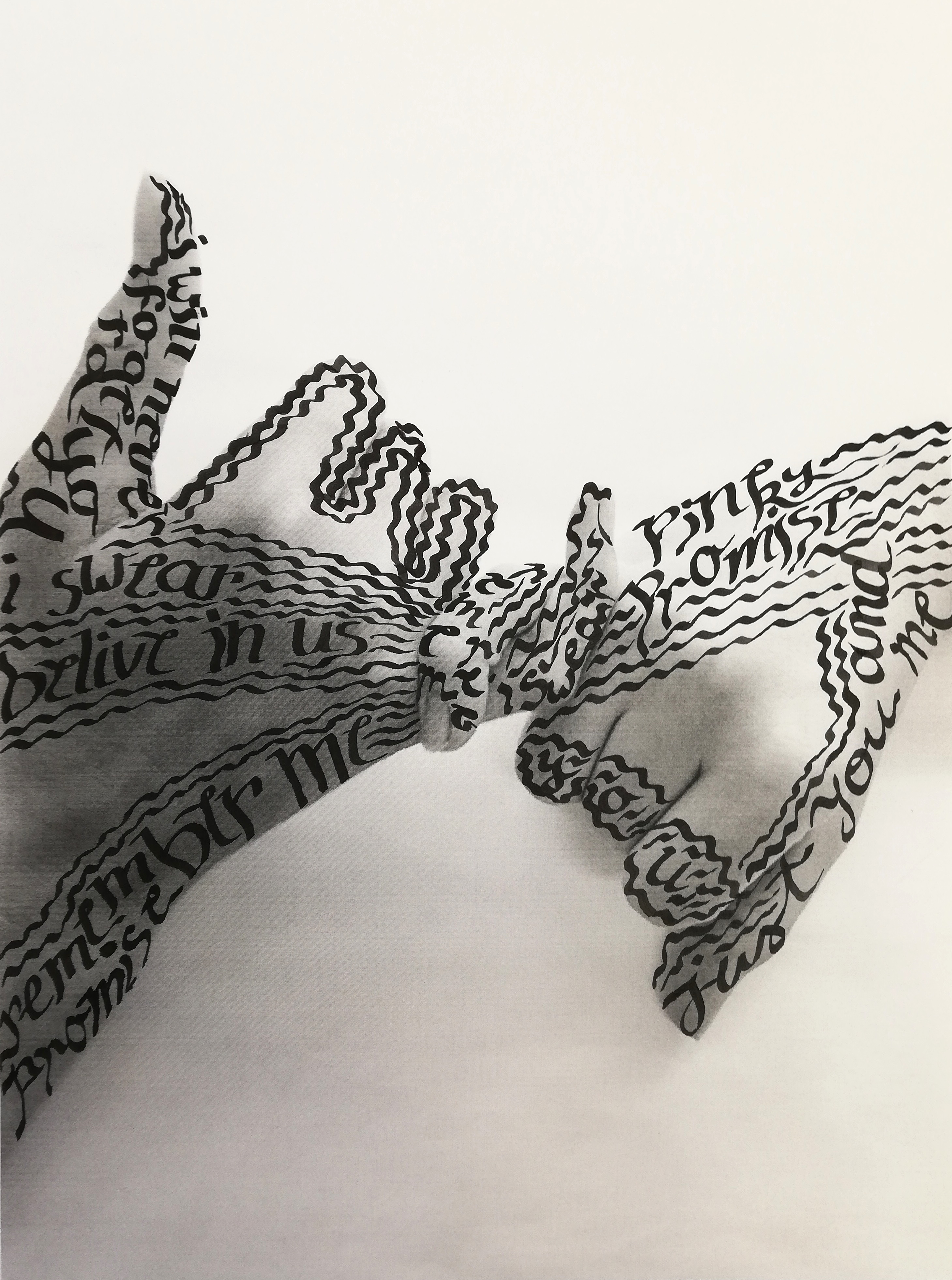Pri izbirnem predmetu likovno snovanje so učenke spoznale osnove kaligrafije. Pisavo so povezale s fotografijo in vizualnimi mediji. Dekleta so fotografirala svoje dlani ali sence dlani v sporočilnih gestah in jih natisnile na format A3. Sporočilnost fotografiranih gest so dopolnile z risbo in prostoročnimi napisi, ki so sporočilnost vizualnega medija razjasnili in še bolj poudarili.