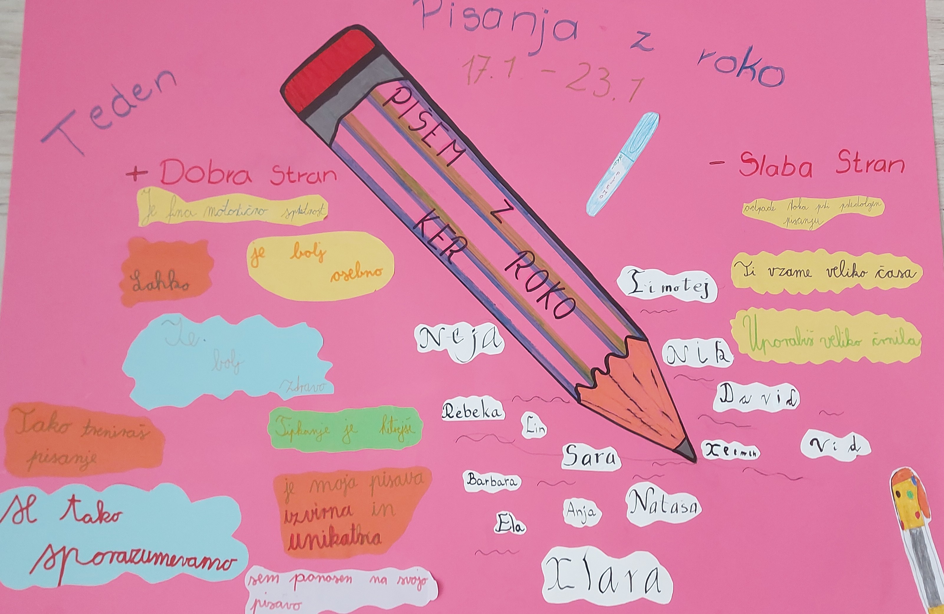 V drugem razredu so pripravili plakat, na katerem so izrazili svoje misli, zakaj radi pišejo z roko.