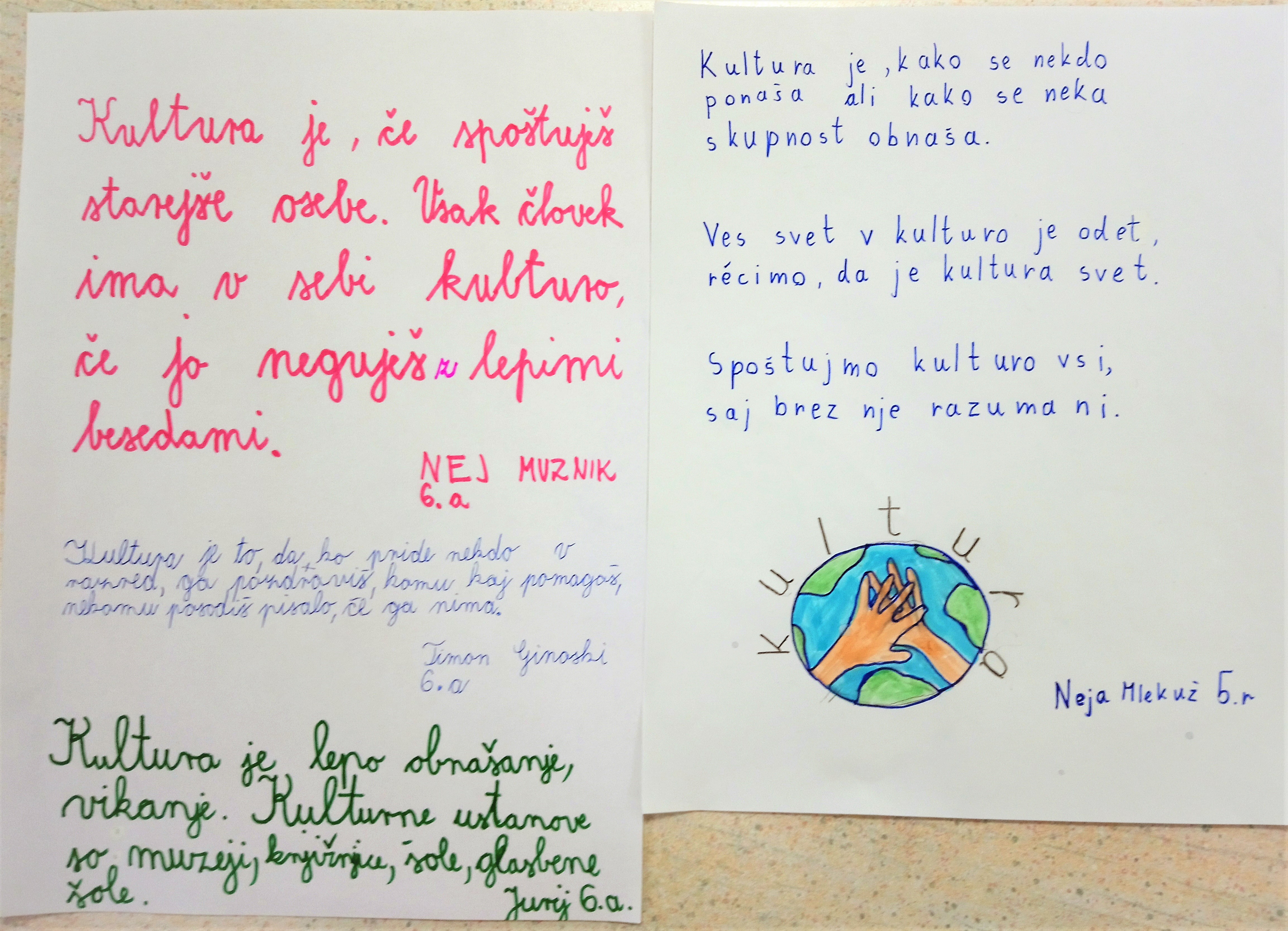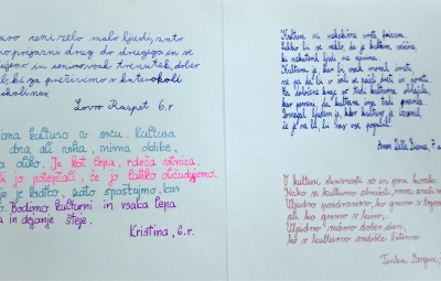 V projekt Teden pisanja z roko so se vključili tudi učenci od 6. do 9. razreda. Obudili so pisanje s pisanimi črkami, na kar so nekateri skoraj pozabili. Oblikovali so vabilo na kulturno prireditev ob slovenskem kulturnem prazniku in ustvarjali lepe misli o kulturi.