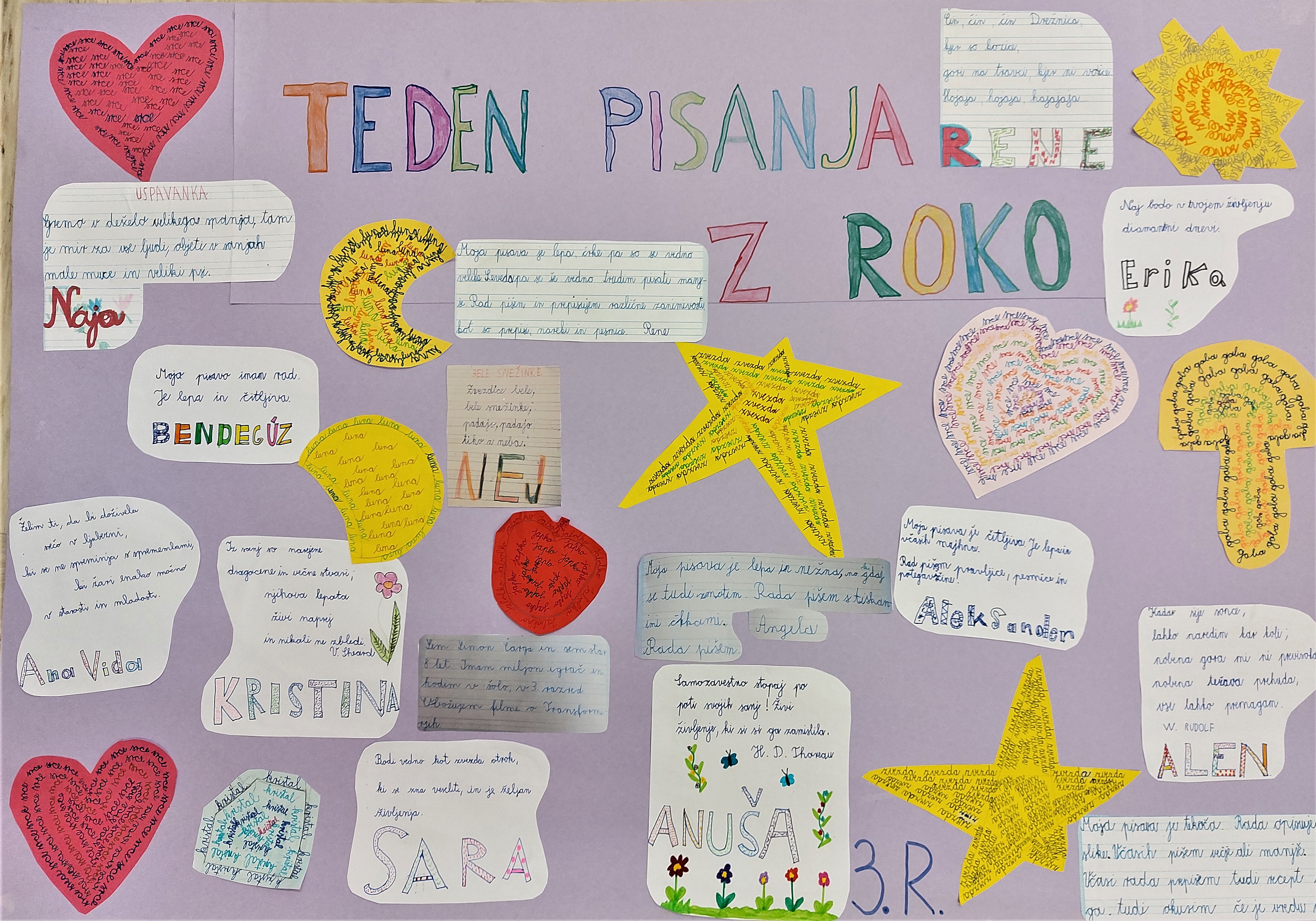 V petem razredu so izdelali inicialke ter plakat na temo Tedna pisanja z roko: Pišem z roko, ker...