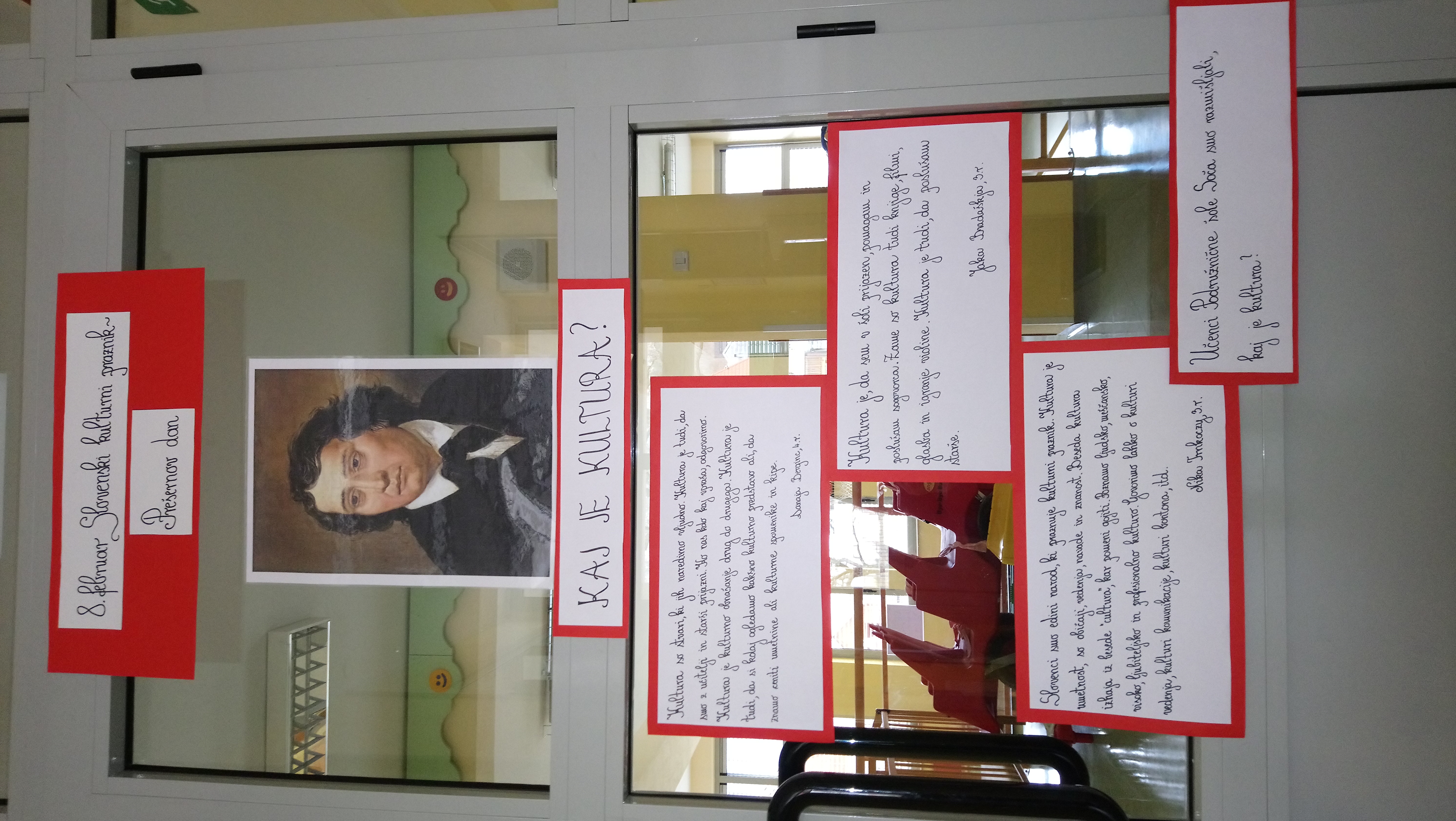 V vrtcu se otroci izražajo z risbo. Da bi otrokom približale pisano besedo, vzgojiteljice večkrat pišejo z roko. V vrtcu je tako razstavljenih veliko otroških izdelkov ob katerih vzgojiteljice z roko napišejo spremno besedilo. Ob slovenskem kulturnem prazniku smo razstavili tudi misli o kulturi učencev Podružnične šole Soča.