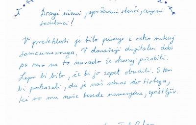 Začel se je Teden pisanja z roko 2022, ki naj bi trajal od 17. 1. 2022 do 21. 1. 2022. Zaradi velikega števila učencev in razredov v karanteni po vsej Sloveniji, so dejavnosti tedna podaljšane do 11. februarja 2022.