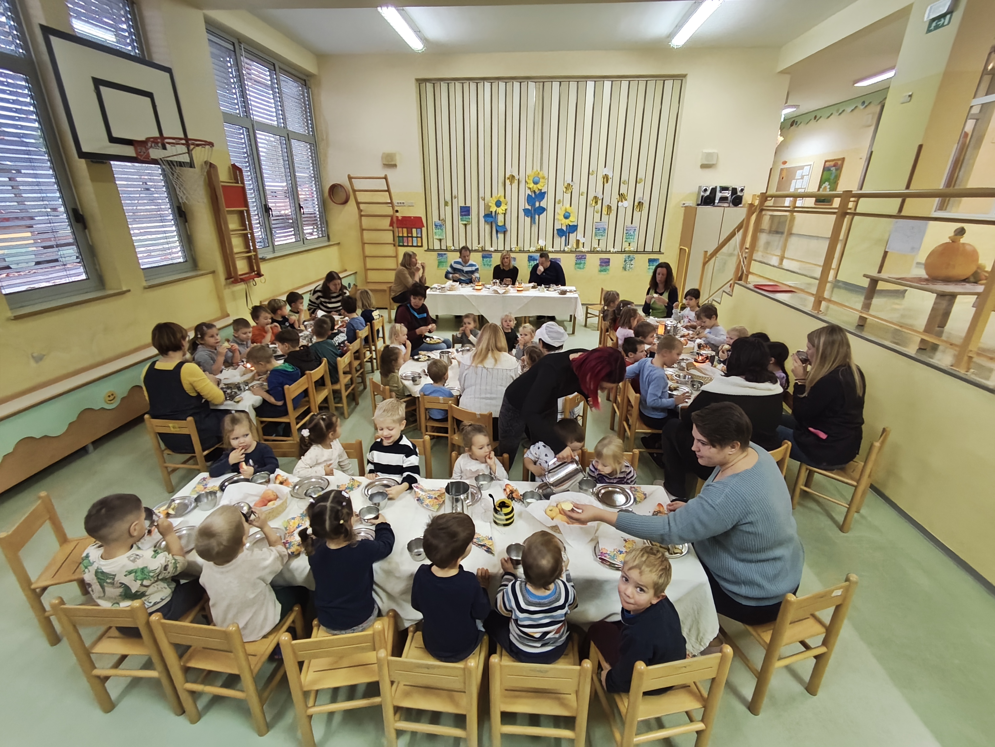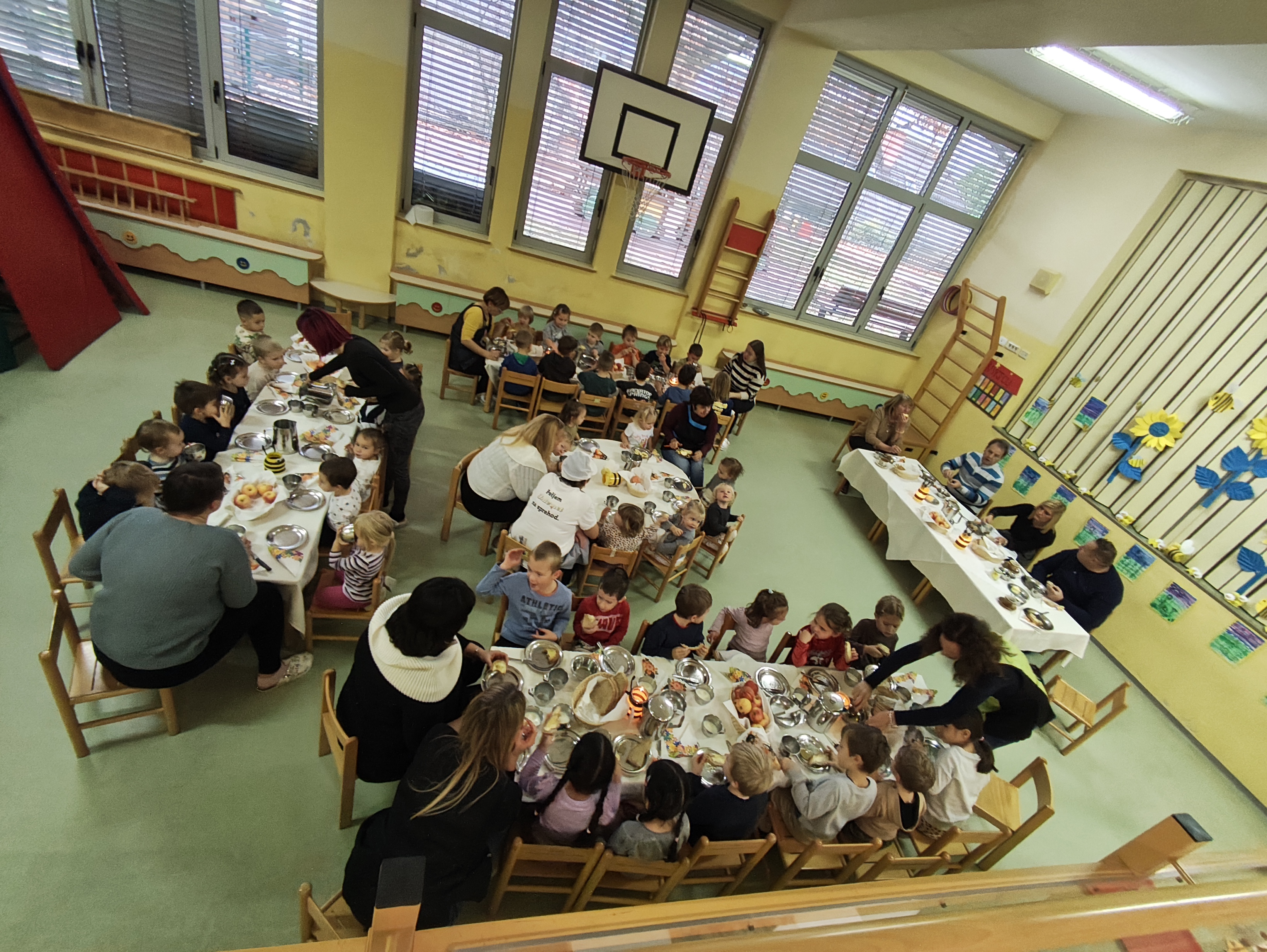 Današnji petek je bilo v našem vrtcu polno prijetnih vonjav po medu, kruhu in svežih jabolkih, saj smo praznovali Tradicionalni slovenski zajtrk. A to ni bil čisto navaden zajtrk – bil je pravi mali praznik!