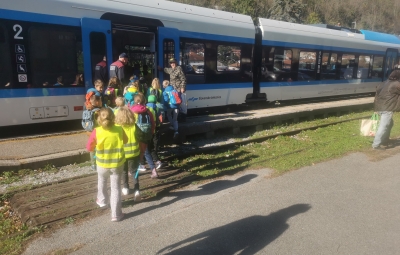 Danes, 7. 11. 2024, smo z učenci 3. razreda in podružnicama Soča in Žaga odšli na zanimiv izlet v Kanal, ki ga je organizirala Občina Bovec, v sodelovanju z varnostjo v cestnem prometu. Izlet je vodil redar občine Bovec, g. Janko Volarič. Na začetku izleta nas je v Tolminu pričakala policistka Petra, ki nas je popeljala po ulicah Tolmina in nas seznanila z varnostnimi pravili obnašanja v prometu. Učenci so imeli priložnost spoznati tudi prostore Policijske postaje Tolmin. Po ogledu smo se zapeljali do Železniške postaje, kjer smo počakali na vlak, ki nas je popeljal do Kanala. Strojevodja nam je omogočil ogled kabine vlaka, kjer smo se lahko pobliže spoznali z delom na vlaku. V Kanalu nas je pričakala vodička, nas popeljala po osrednjem trgu Kontrada in nam na kratko predstavila mesto. Obiskali smo sobo, kjer imajo razstavljene vse vrste rib, ki živijo v reki Soči in z razgleda opazovali most, simbol mesta Kanal. Preden smo se odpravili na pot nazaj, smo se sprehodili do pošte in v nabiralnik oddali pisma, ki smo jih napisali v šoli. Z vlakom smo se vrnili do Postaje, kjer nas je čakal avtobus in nas odpeljal nazaj v Bovec.