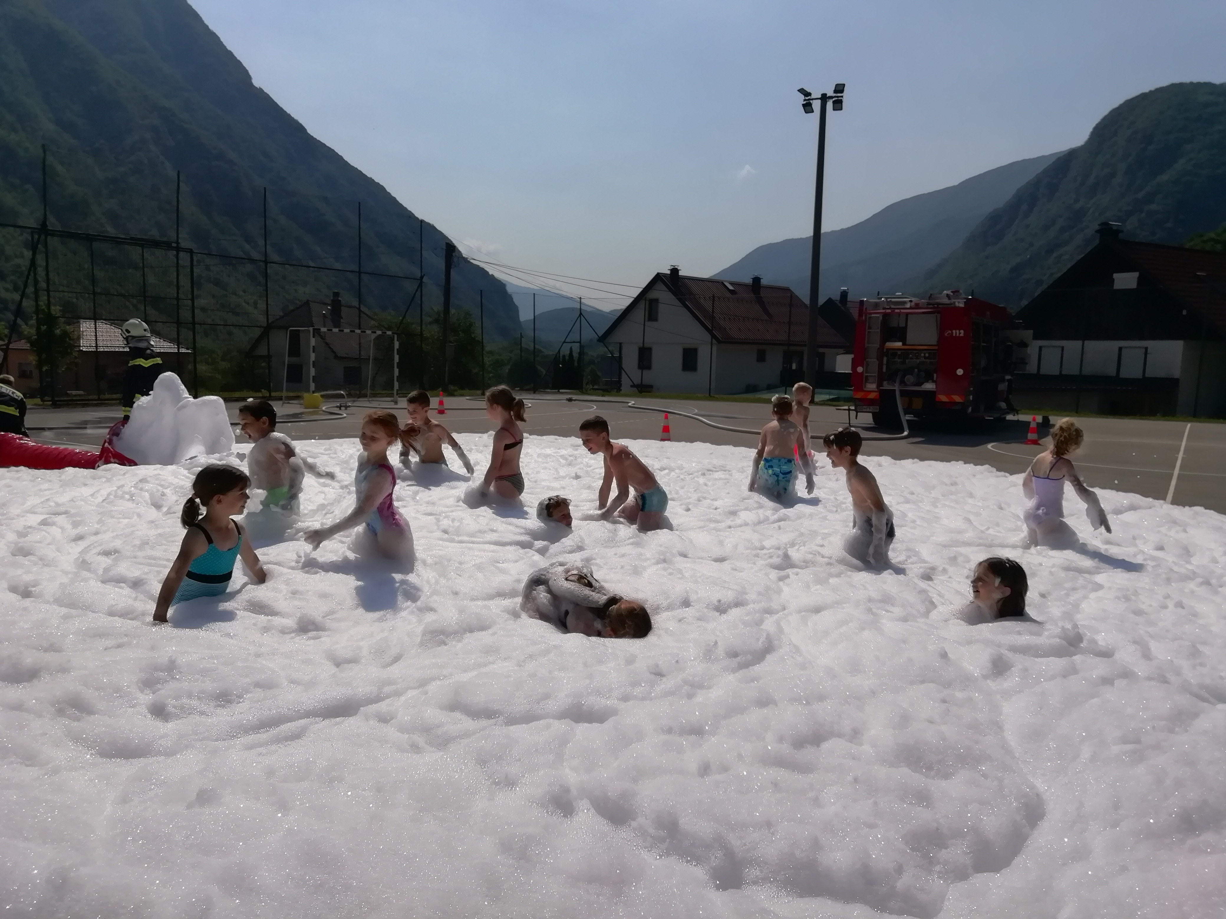 Ob iztekajočem šolskem letu so nam dan popestrili predstavniki PGD Srpenica. Pripravili so nam zabavo v gasilski peni, kjer so učenci nadvse uživali.