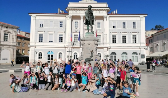 Po okusnem zajtrku smo se odpravili na izlet v Piran. Sprehodili smo se skozi ozke uličice, občudovali stavbe in se ustavili na Tartinijevem trgu, kjer smo imeli nekaj prostega časa za nakup spominkov in seveda za obvezen sladoled.