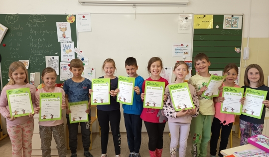 V petek, 16.5.2025, je po Sloveniji potekal že 31. ciciveselošolski dan. Udeležili so se ga tudi učenci OŠ Bovec in POŠ Soča ter POŠ Žaga, od 1. do 4. razreda. Reševali so zabavne naloge in ob koncu prejeli pohvalo.